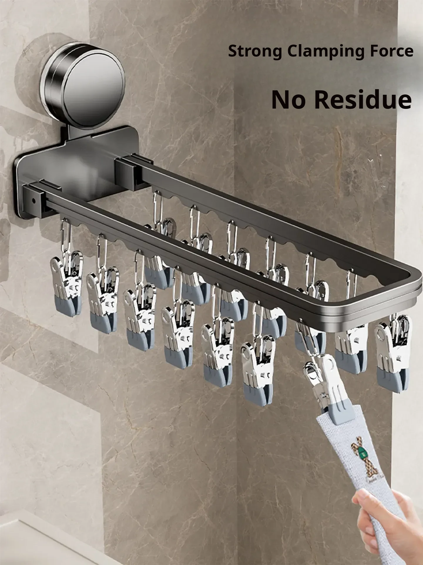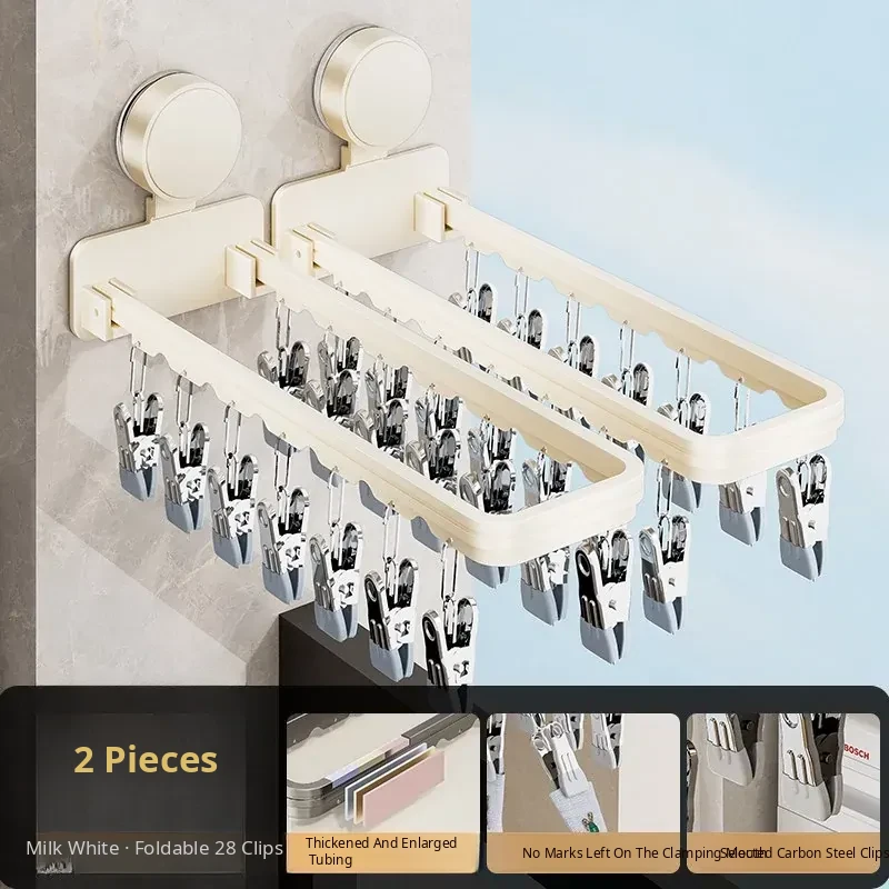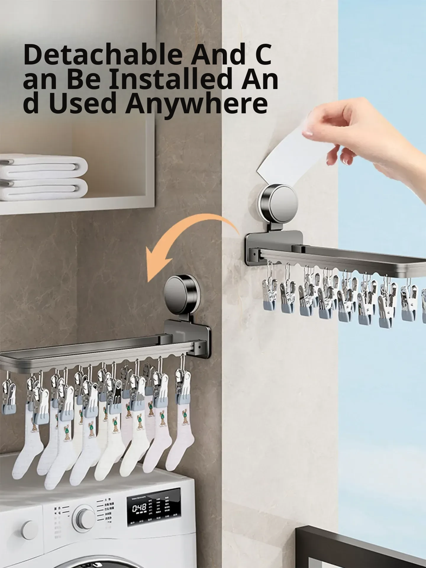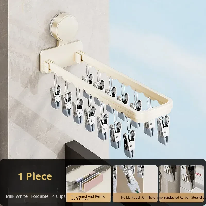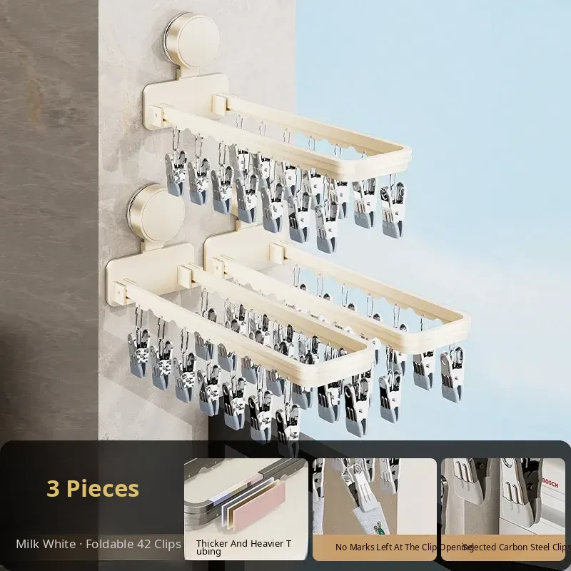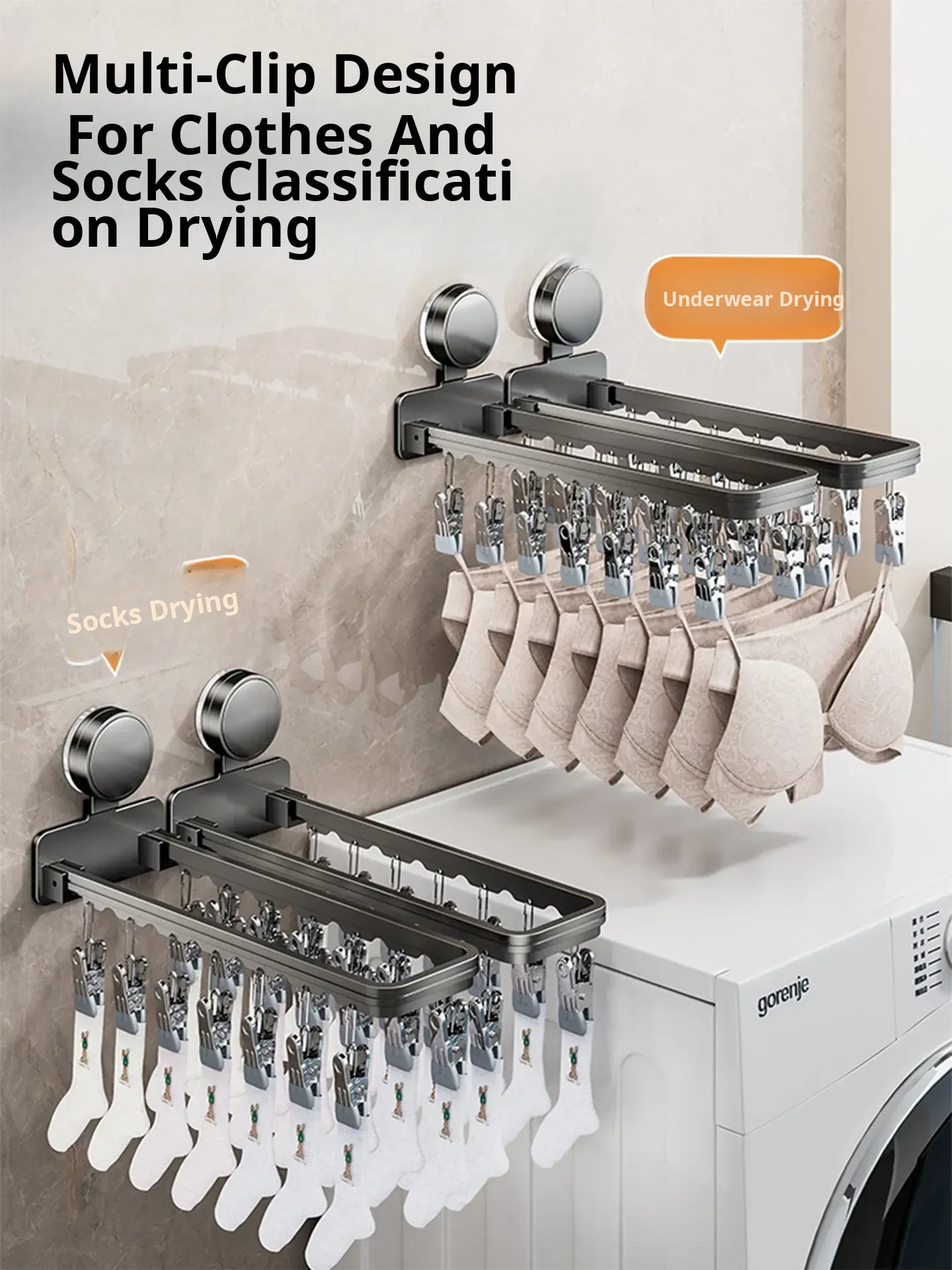 Suction Cup Balcony Clothes Drying Rack - Multi-Clip Socks & Underwear Hanger, Versatile & Foldable Home Essential for Kids & Adults, Perfect for Space-Saving Solutions!