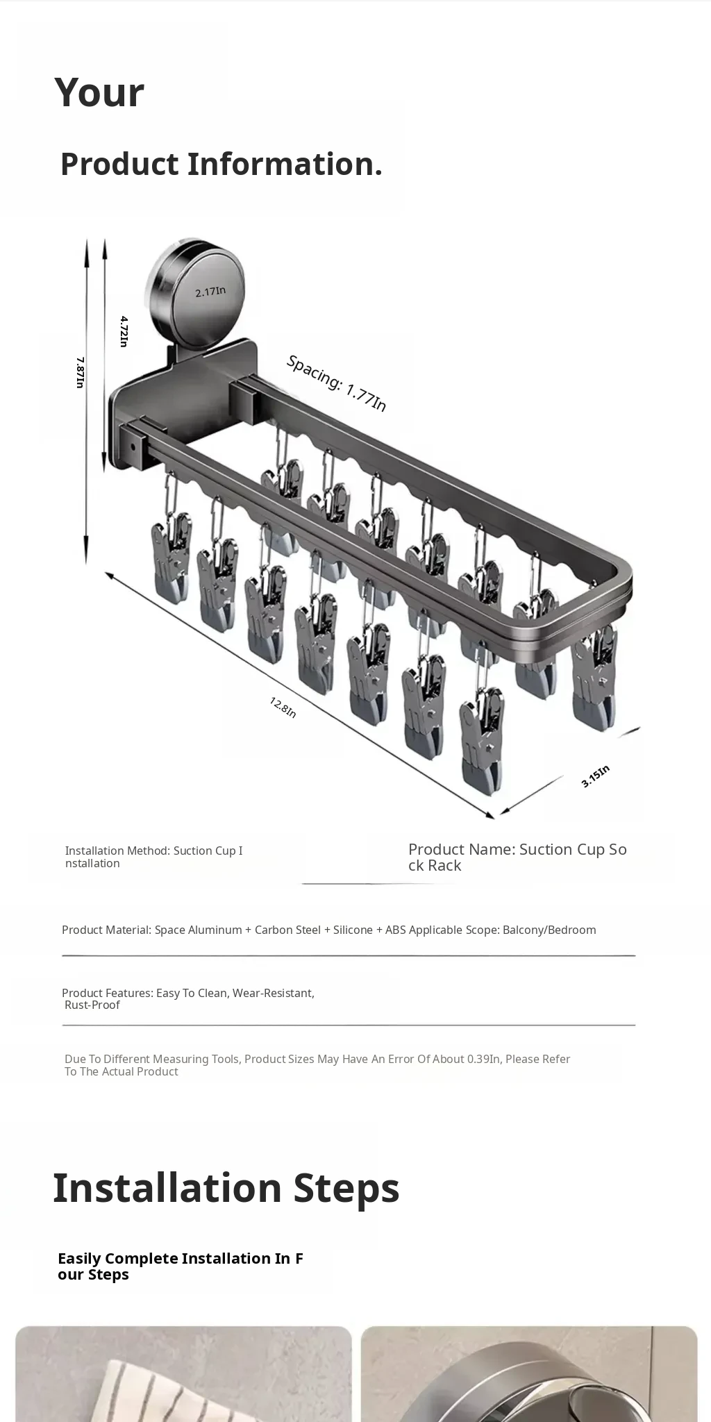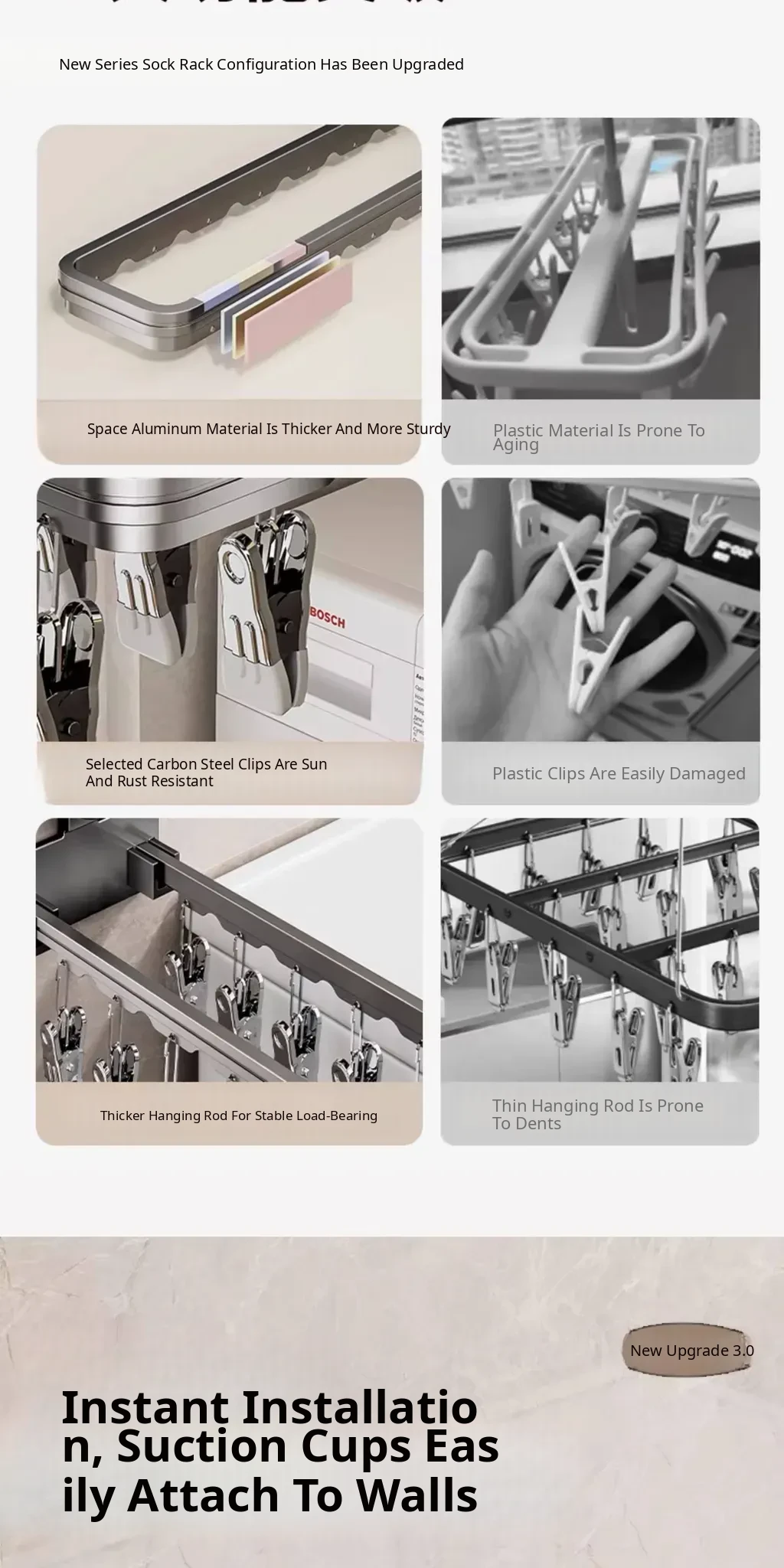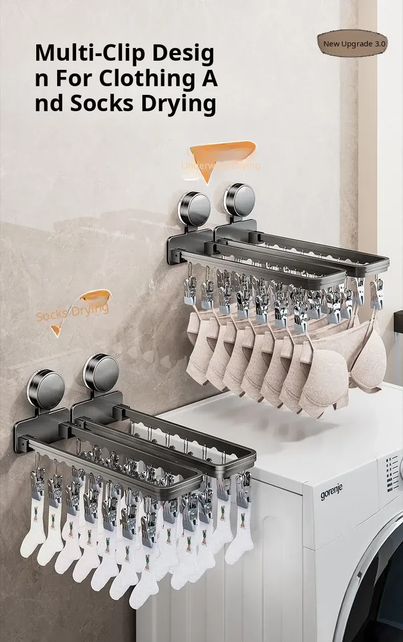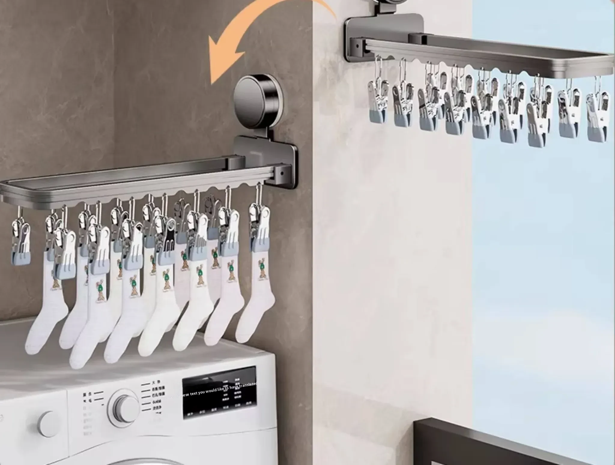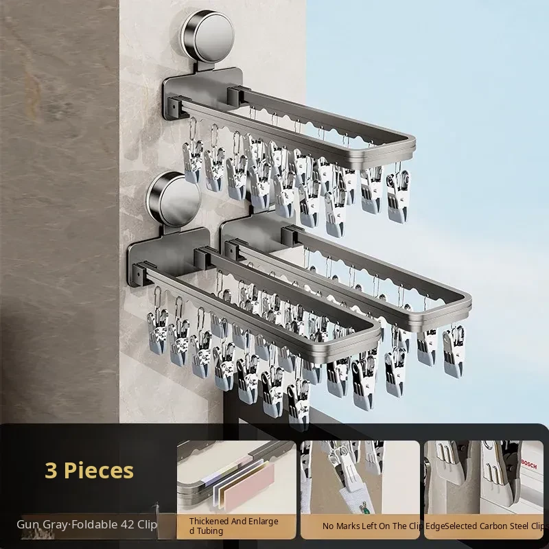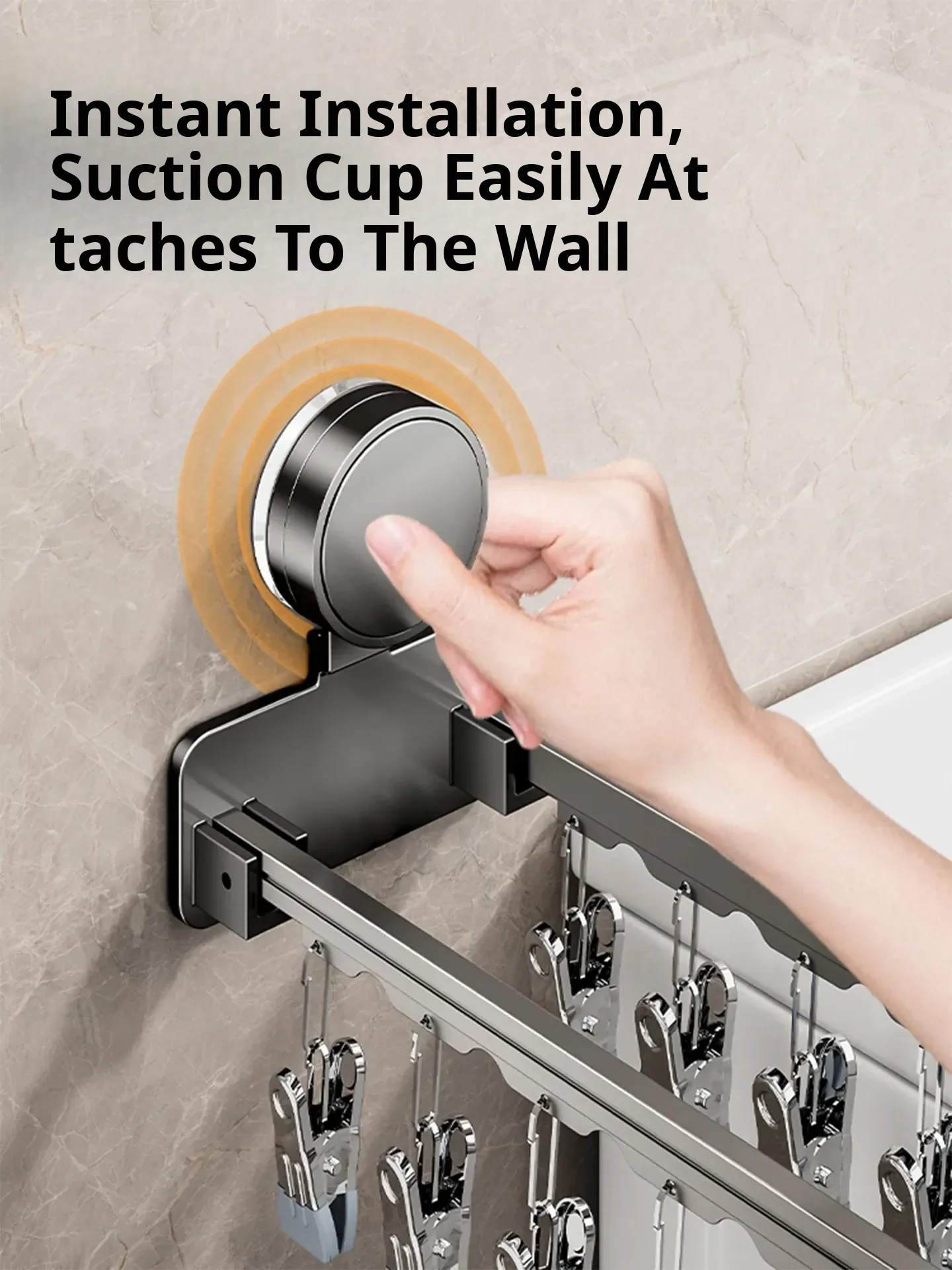 Suction Cup Balcony Clothes Drying Rack - Multi-Clip Socks & Underwear Hanger, Versatile & Foldable Home Essential for Kids & Adults, Perfect for Space-Saving Solutions!