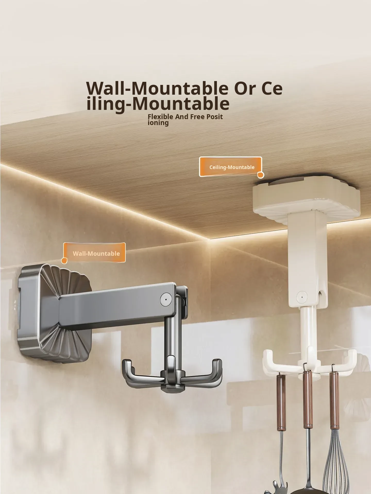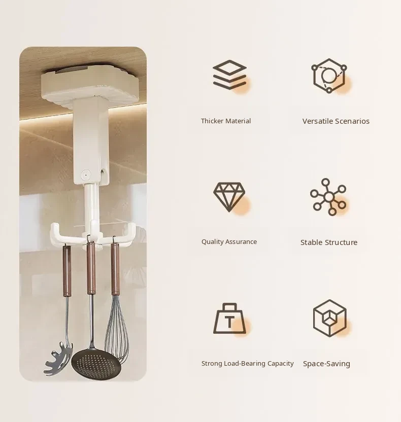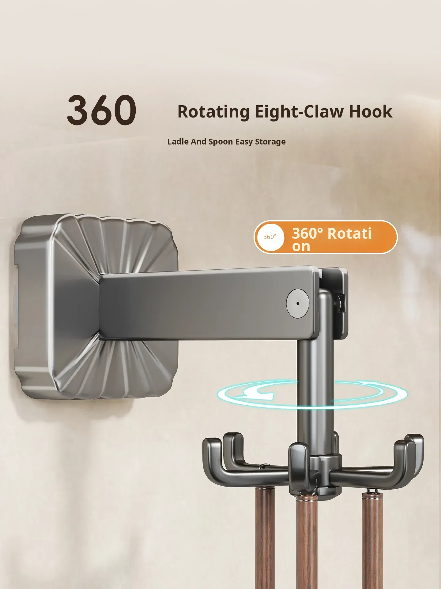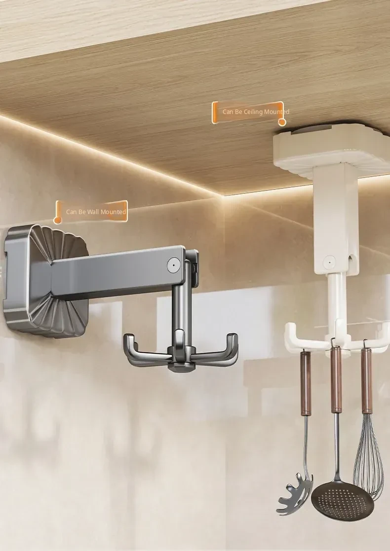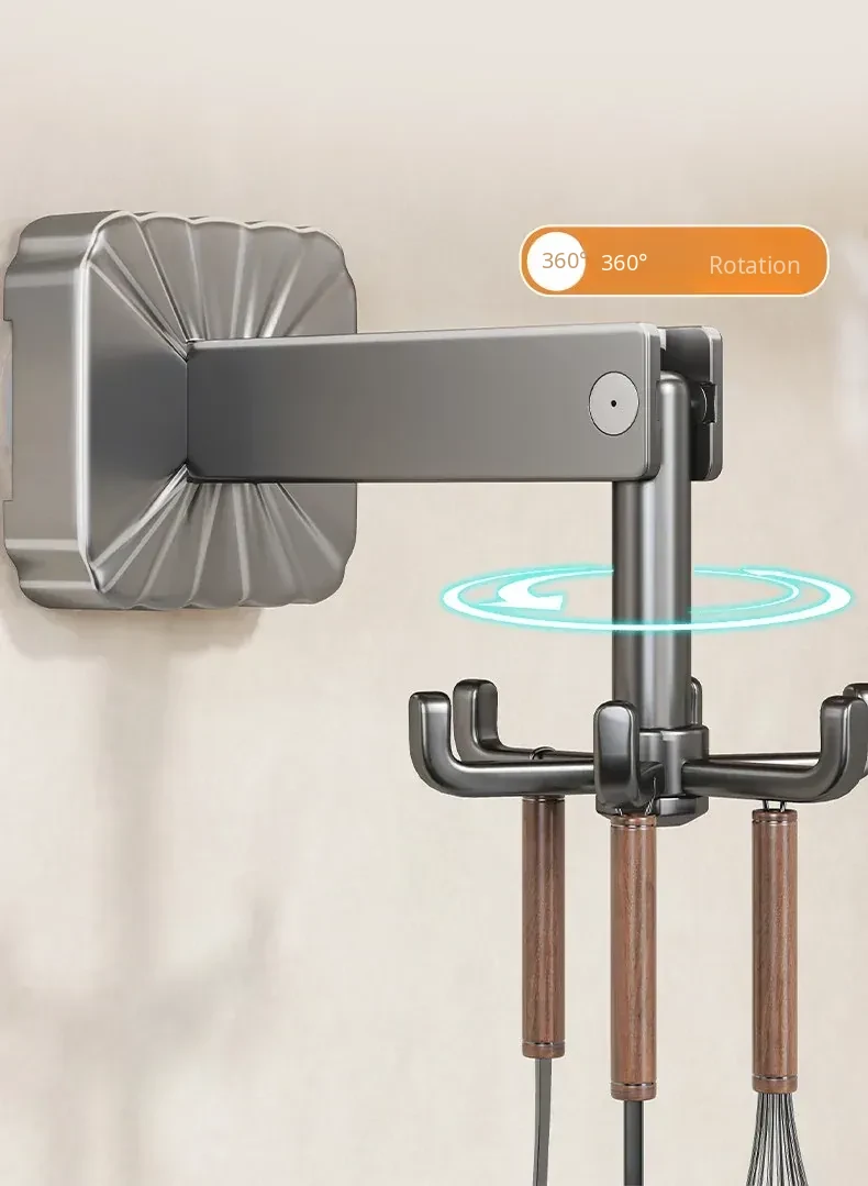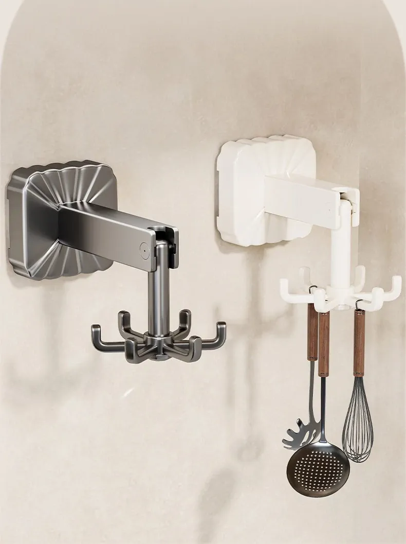 Suction Cup Rotating Hook Kitchen Storage Rack - No Drill Wall-Mounted Organizer for Spatulas, Spoons, and Utensils - Space-Saving Solution for a Neat and Tidy Kitchen