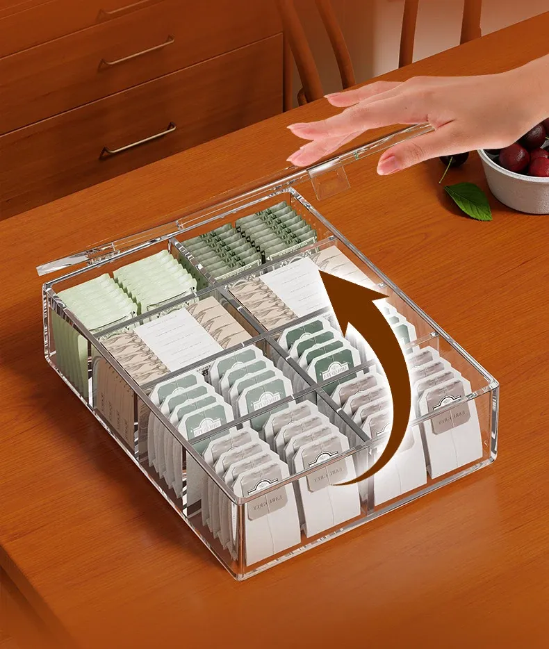 Tea Bag Organizer Box for Desktop - Stylish Coffee Capsule Storage Solution with Lid, Dustproof Design for Tea and Accessories – Perfect for Your Tea Station!