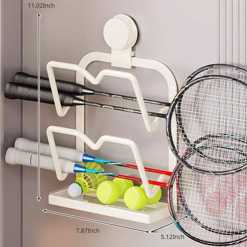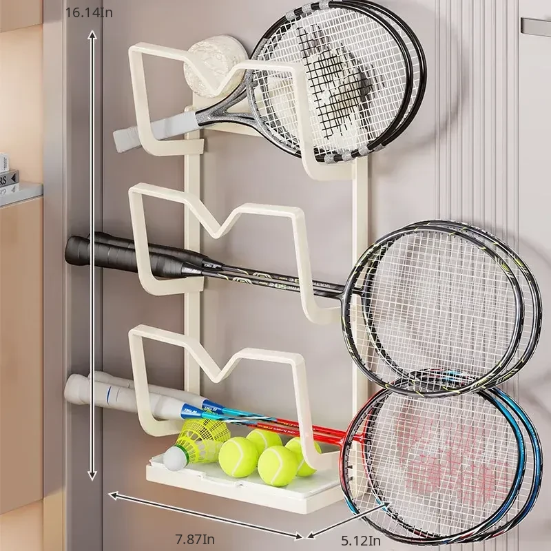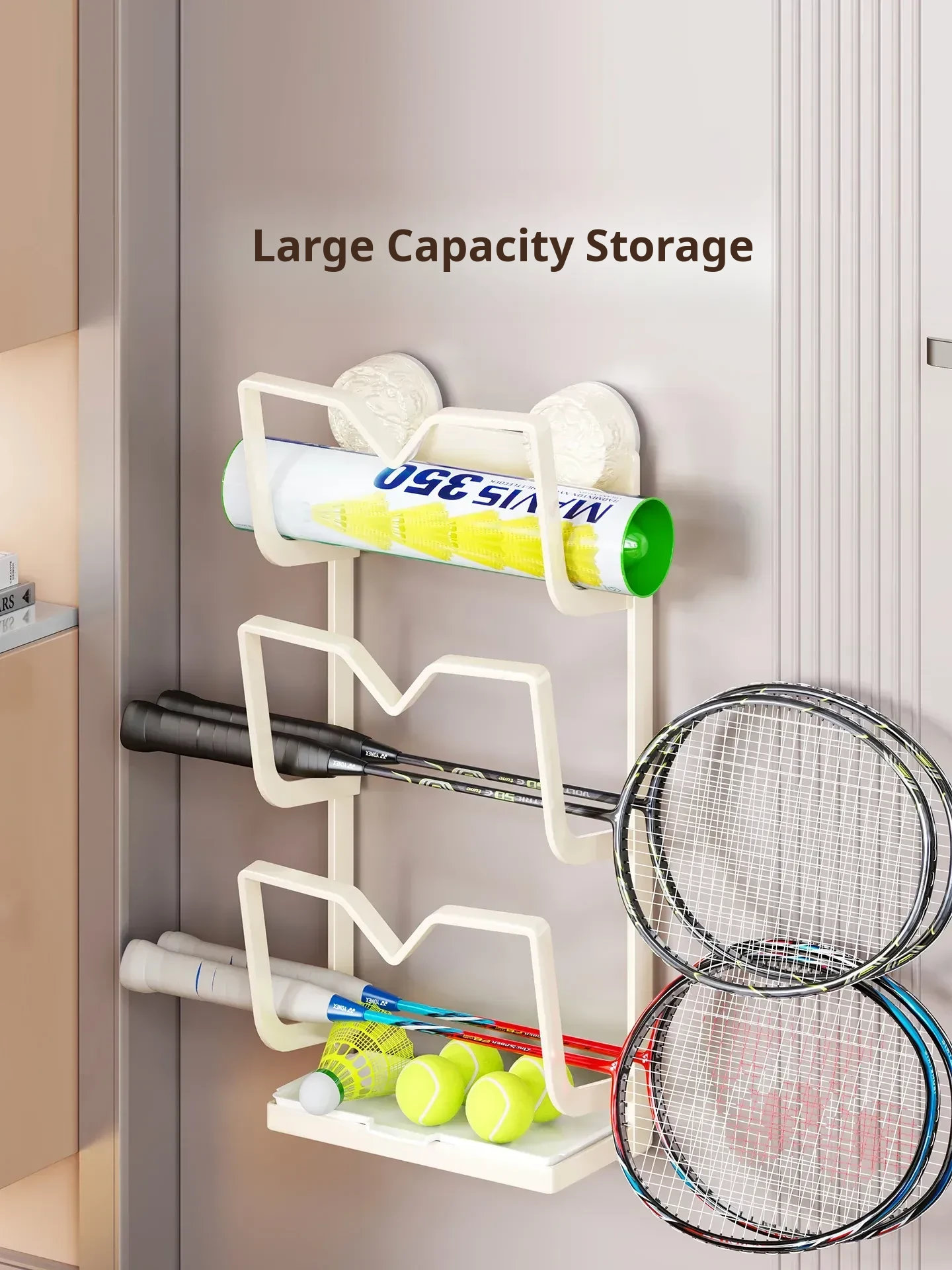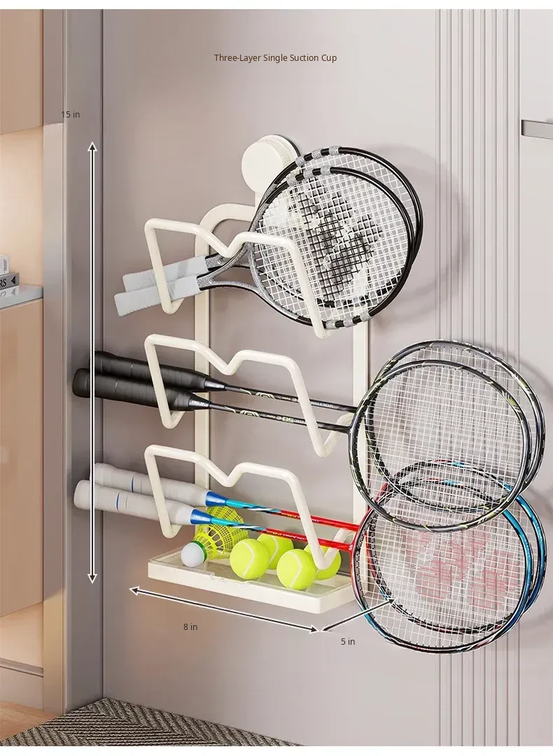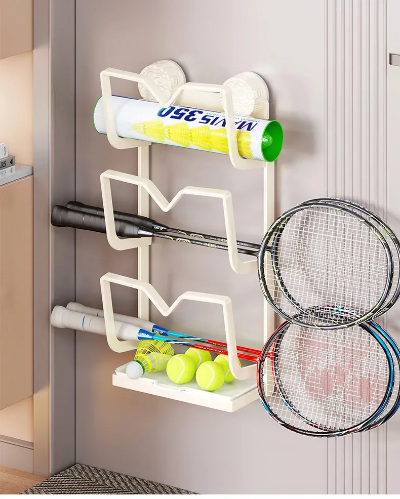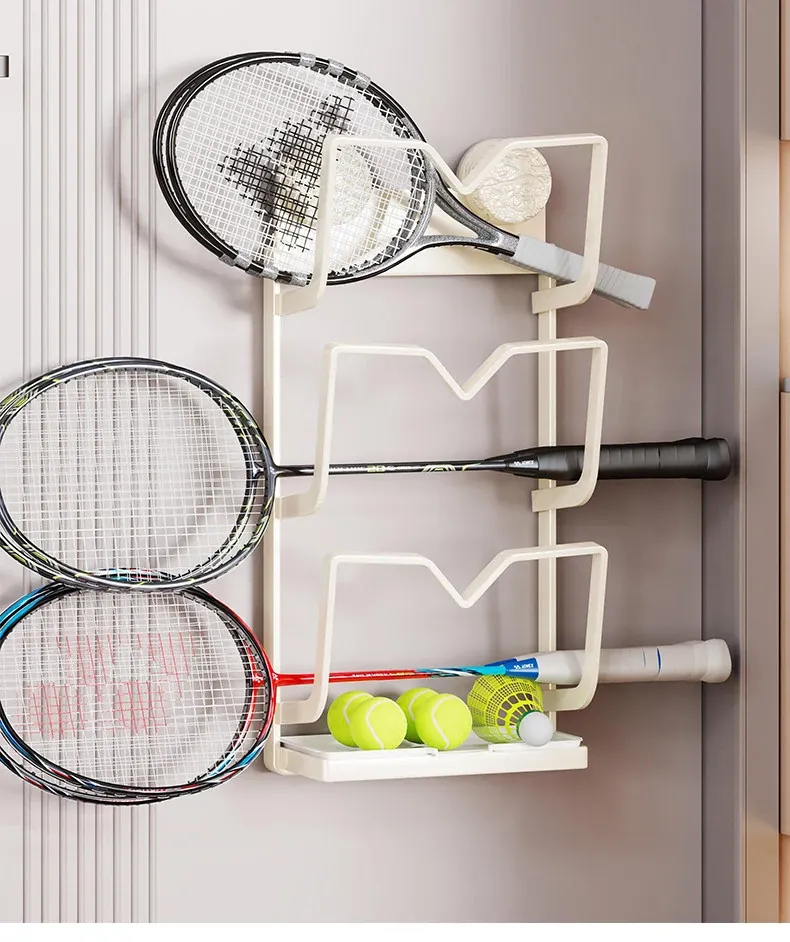 Wall-Mounted Badminton Racket Storage Rack - No Drilling, Multi-Functional Sports Equipment Organizer for Home Use