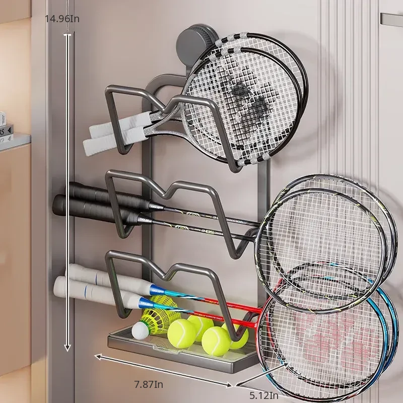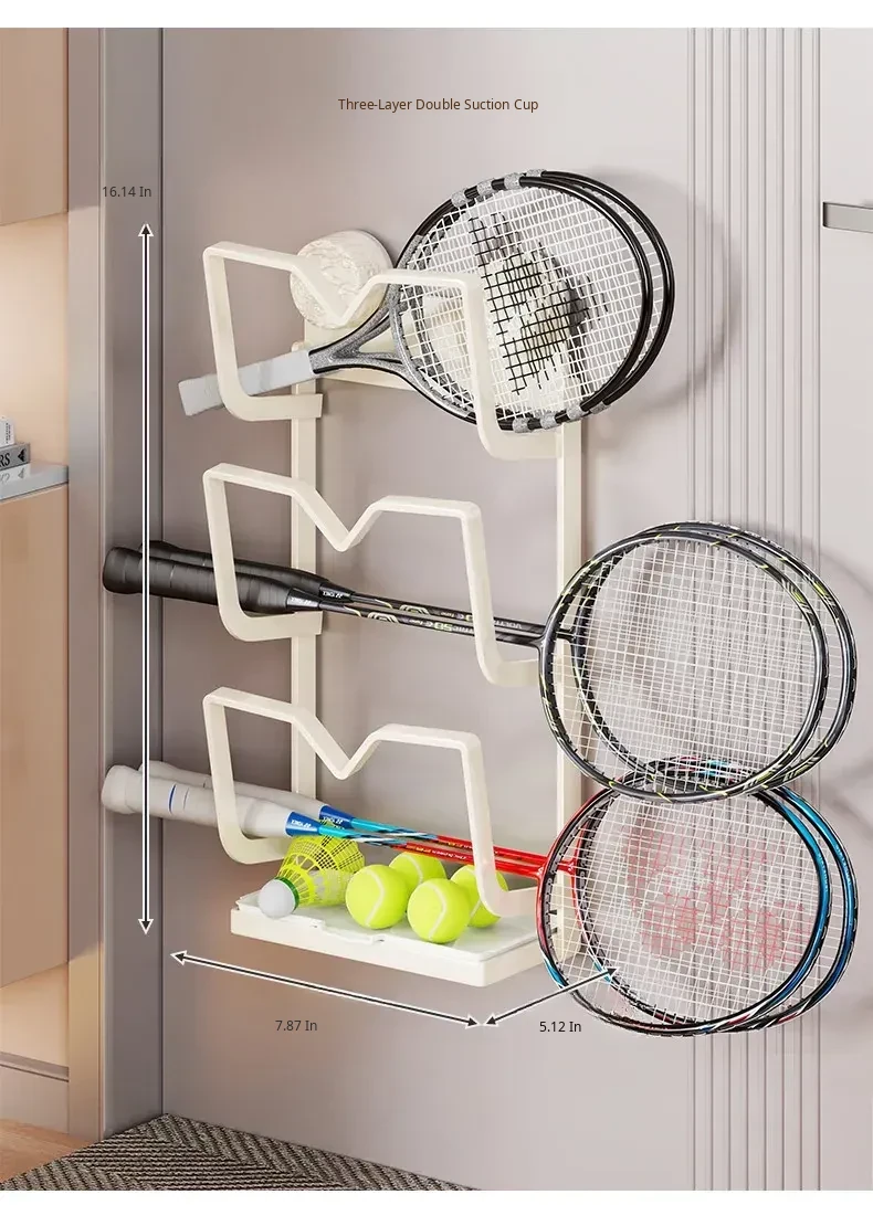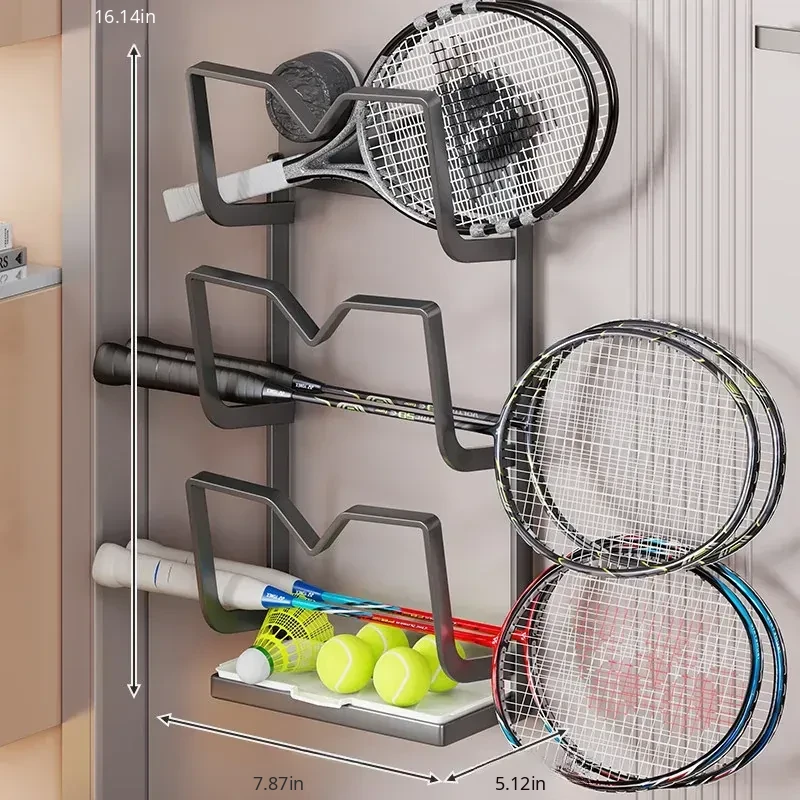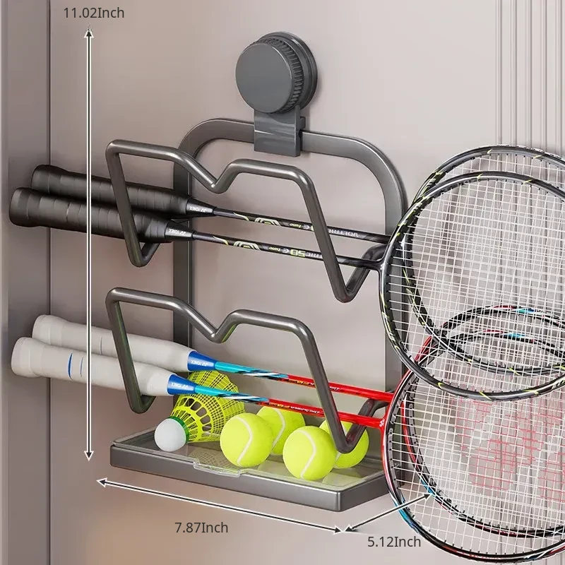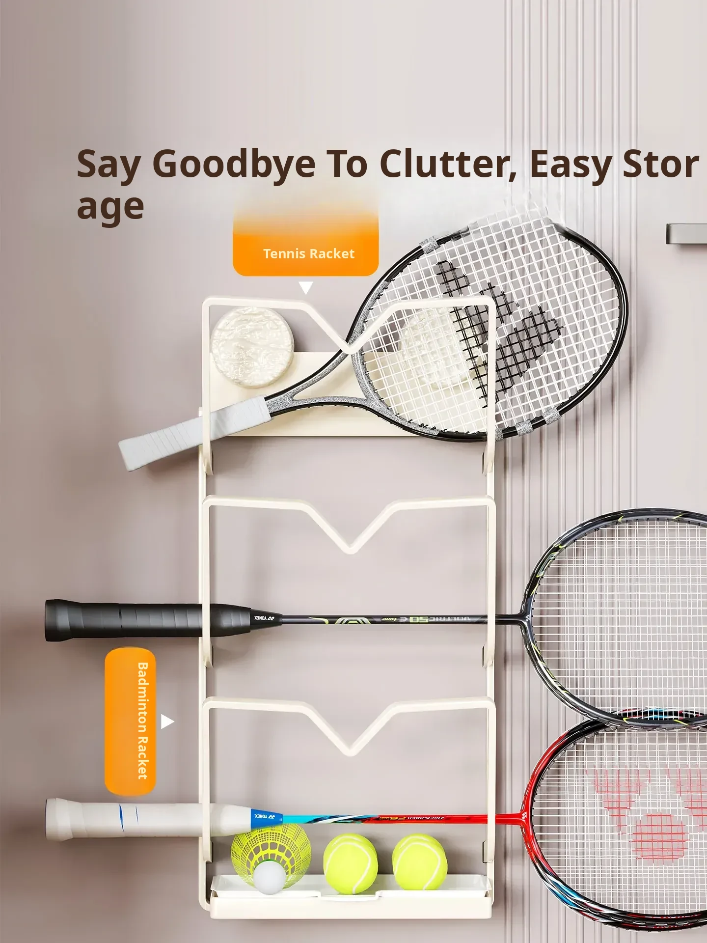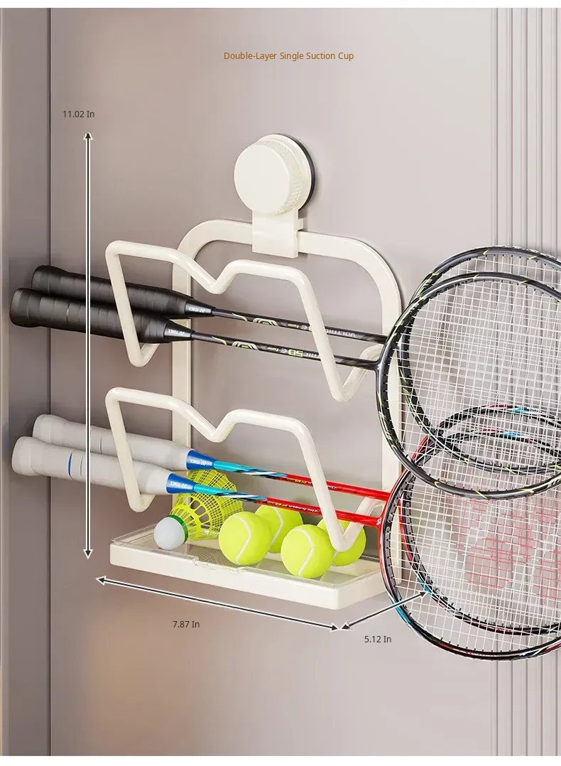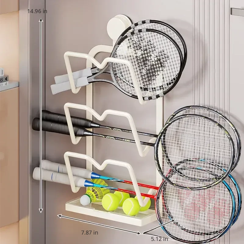 Wall-Mounted Badminton Racket Storage Rack - No Drilling, Multi-Functional Sports Equipment Organizer for Home Use