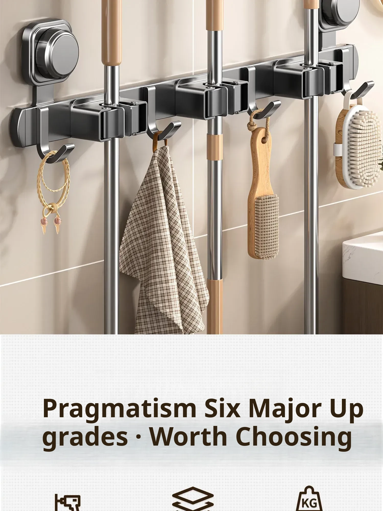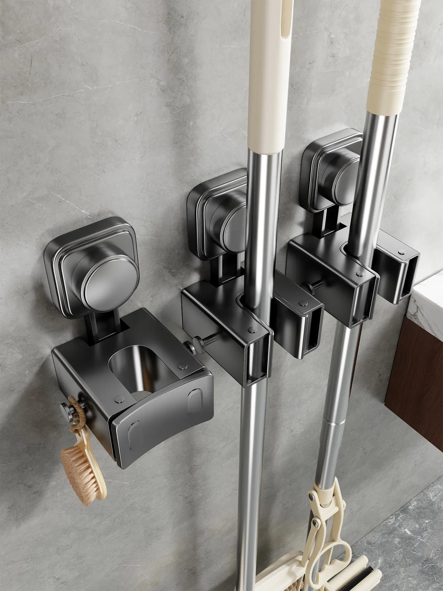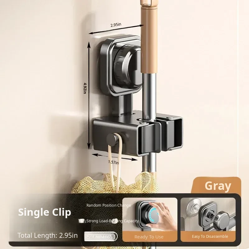 Wall-Mounted Vacuum Mop Holder - No Drill Required, Space-Saving Organizer for Brooms and Mops, Perfect for Bathrooms - Easy Installation, Sturdy Storage Solution!
