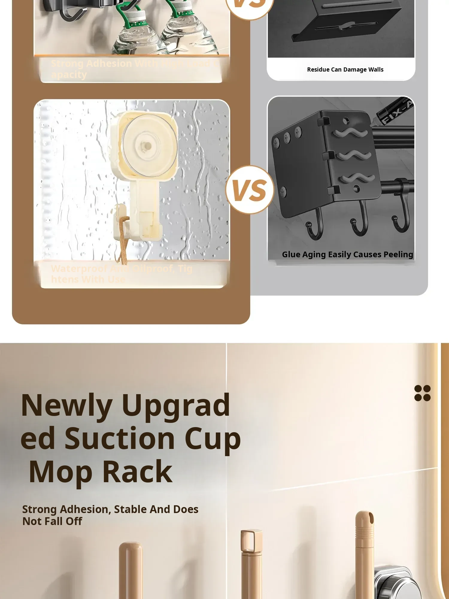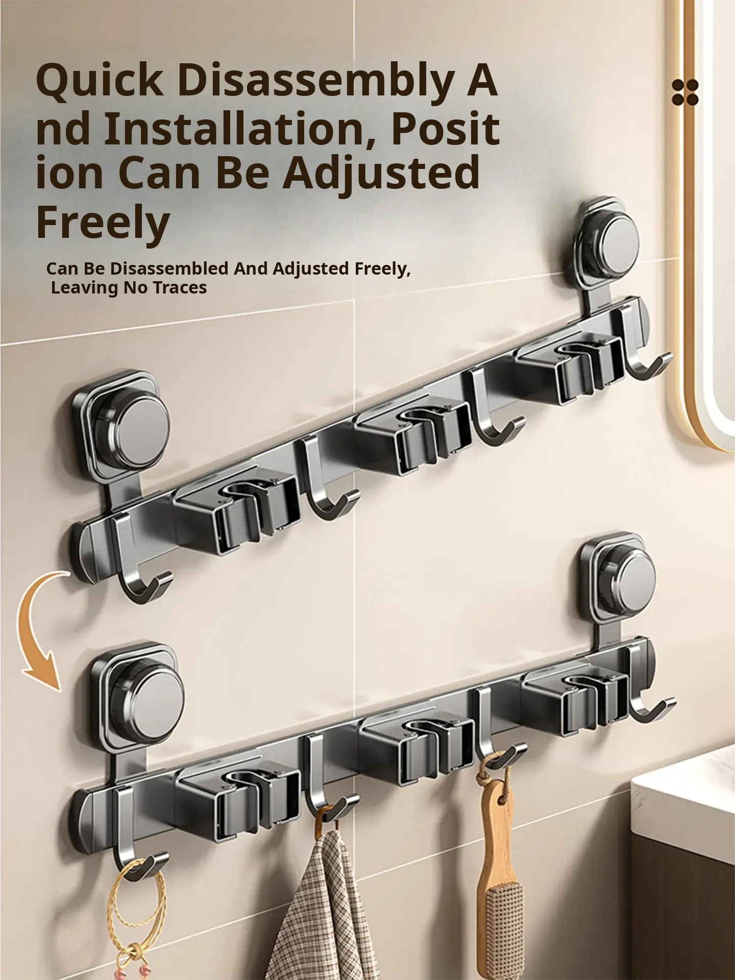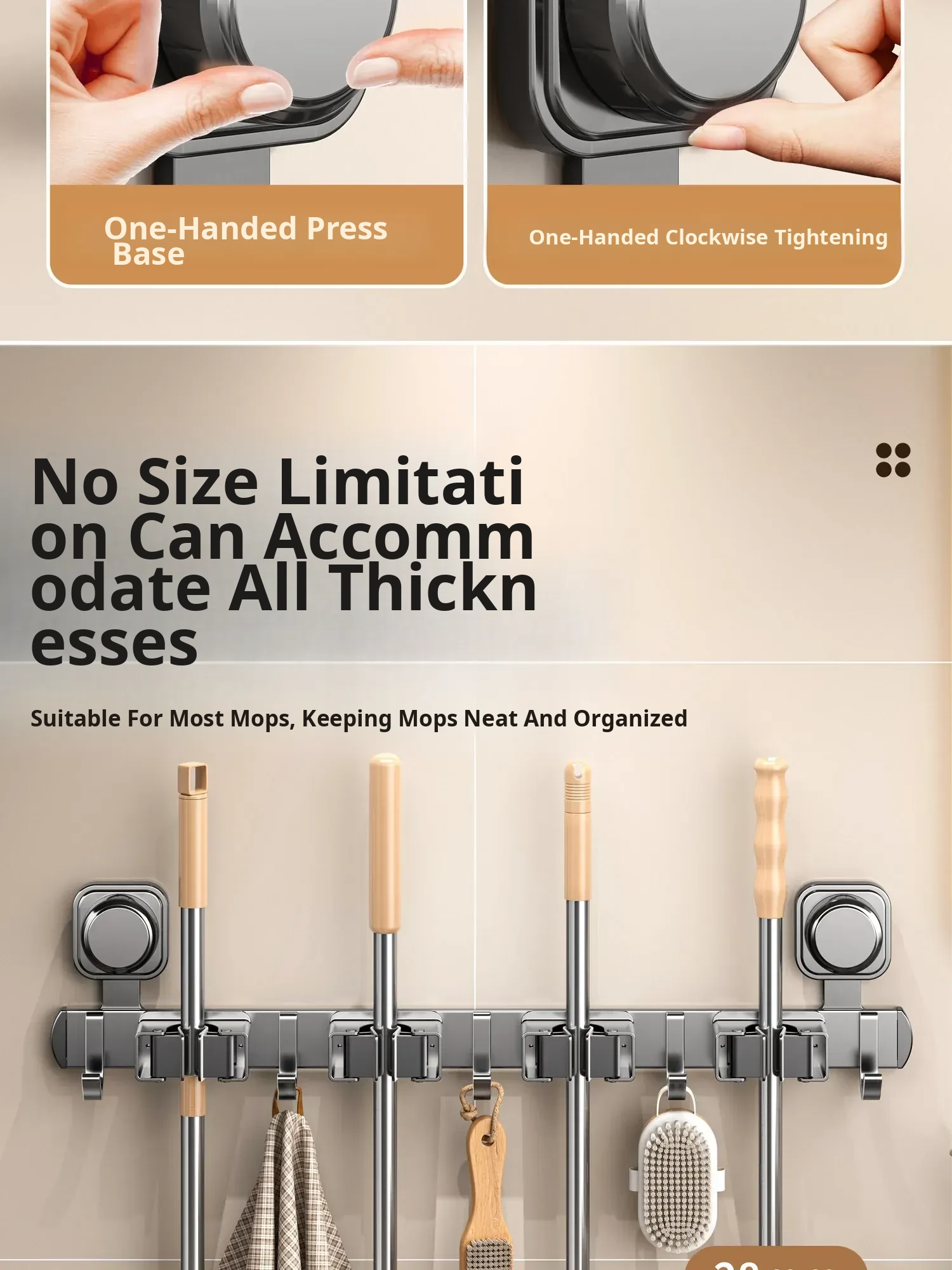Wall-Mounted Vacuum Mop Holder - No Drill Required, Space-Saving Organizer for Brooms and Mops, Perfect for Bathrooms - Easy Installation, Sturdy Storage Solution!
