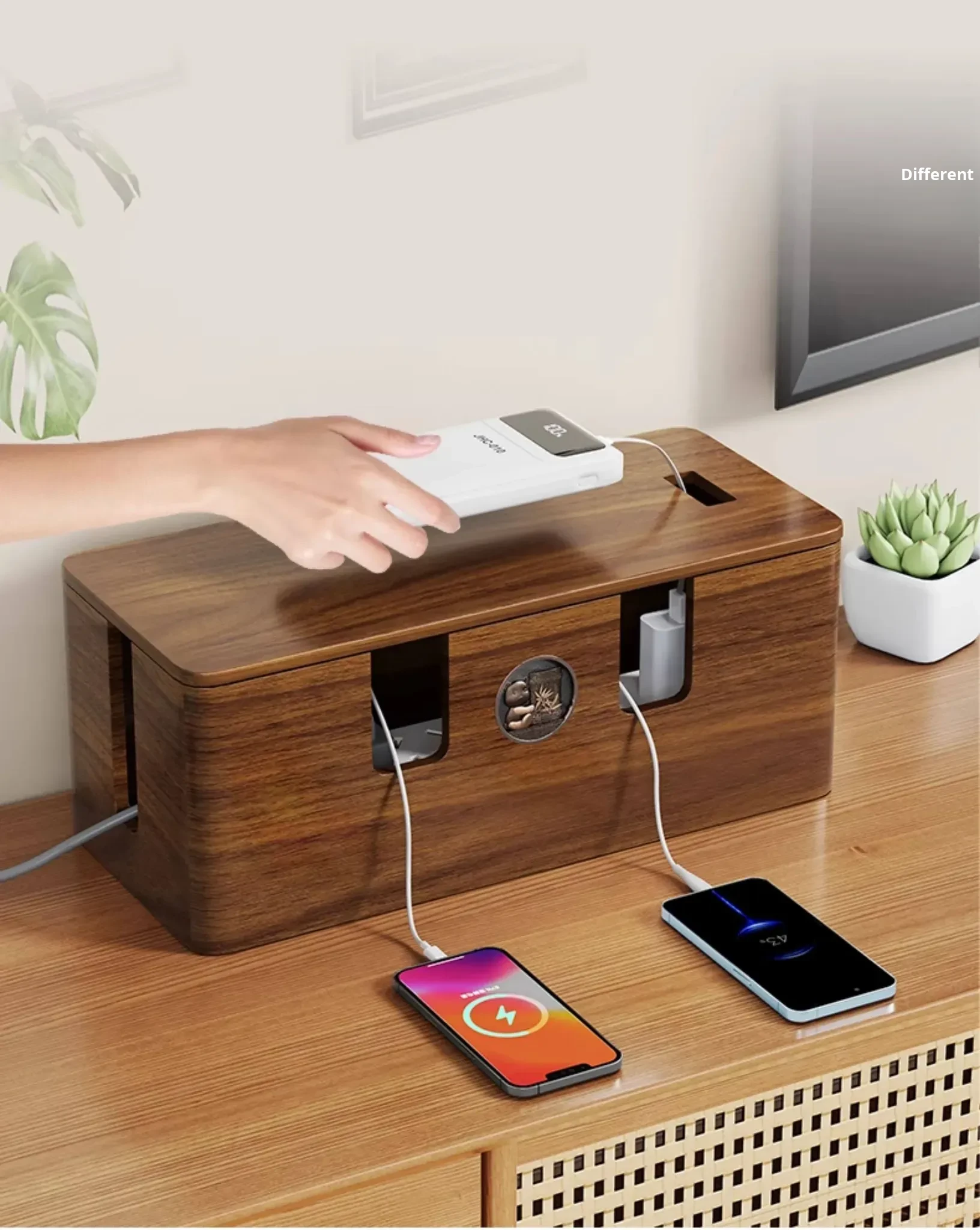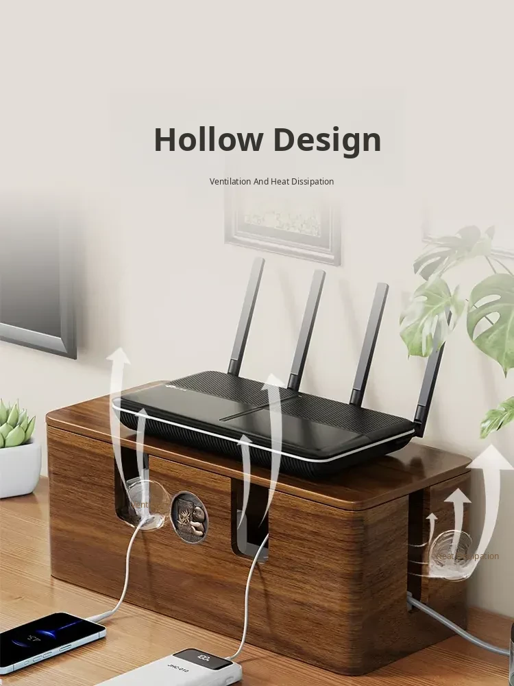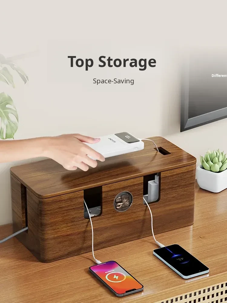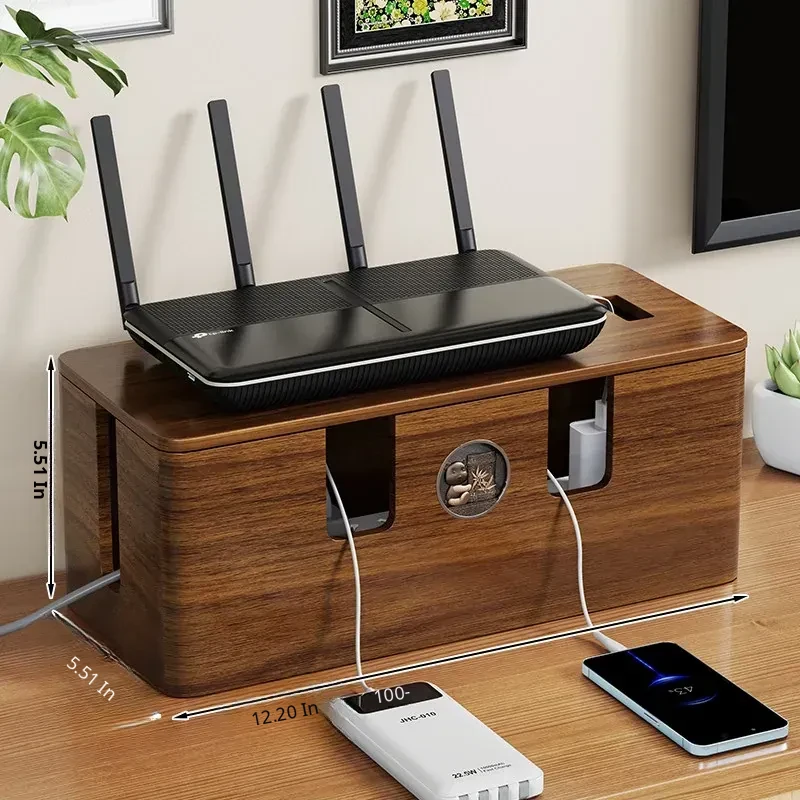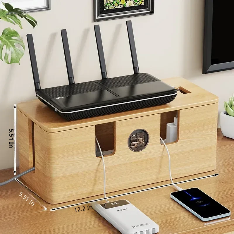 Wooden Cable Management Box - Elegant Desktop Power Strip Organizer for Tidy Wiring and Concealed Electrical Cords - Perfect Solution for Neat and Stylish Home or Office Spaces