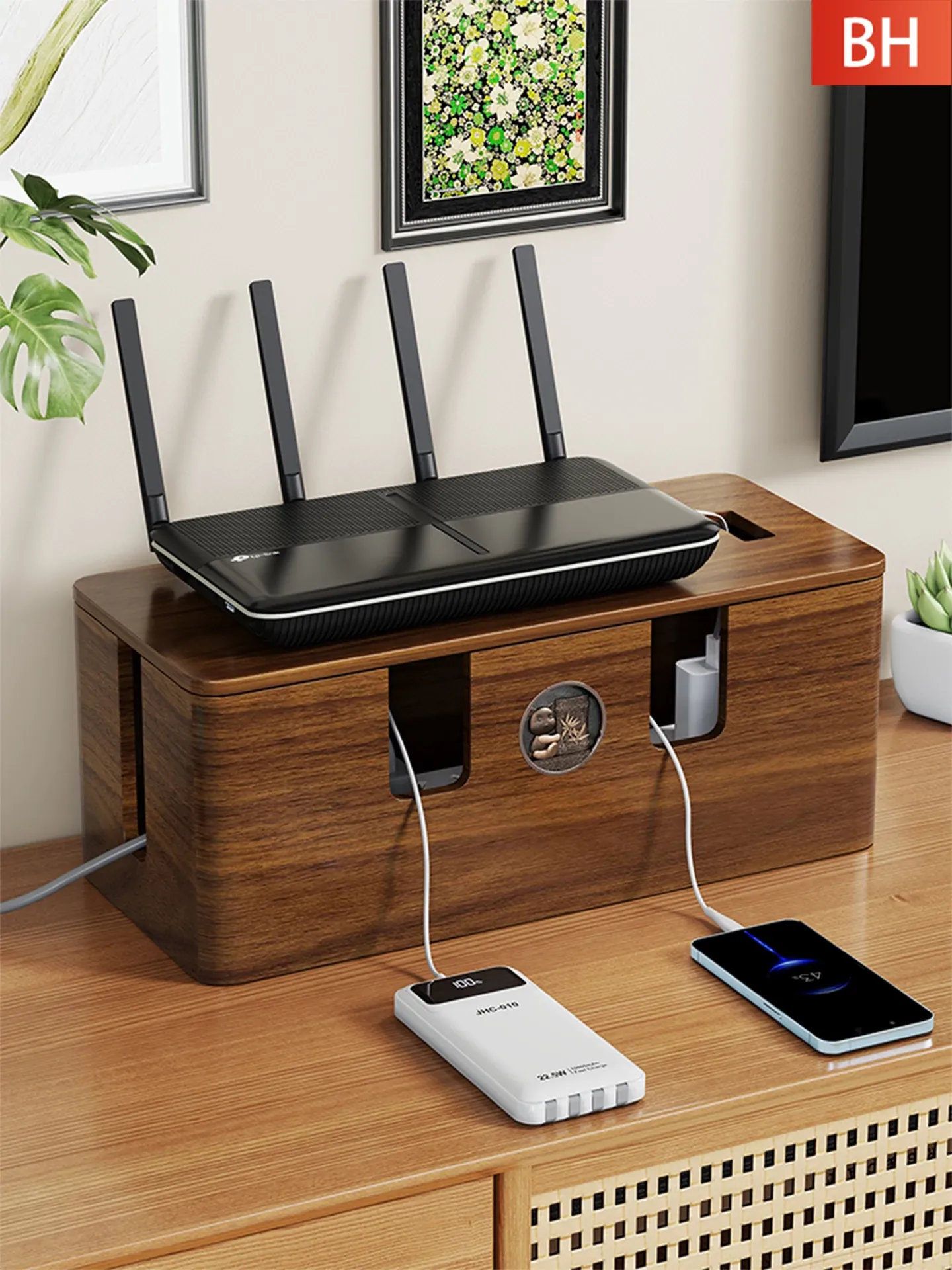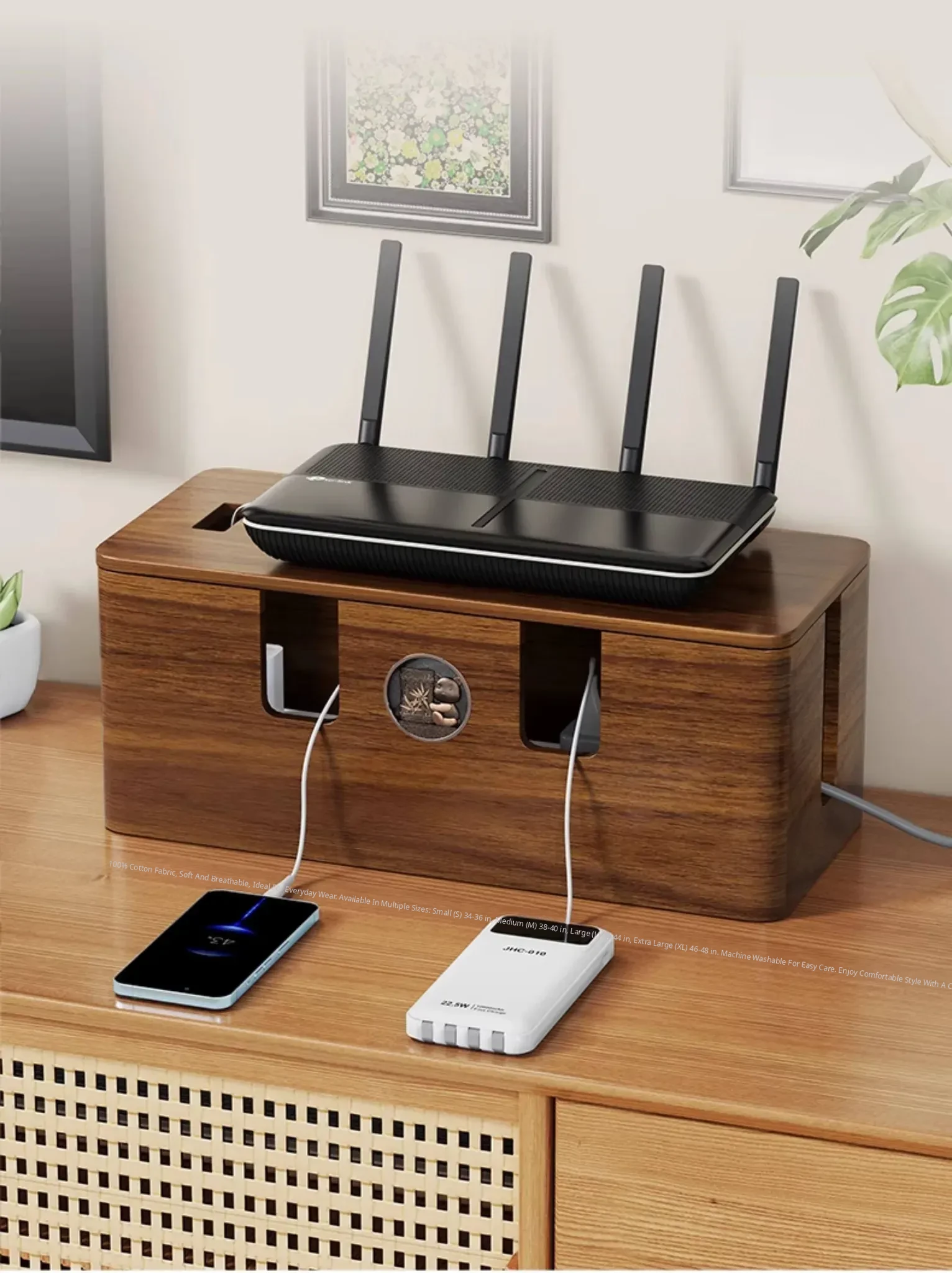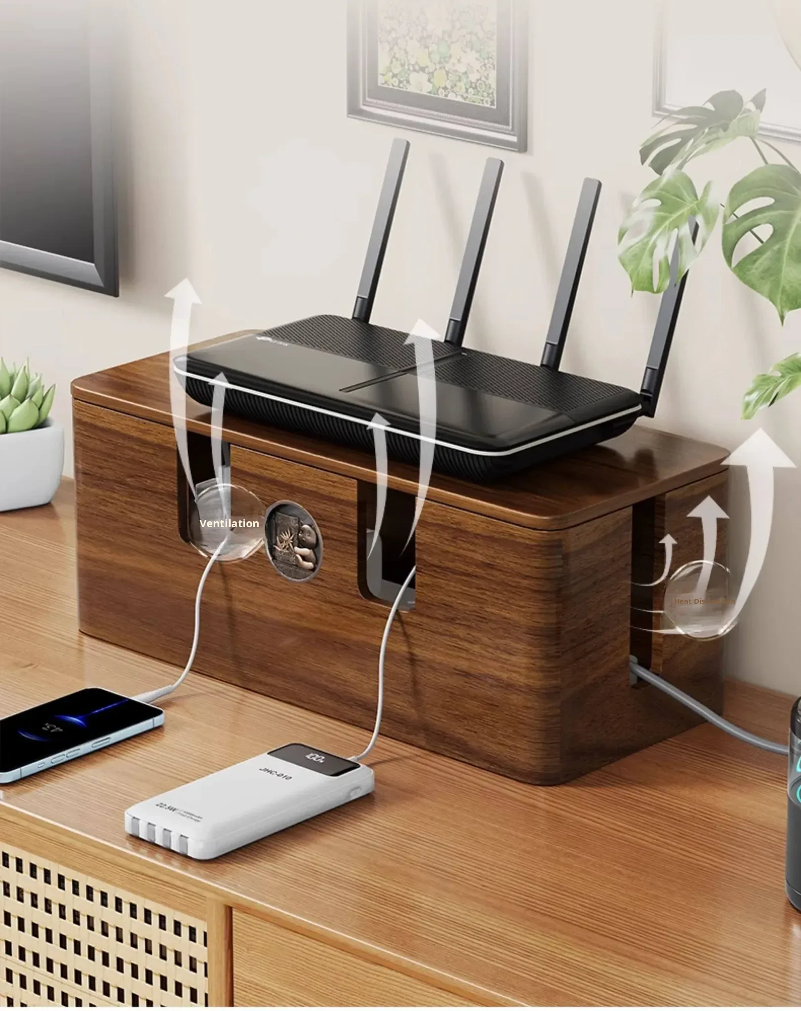 Wooden Cable Management Box - Elegant Desktop Power Strip Organizer for Tidy Wiring and Concealed Electrical Cords - Perfect Solution for Neat and Stylish Home or Office Spaces