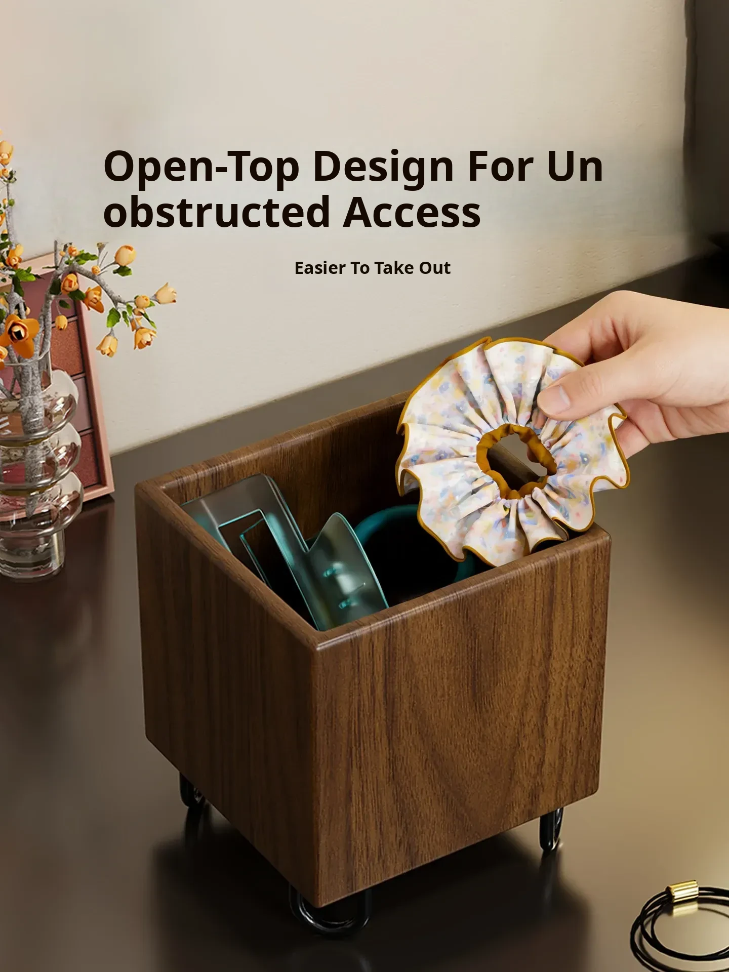 Wooden Hair Tie Storage Box for Kids - Large Capacity Organizer for Girls' Hair Accessories, Clips, and Scrunchies - Perfect Desktop Solution for Little Jewelry!