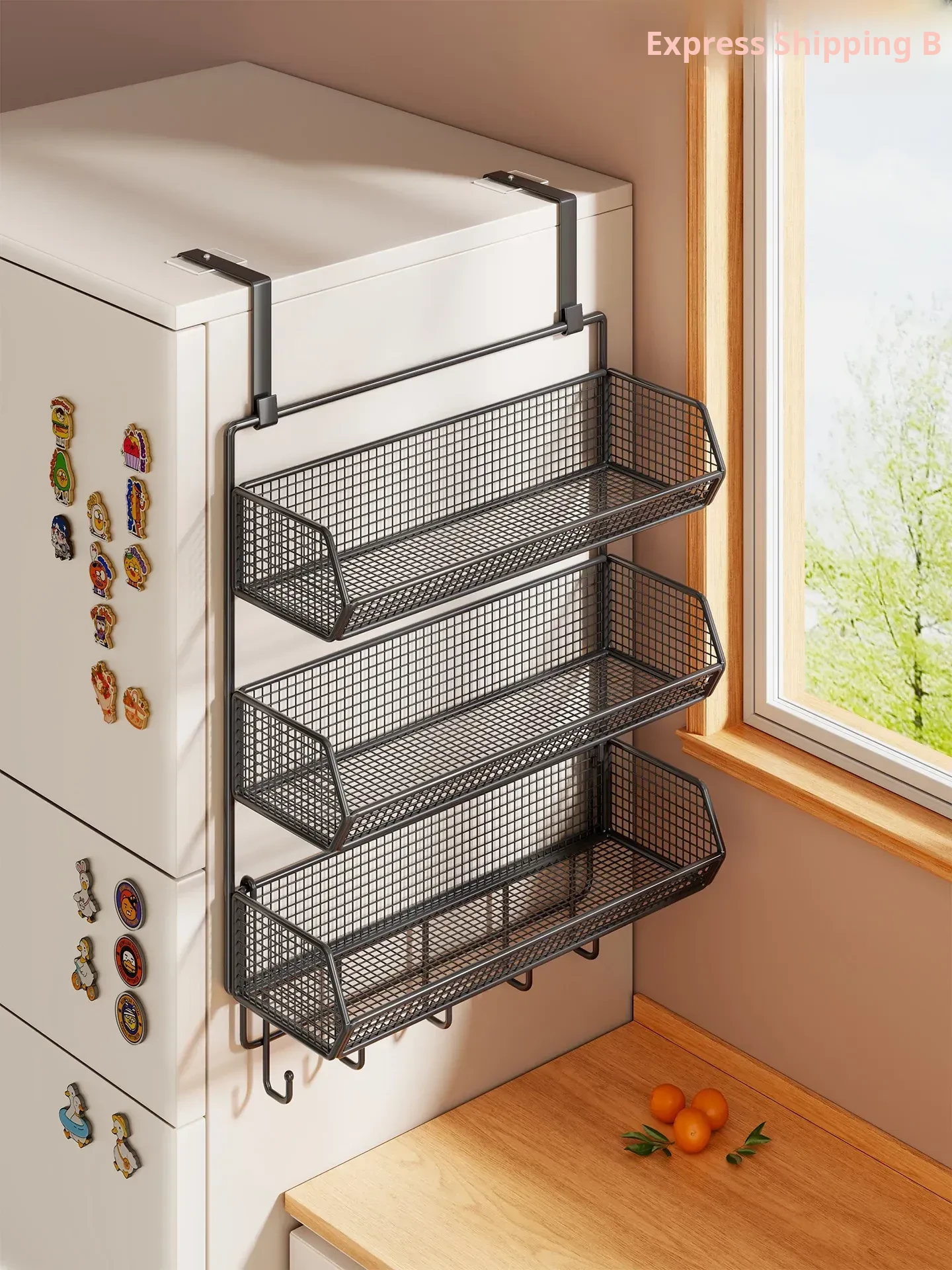 Multilayer Refrigerator Side Storage Rack - No Drill Hanging Organizer for Cling Film, Spice Jars, and Kitchen Supplies - Maximize Space Effortlessly!