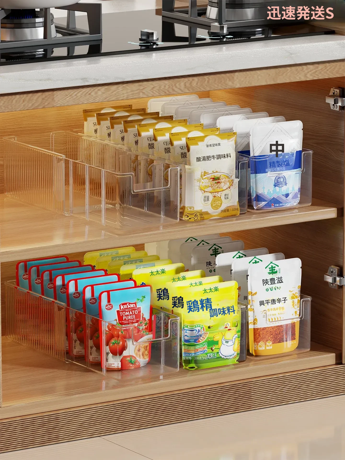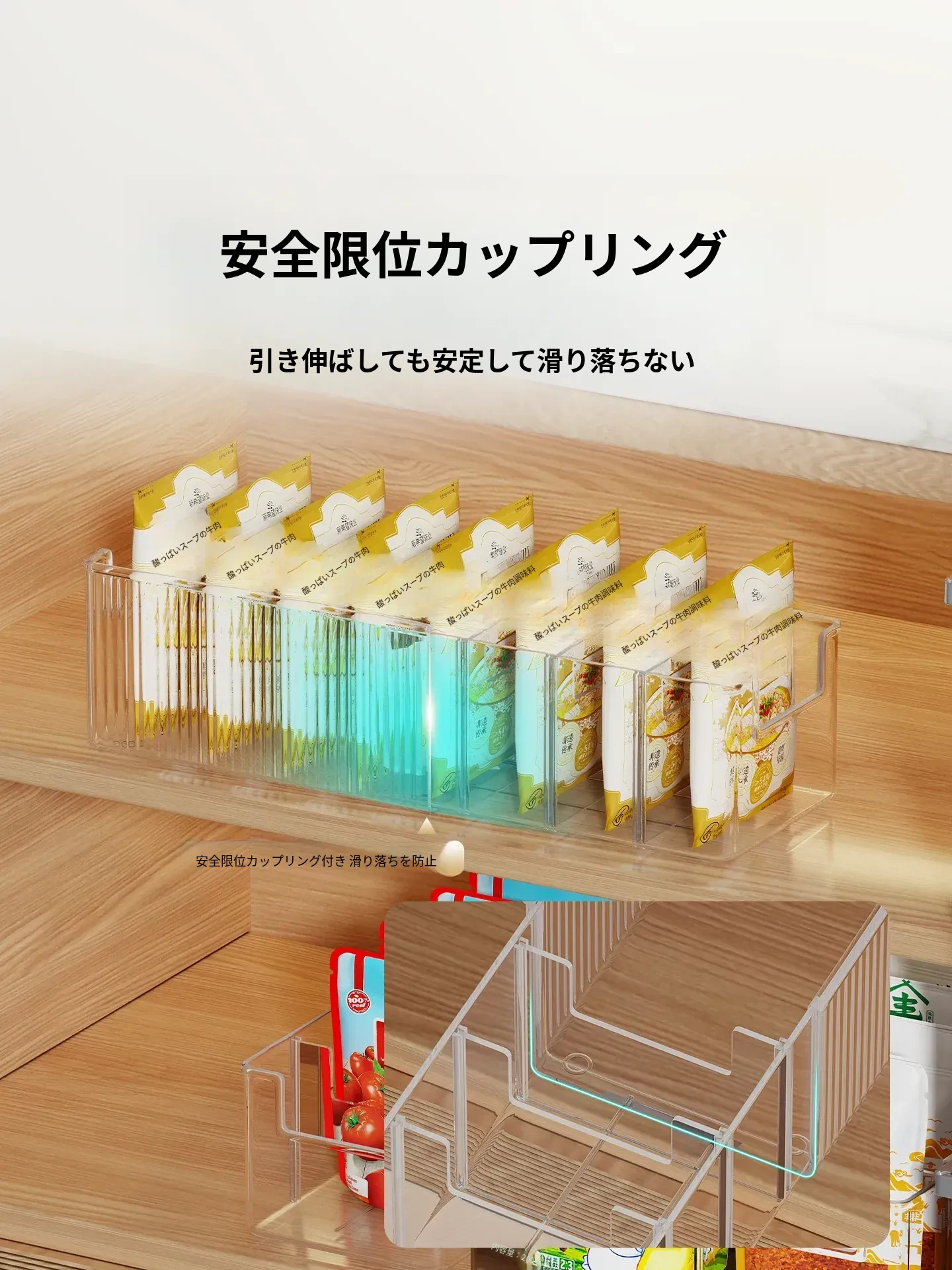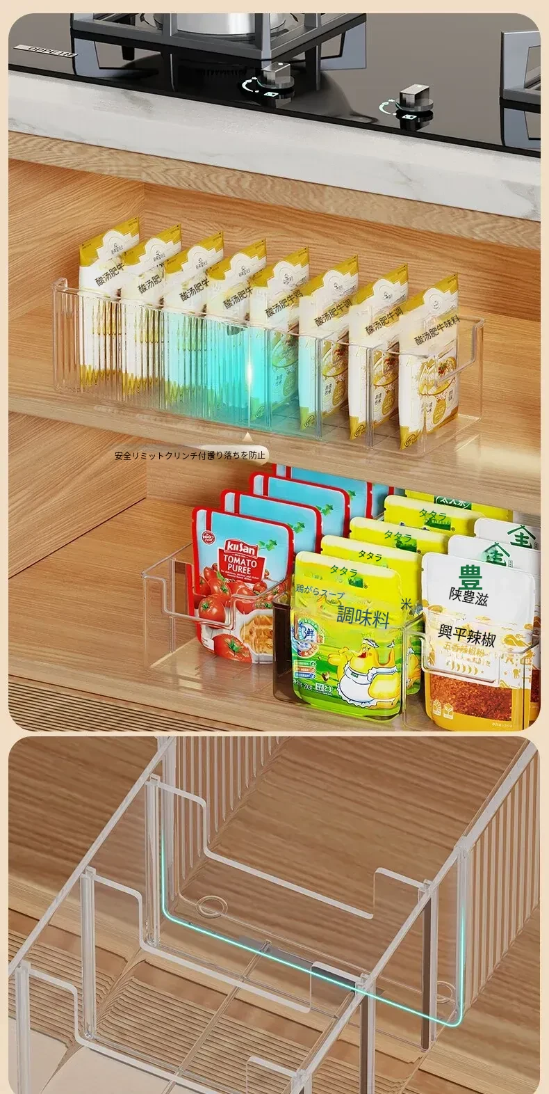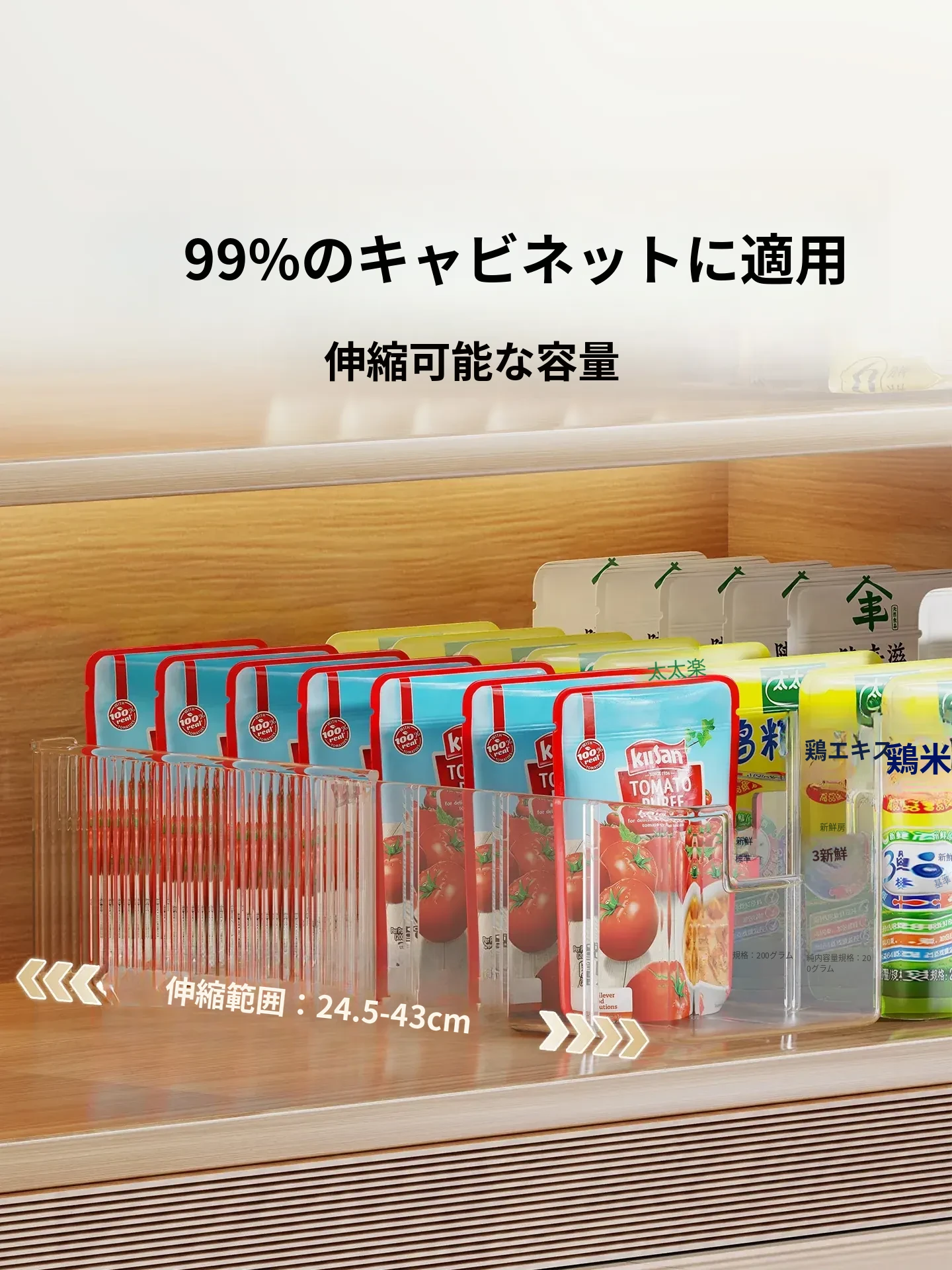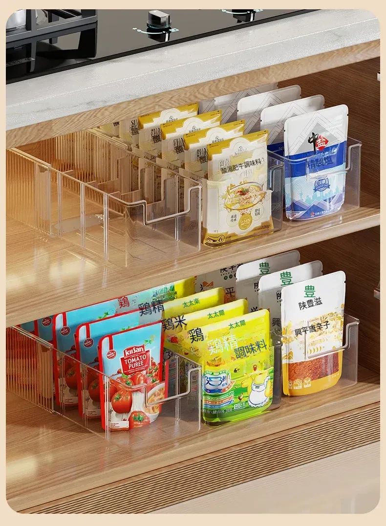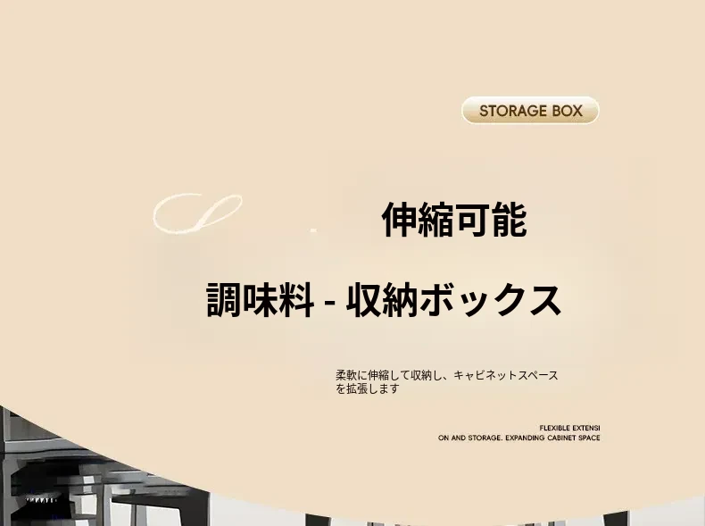 キッチン収納に最適!伸縮可能な調味料ボックス - 整理整頓に役立つ分格型スナックディスプレイラック。すっきりとしたキッチン環境を実現する、便利な長方形デザイン!