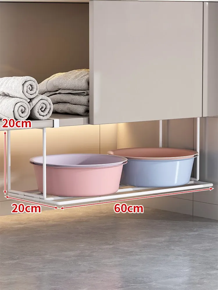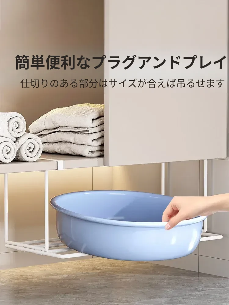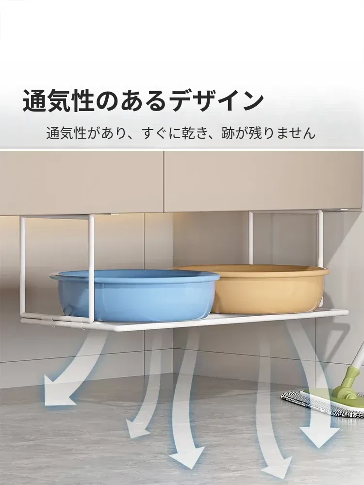 バスルーム用洗面台収納ラック - スペースを有効活用!洗面盆下の収納をスッキリ整理、浴室を美しく保つための必需品です!洗顔台の下に簡単取り付け、毎日の生活をもっと快適に!