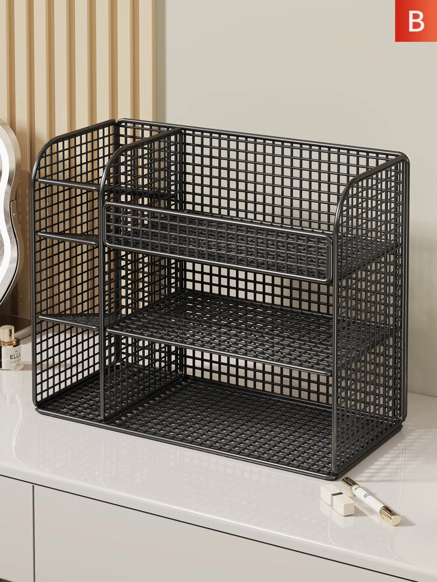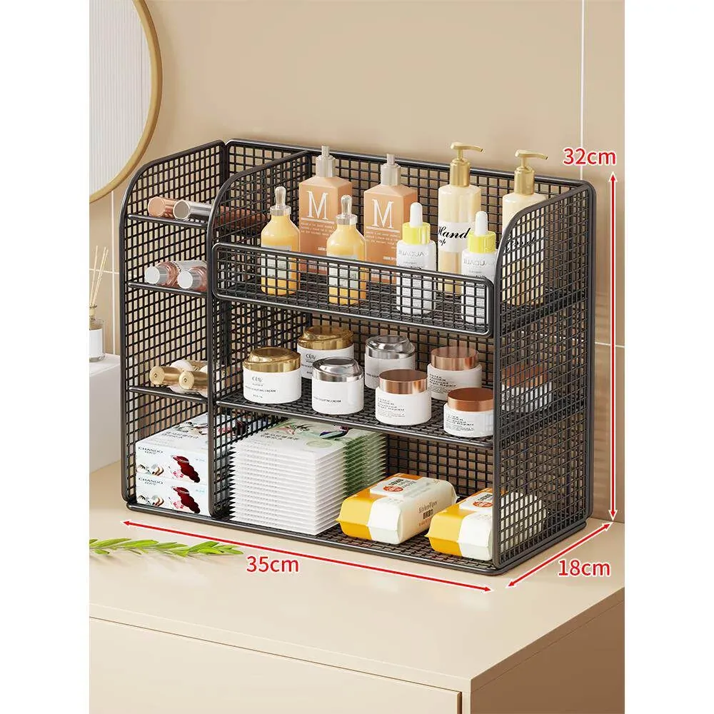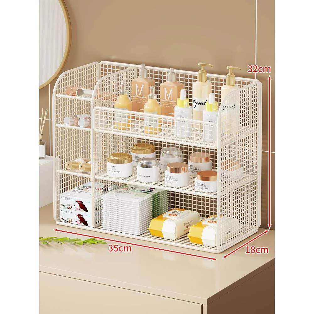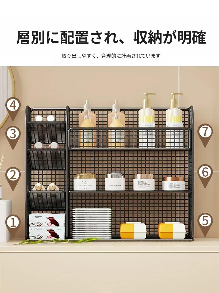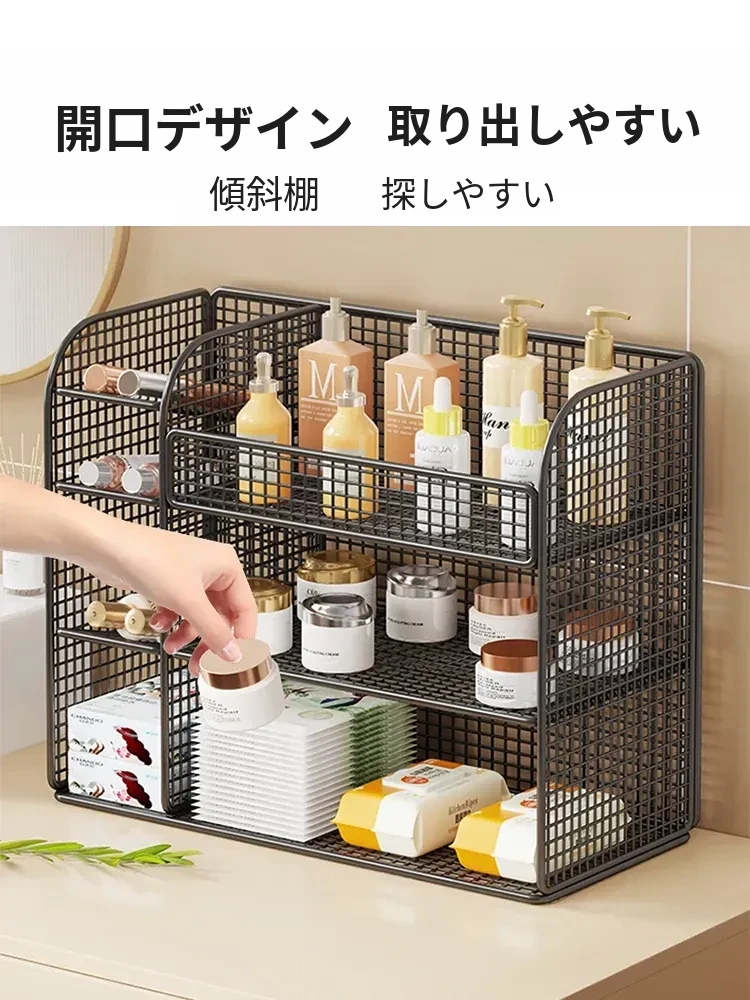 化粧品収納ラック - メイクアップテーブルに最適なスキンケア&香水整理棚!洗面台のデスクトップをスッキリ整頓、層別収納で使いやすさ抜群!あなたの美容アイテムを美しく整理しましょう!