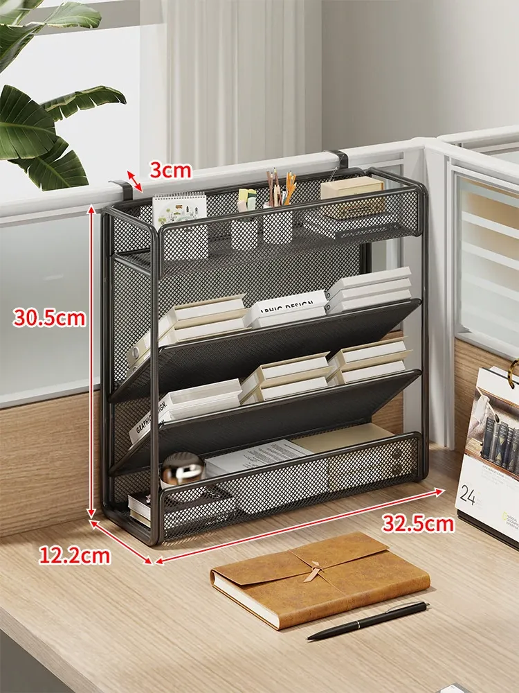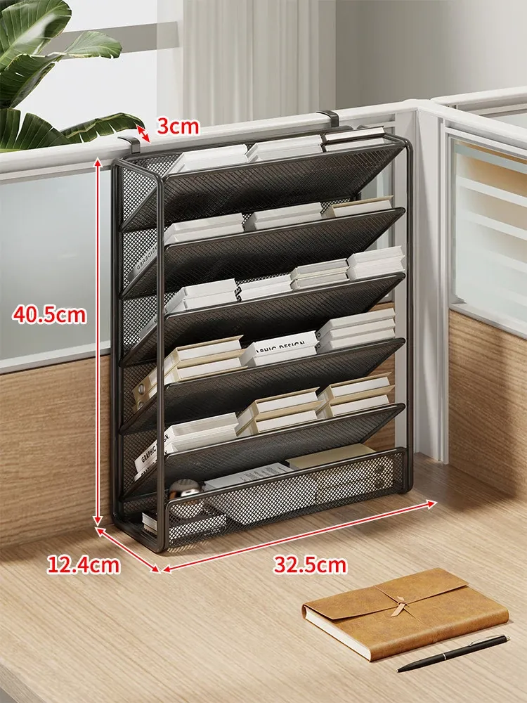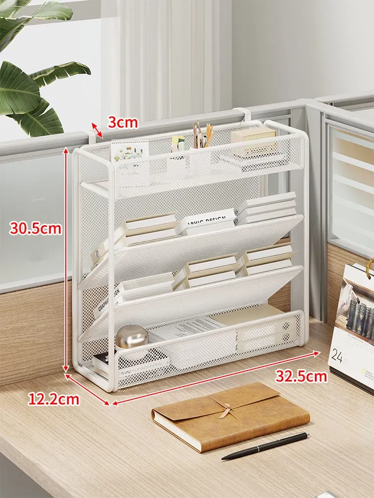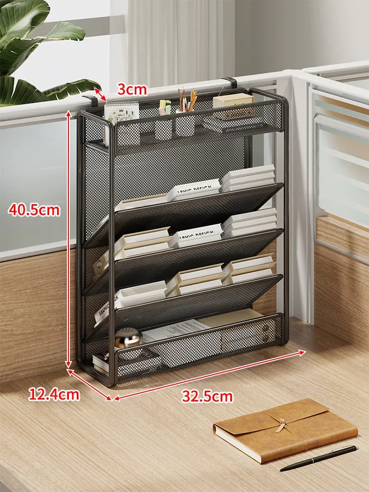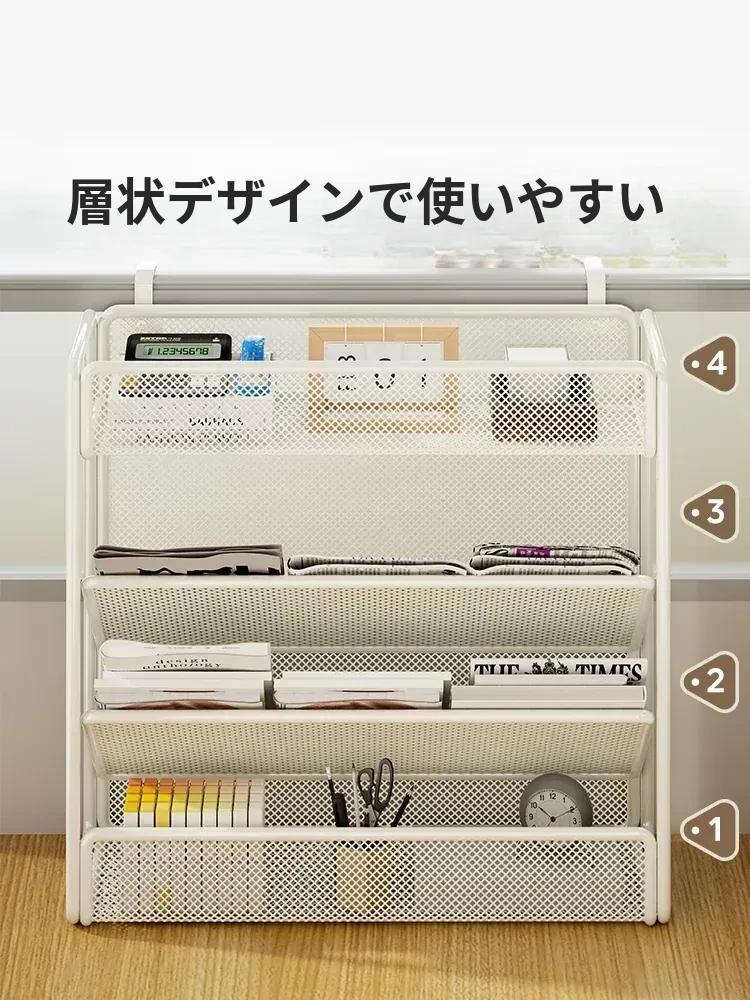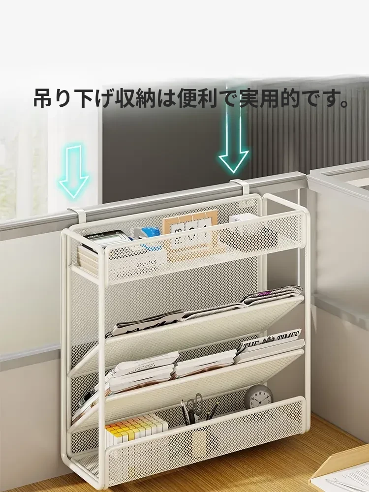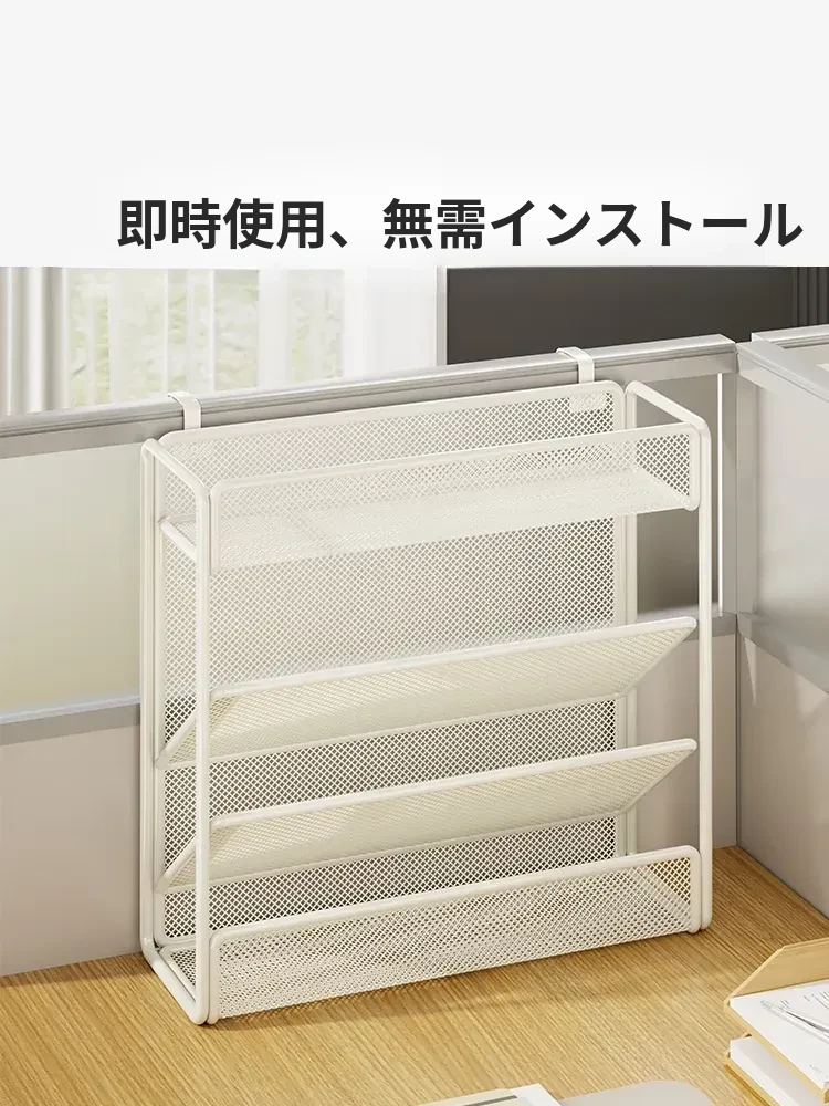 デスク上に取り付けられるファイルラック - 穴を開けずに簡単取り付け!斜めに収納できるオフィス用品整理アイテム。デスク周りの雑貨をスッキリ整頓し、作業効率をアップ!