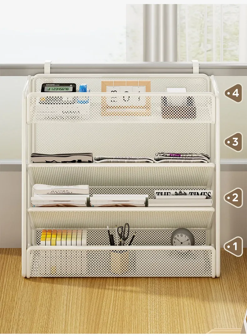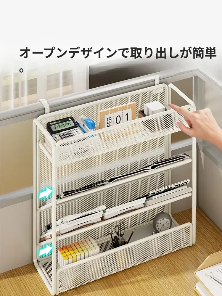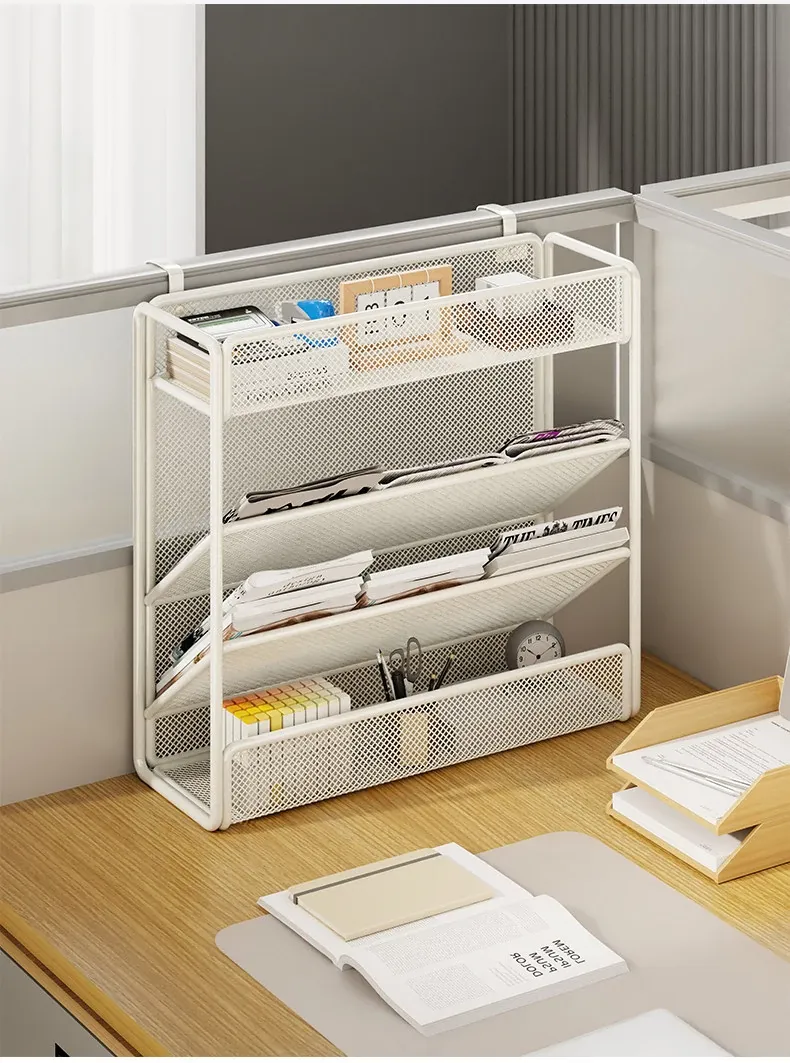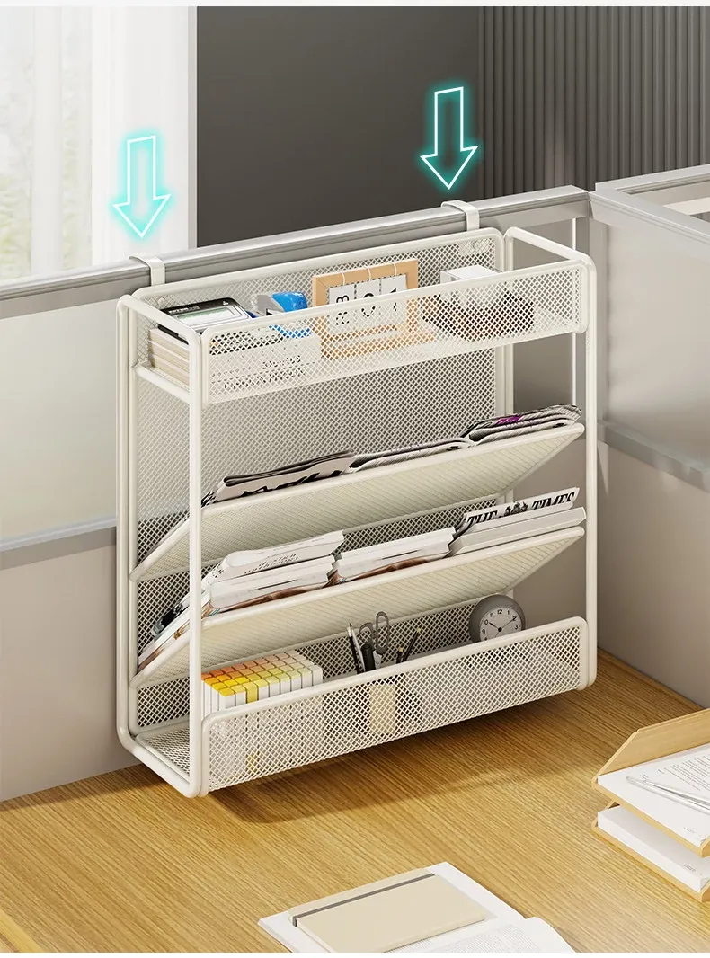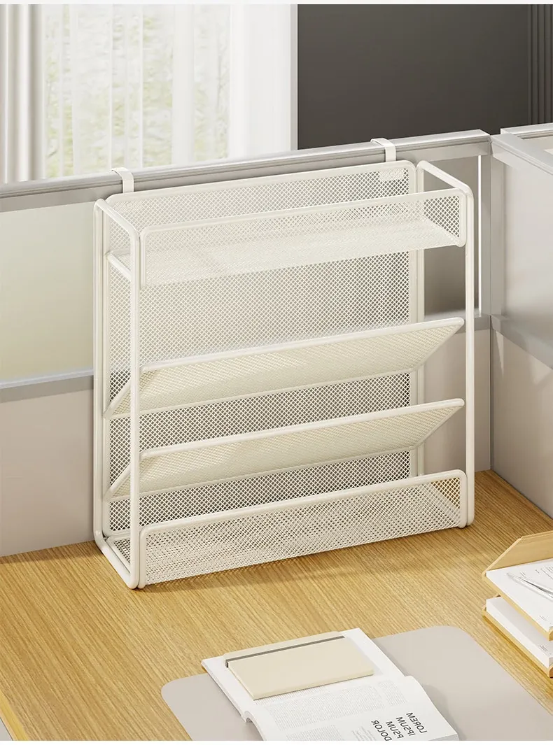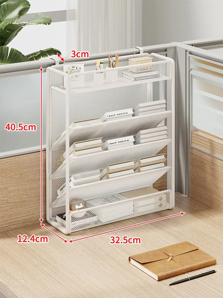 デスク上に取り付けられるファイルラック - 穴を開けずに簡単取り付け!斜めに収納できるオフィス用品整理アイテム。デスク周りの雑貨をスッキリ整頓し、作業効率をアップ!