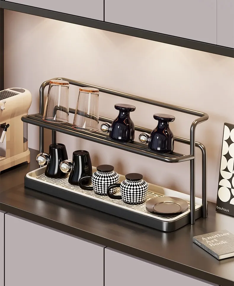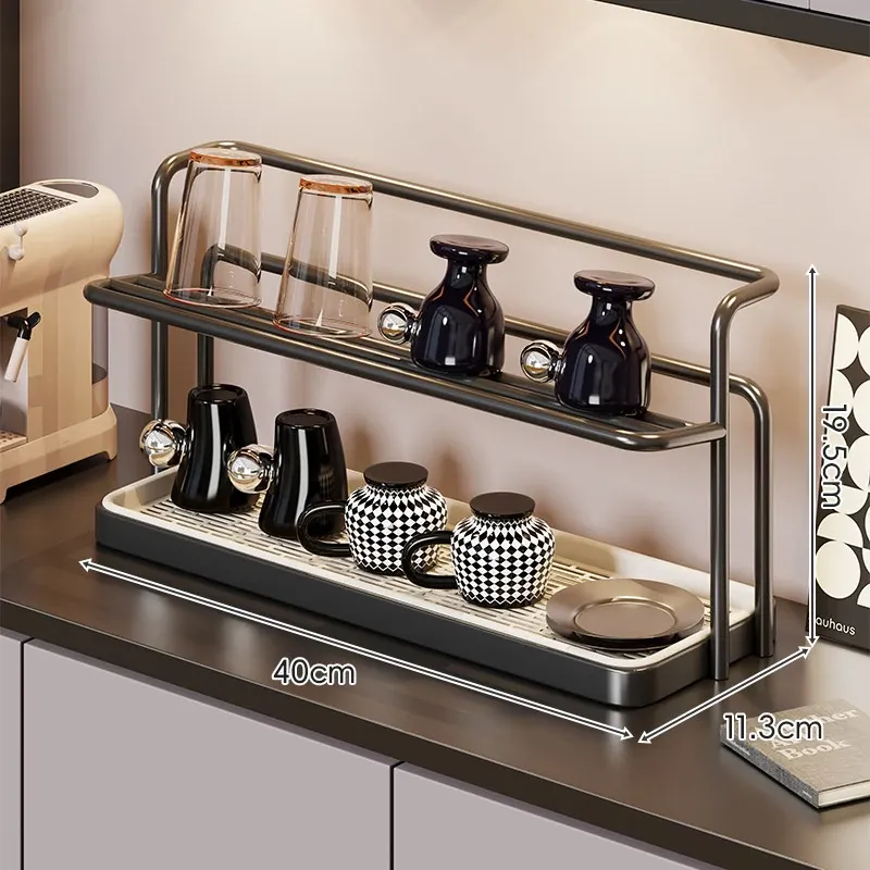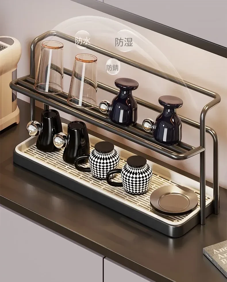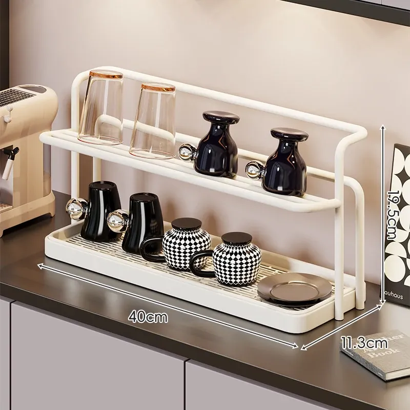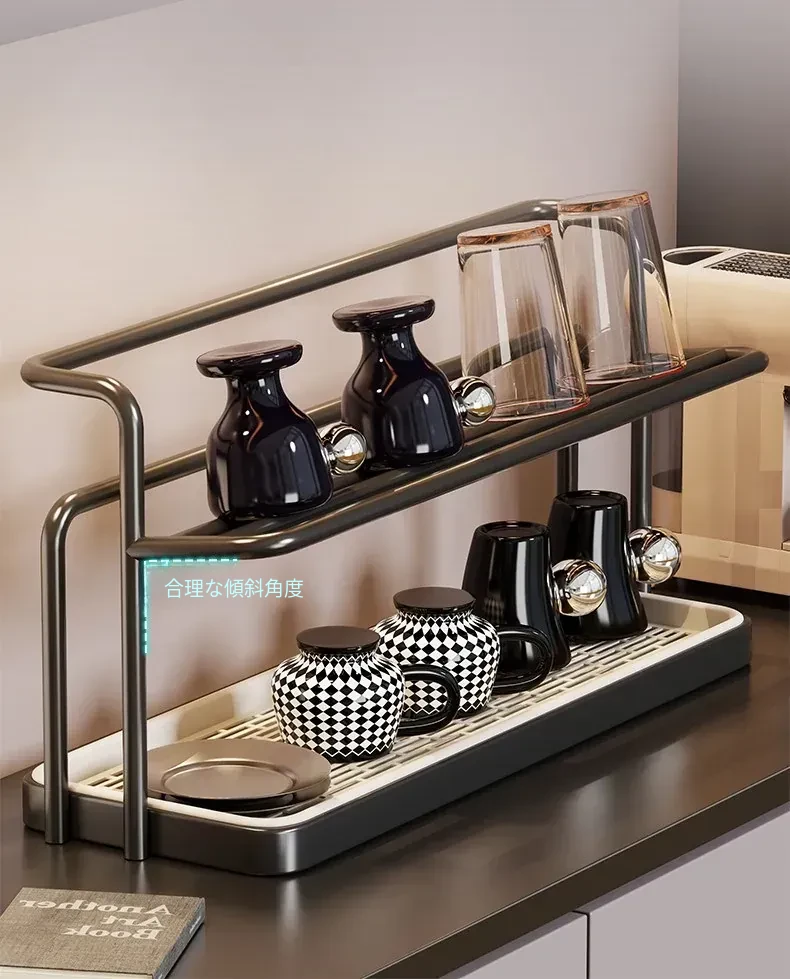 デスク用収納ラック - 水切り機能付き!ガラスコップやコーヒーカップをスマートに整理できる、ティーセットや水筒のための必須アイテム!おしゃれなデザインで、あなたのテーブルをすっきりさせる便利な収納ラック!