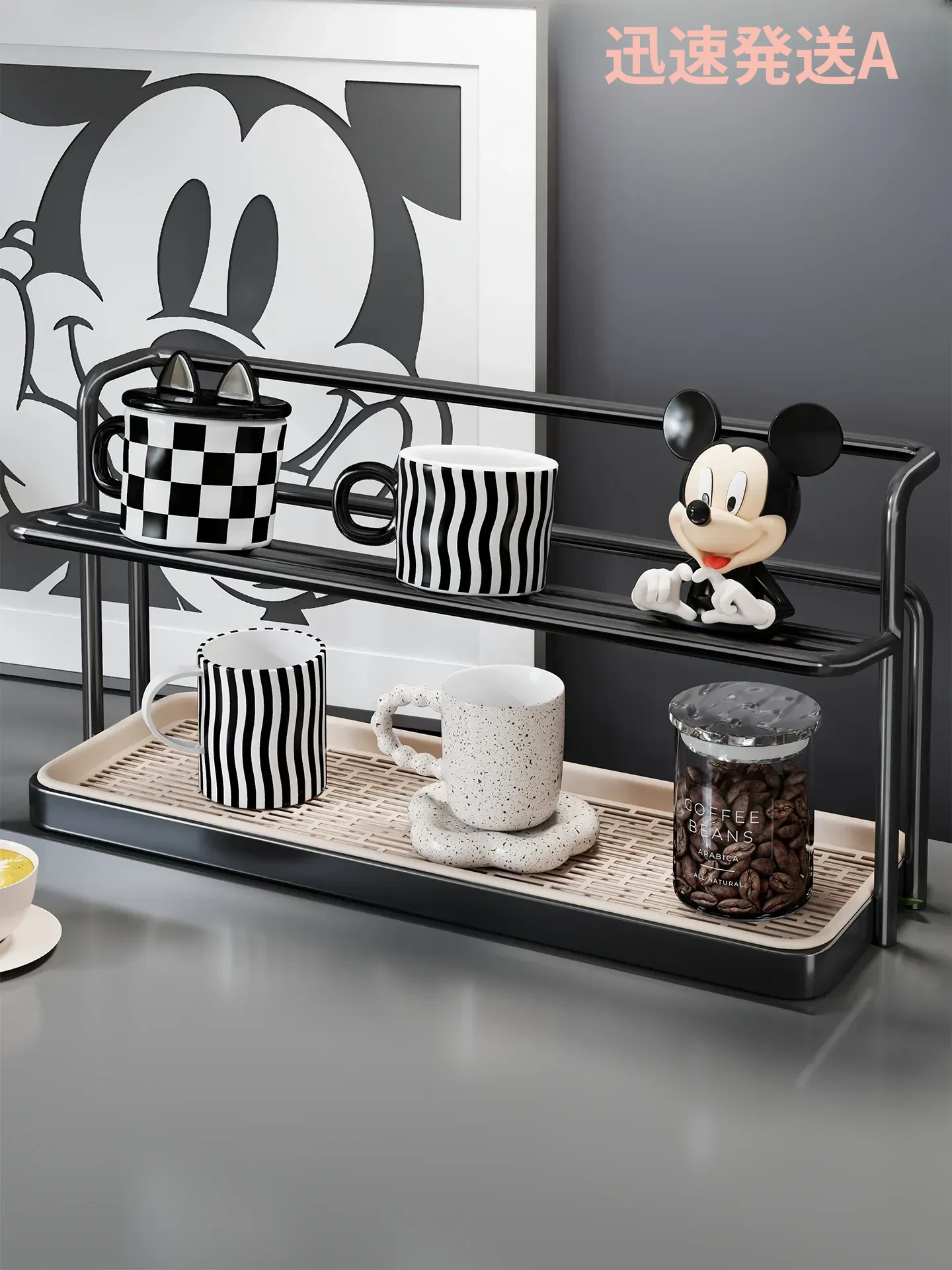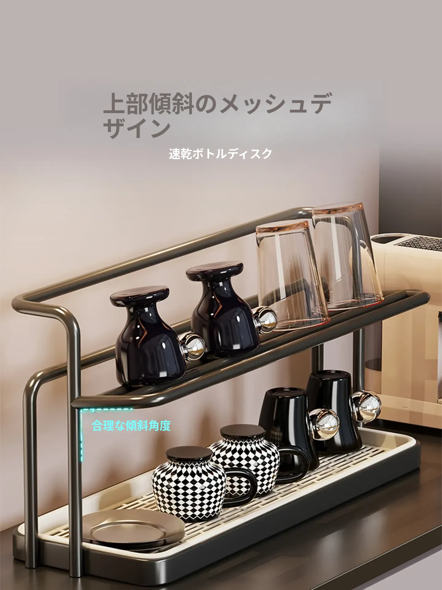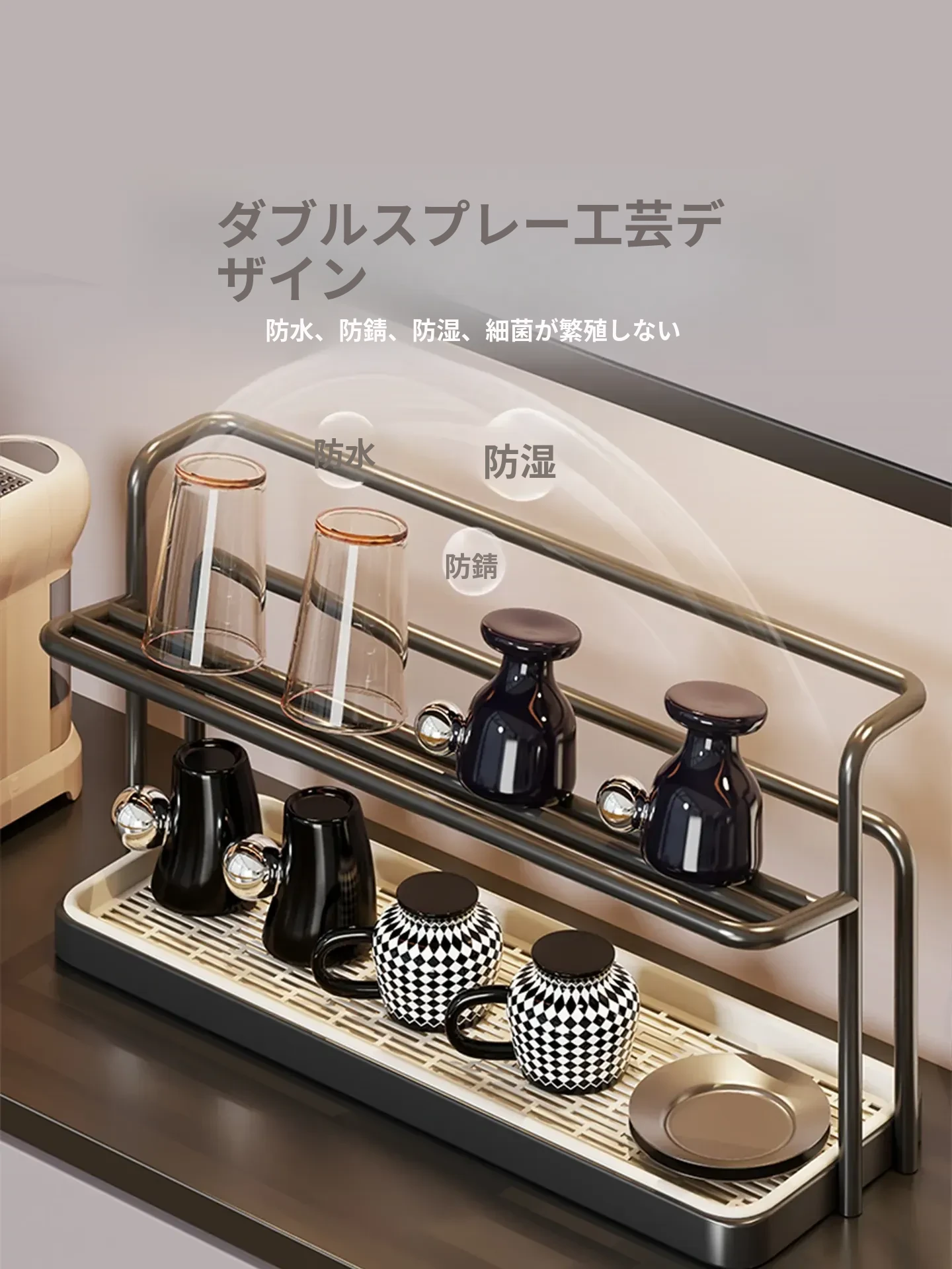 デスク用収納ラック - 水切り機能付き!ガラスコップやコーヒーカップをスマートに整理できる、ティーセットや水筒のための必須アイテム!おしゃれなデザインで、あなたのテーブルをすっきりさせる便利な収納ラック!