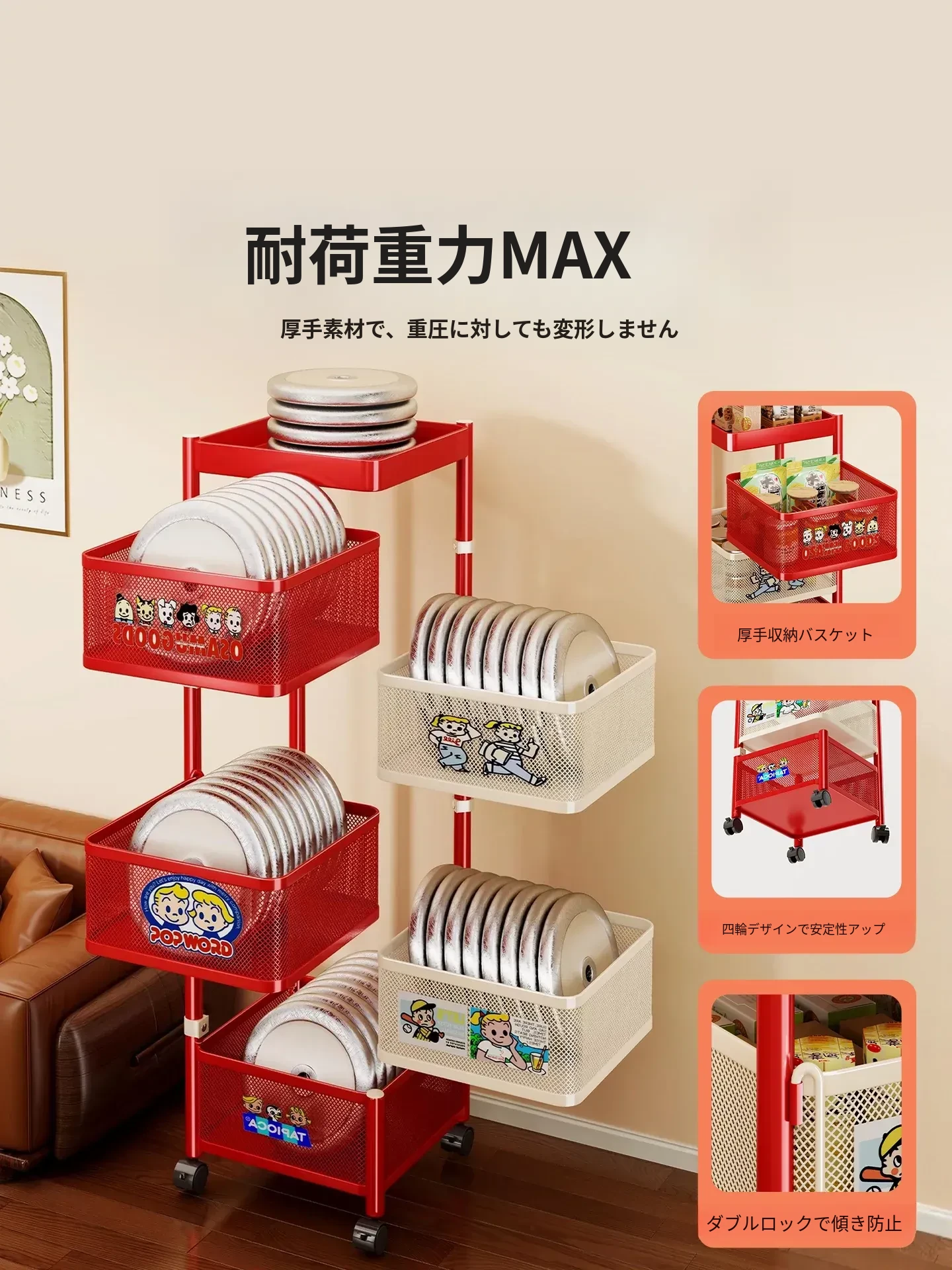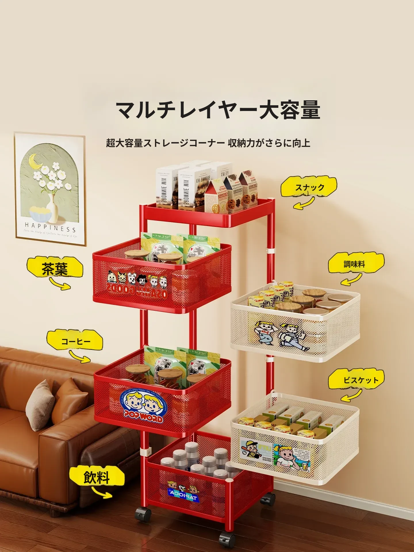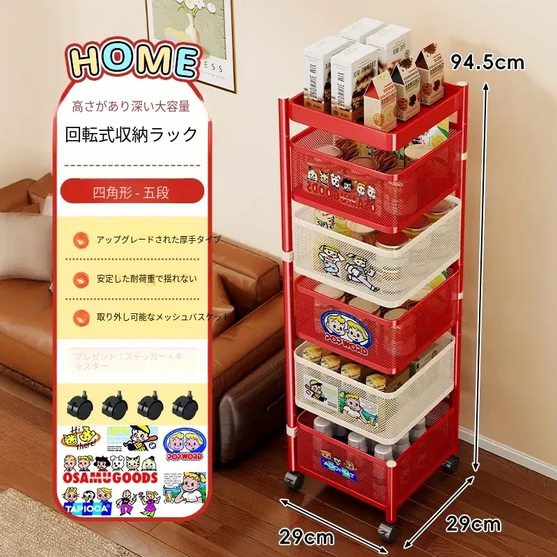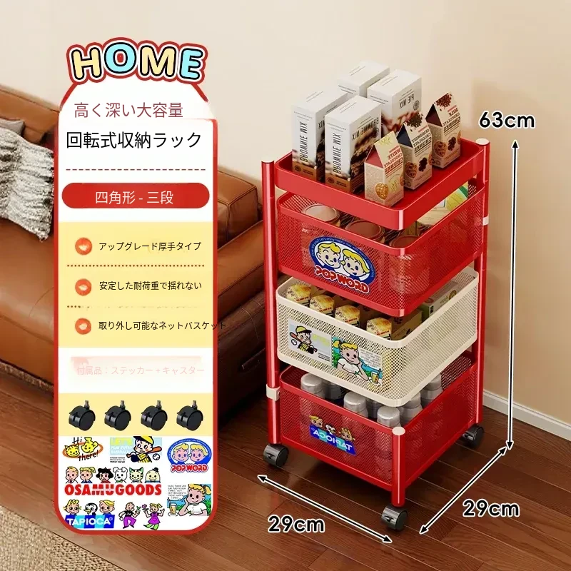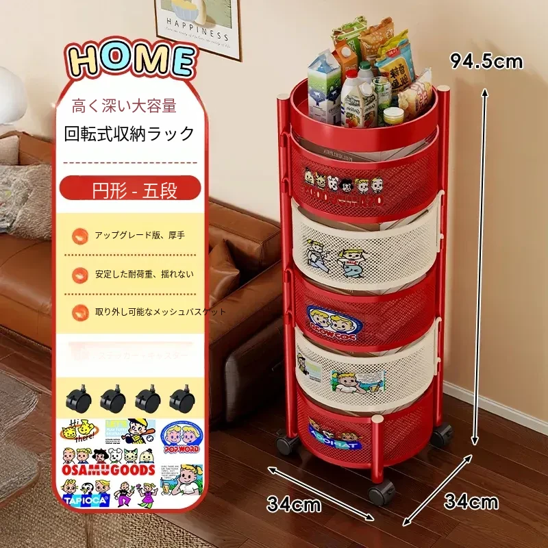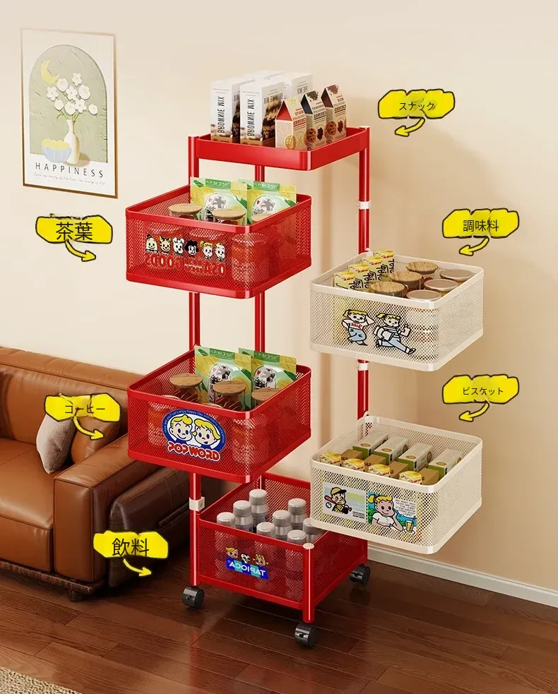 おしゃれなスナックカート - リビングで使える多機能回転収納ラック!家庭用移動式ストレージ、キッチンやリビングにぴったりの多層収納棚。お部屋をスッキリ整理して、毎日をもっと楽しく!