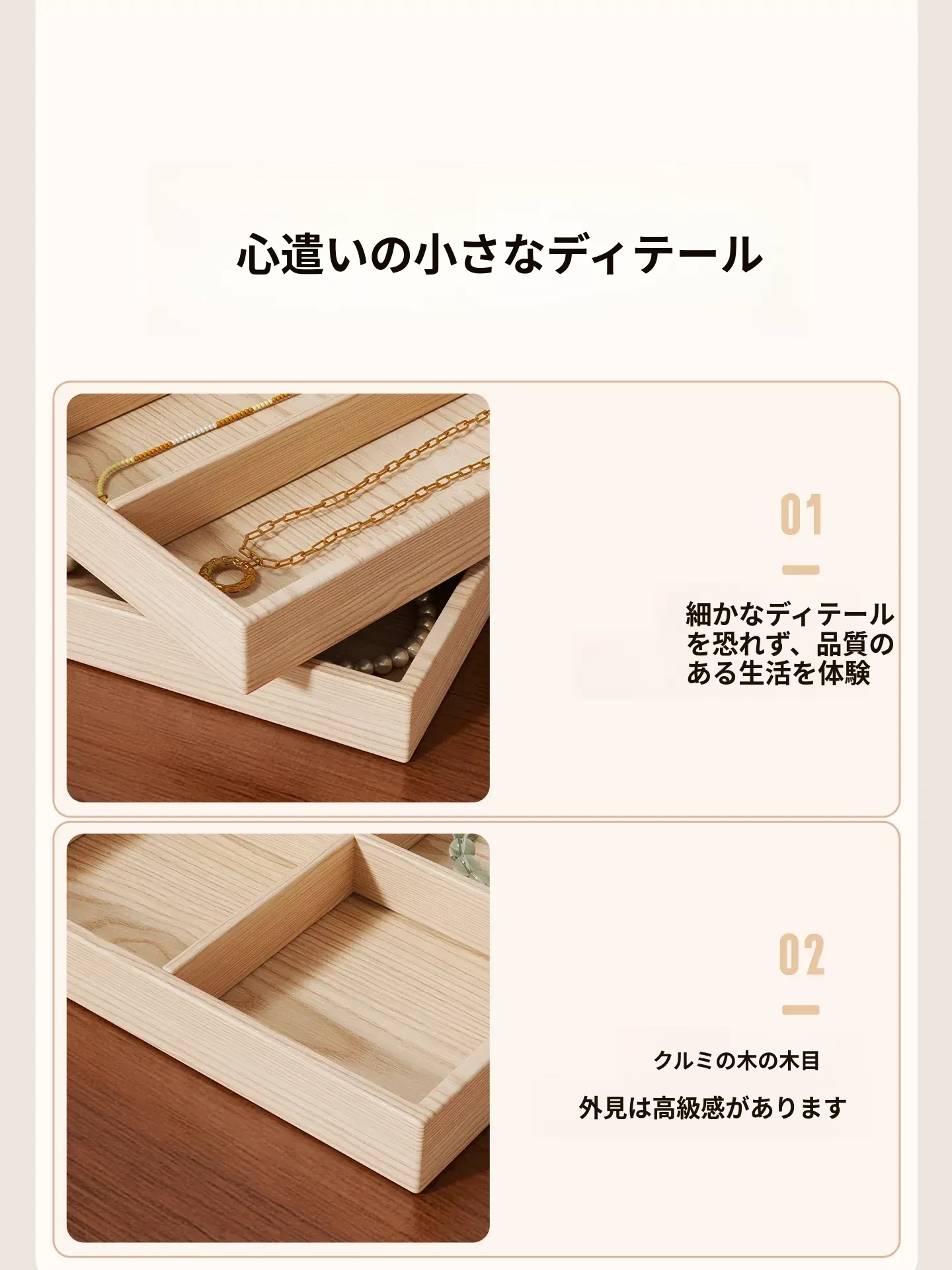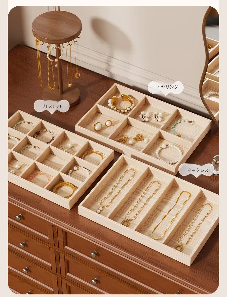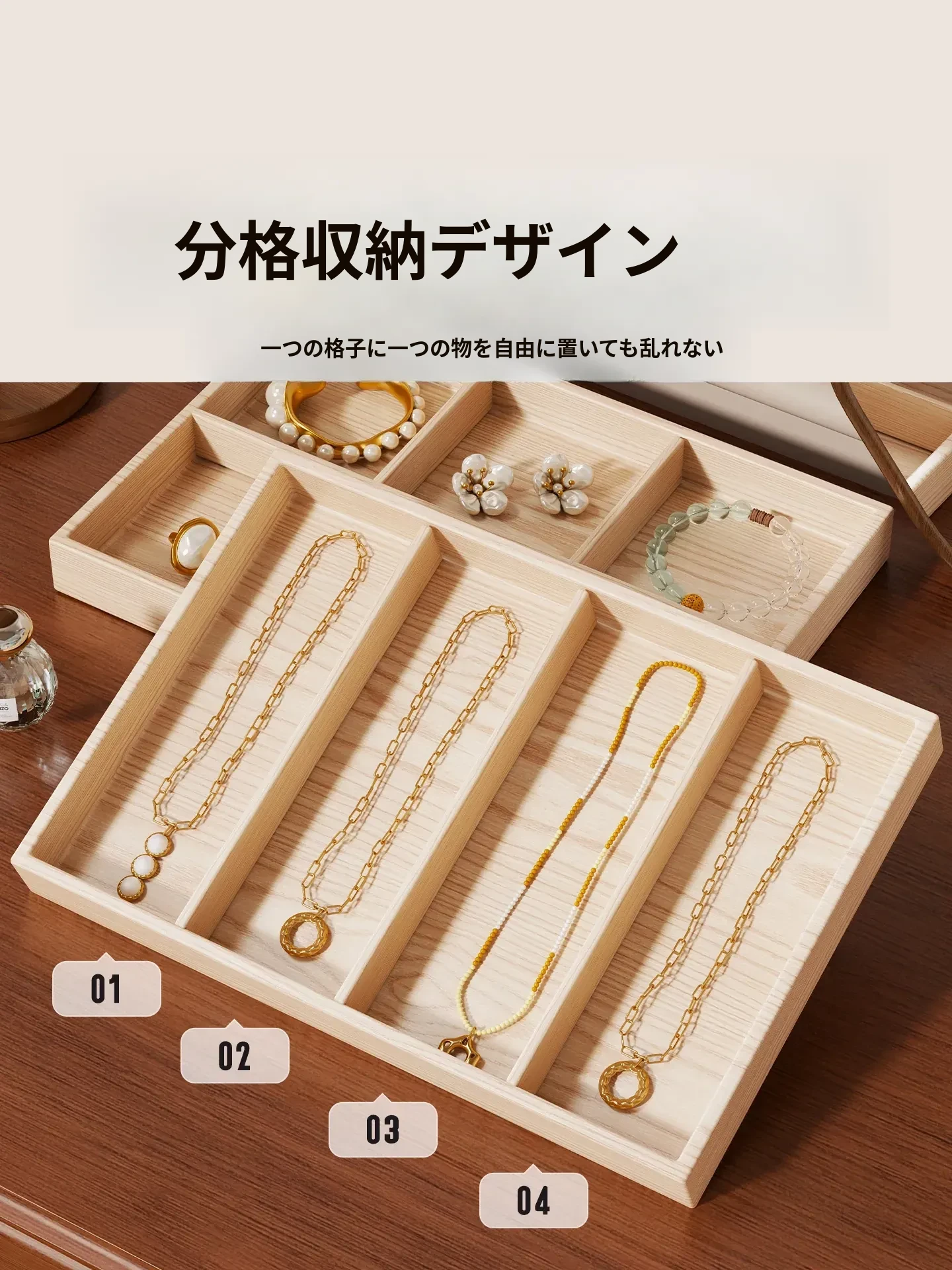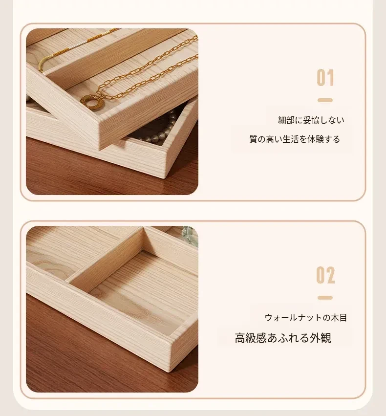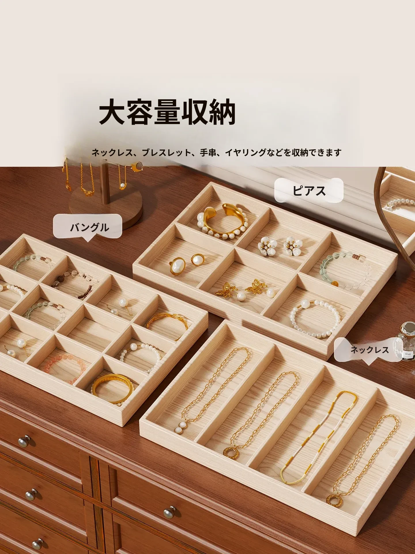 おしゃれなジュエリーボックス|デスクトップ用の木製アクセサリートレイ|引き出し付きで手串やネックレスを美しく整理・展示できる収納ラック!魅力的なデザインで、お部屋を華やかに彩ります。