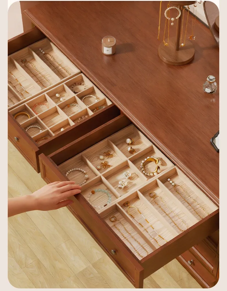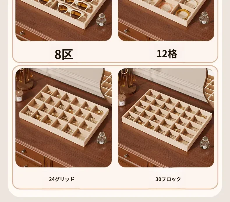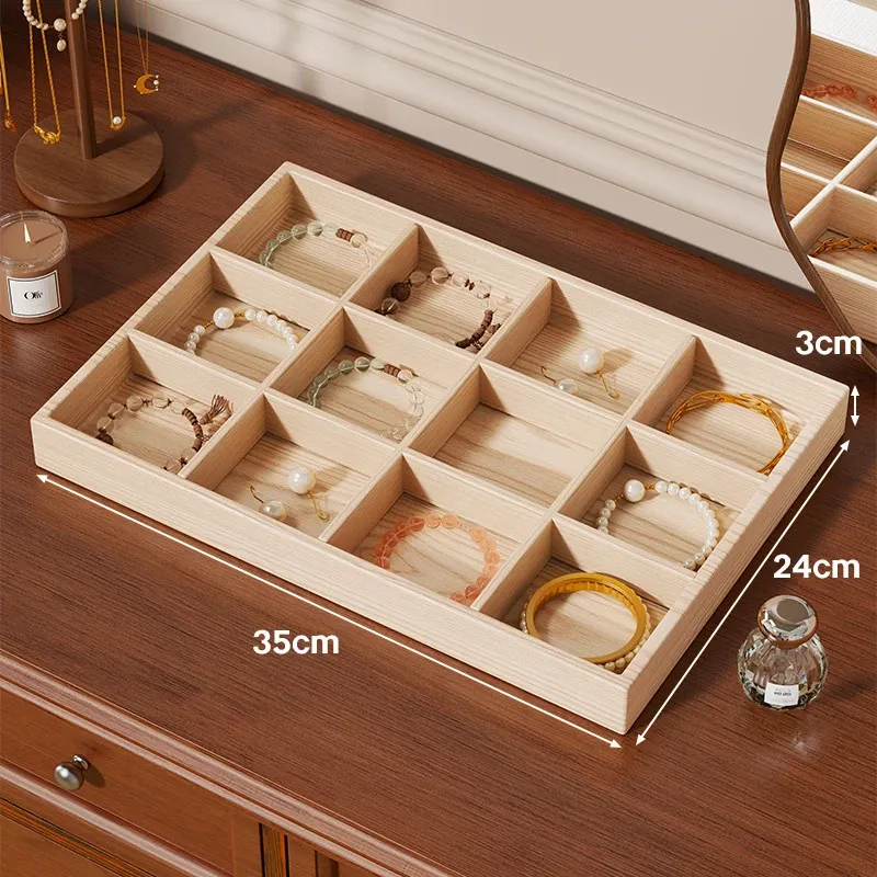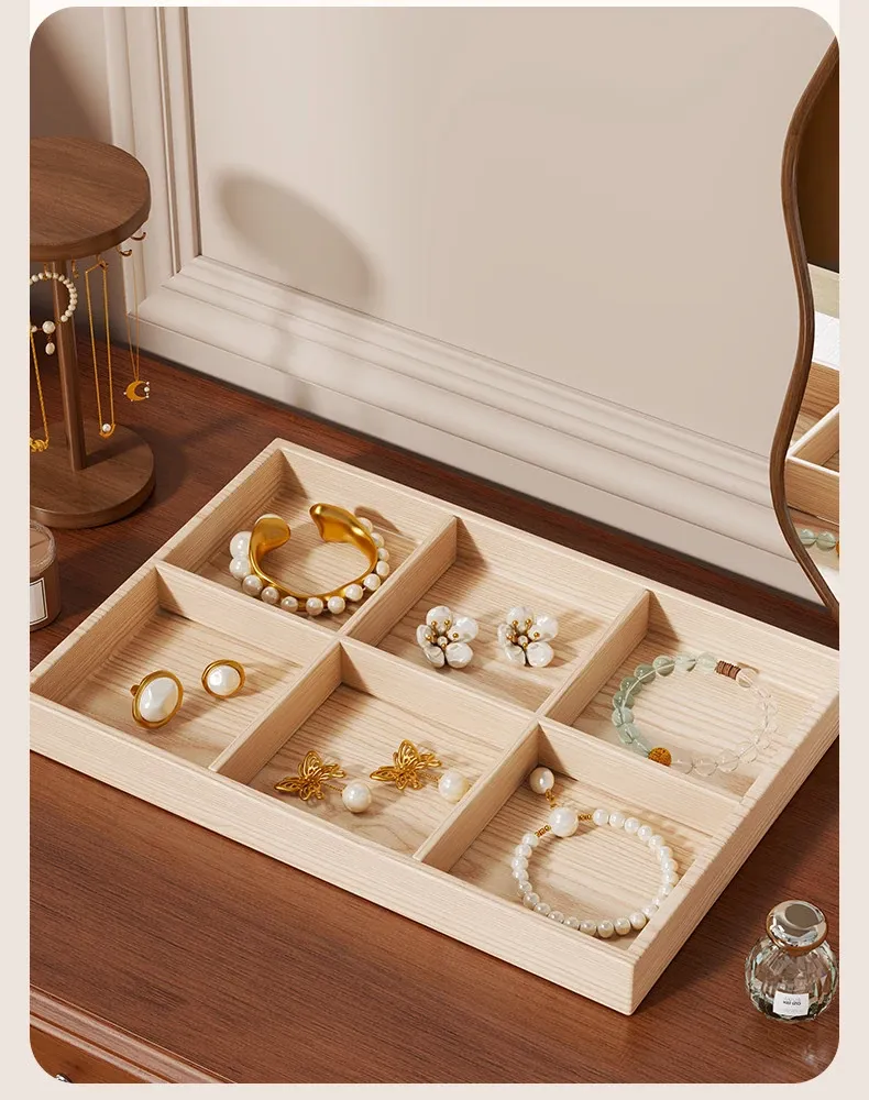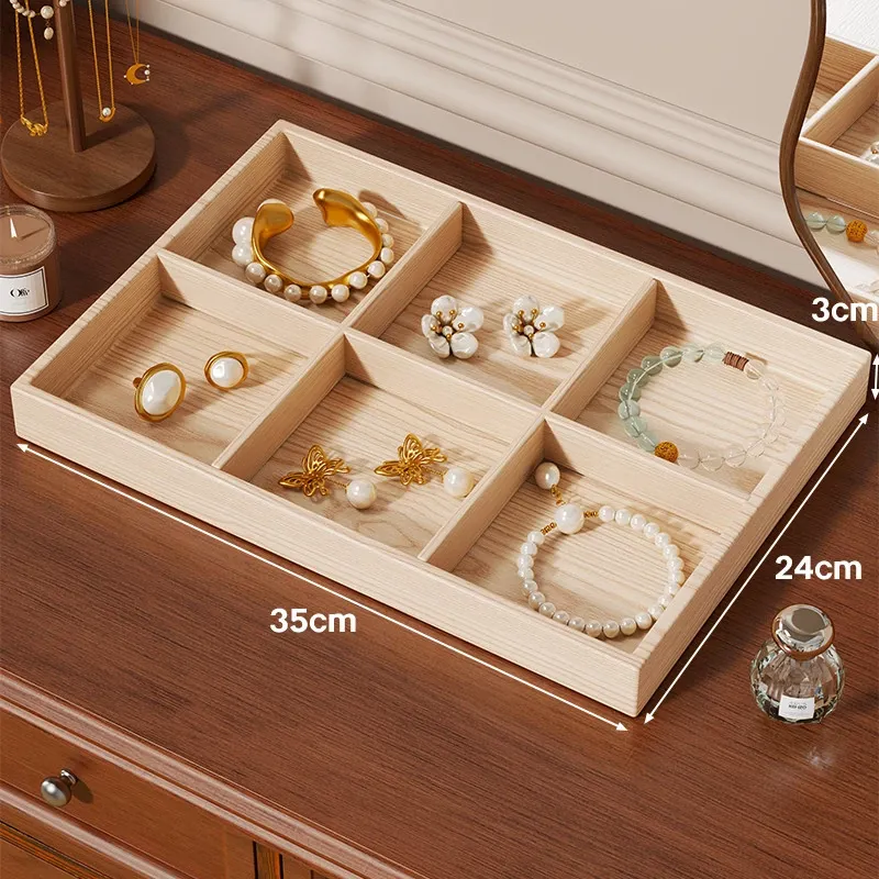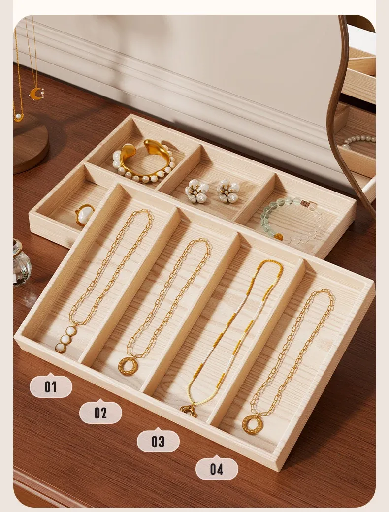 おしゃれなジュエリーボックス|デスクトップ用の木製アクセサリートレイ|引き出し付きで手串やネックレスを美しく整理・展示できる収納ラック!魅力的なデザインで、お部屋を華やかに彩ります。