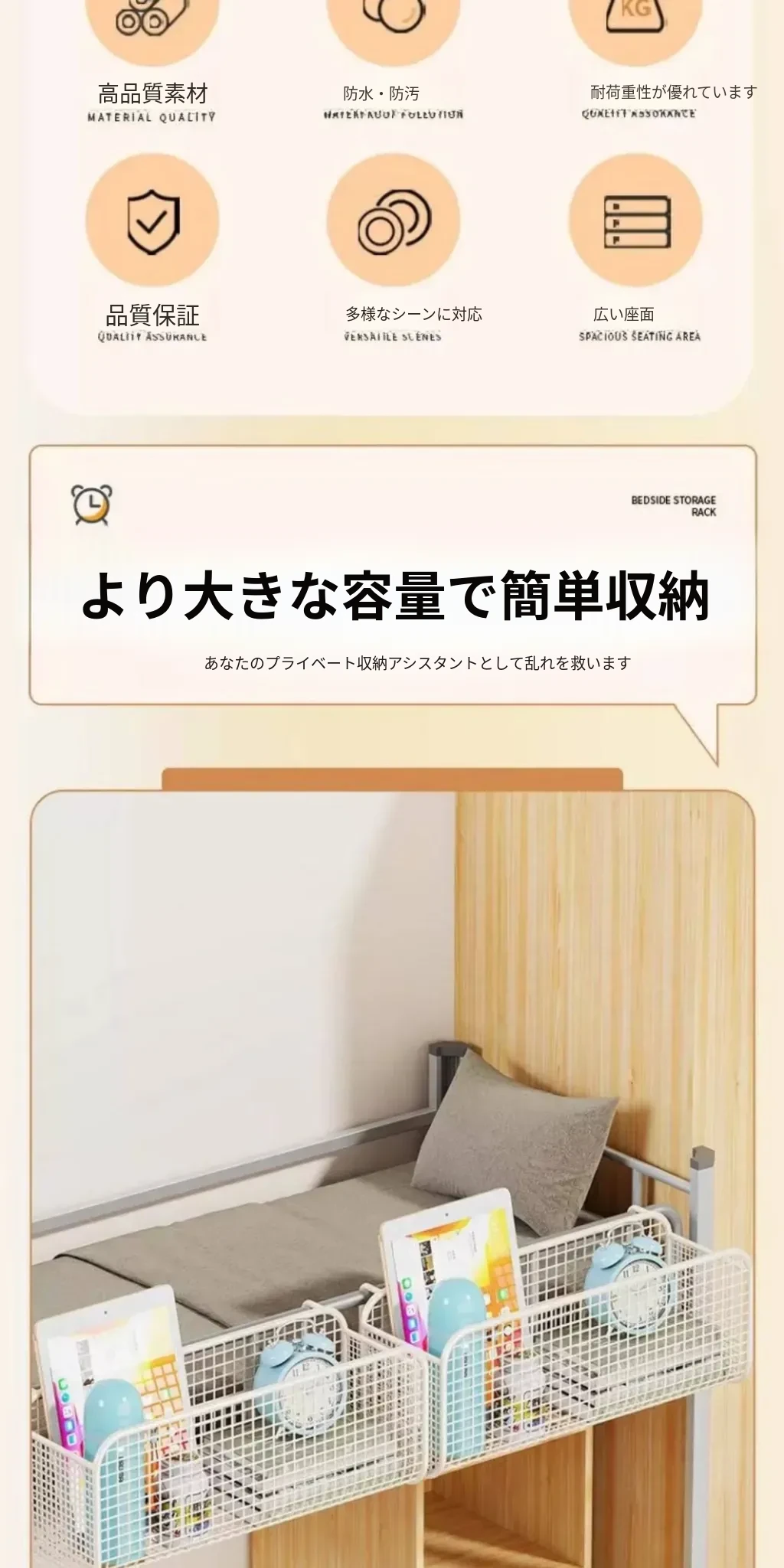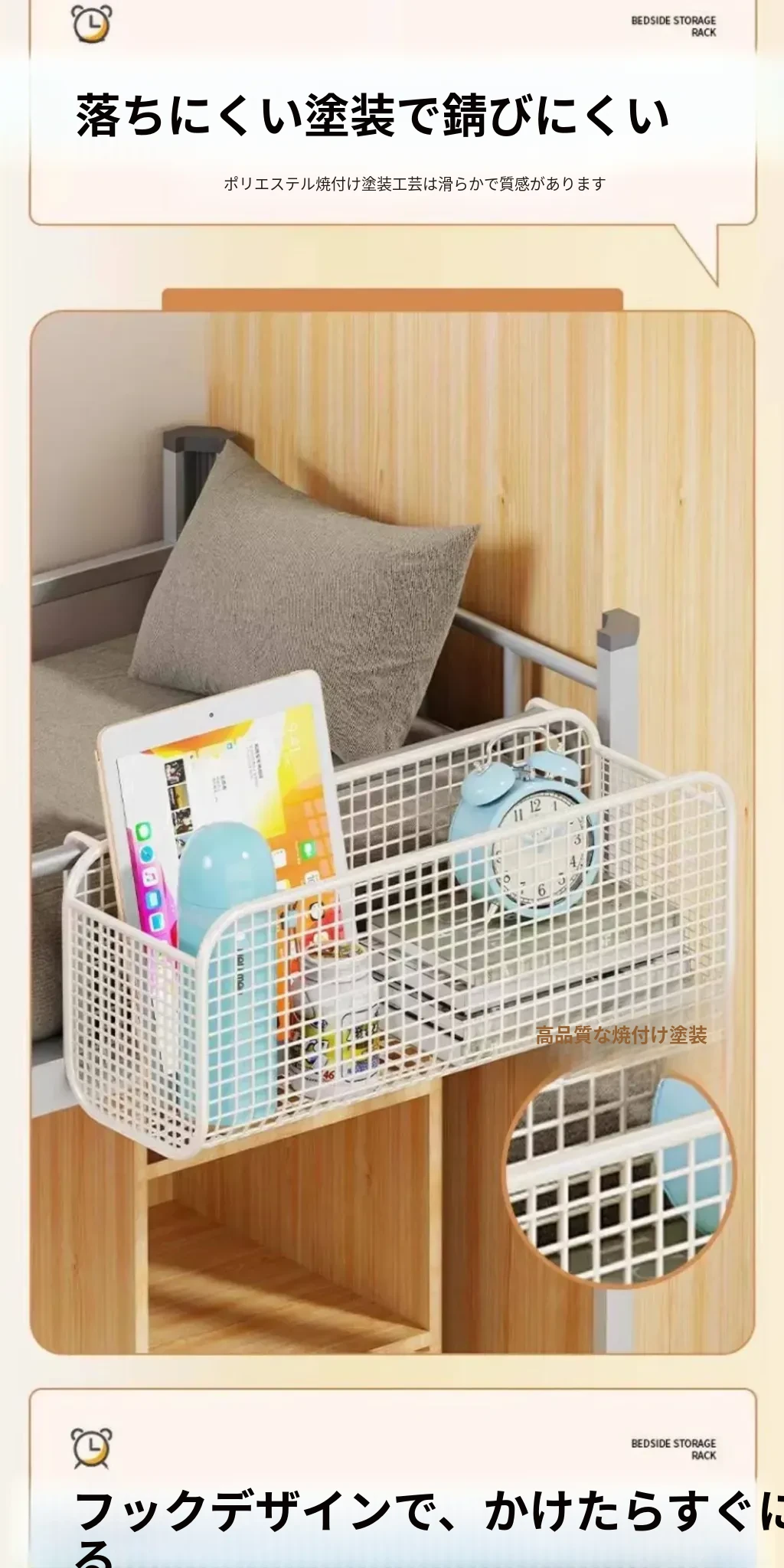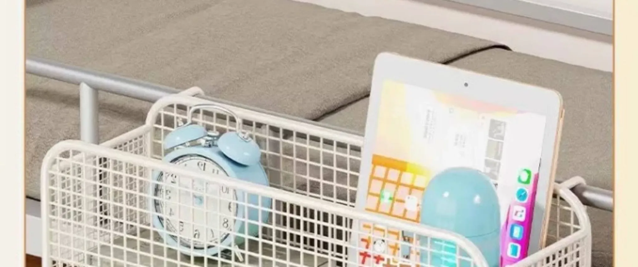 ベッドサイド収納ラック - おしゃれで便利なスナックハンガー!寮生活に必須のアイテム、ベッドの上でスペースを有効活用する小型掛け式ラックです。快適な空間を演出し、整理整頓も簡単!