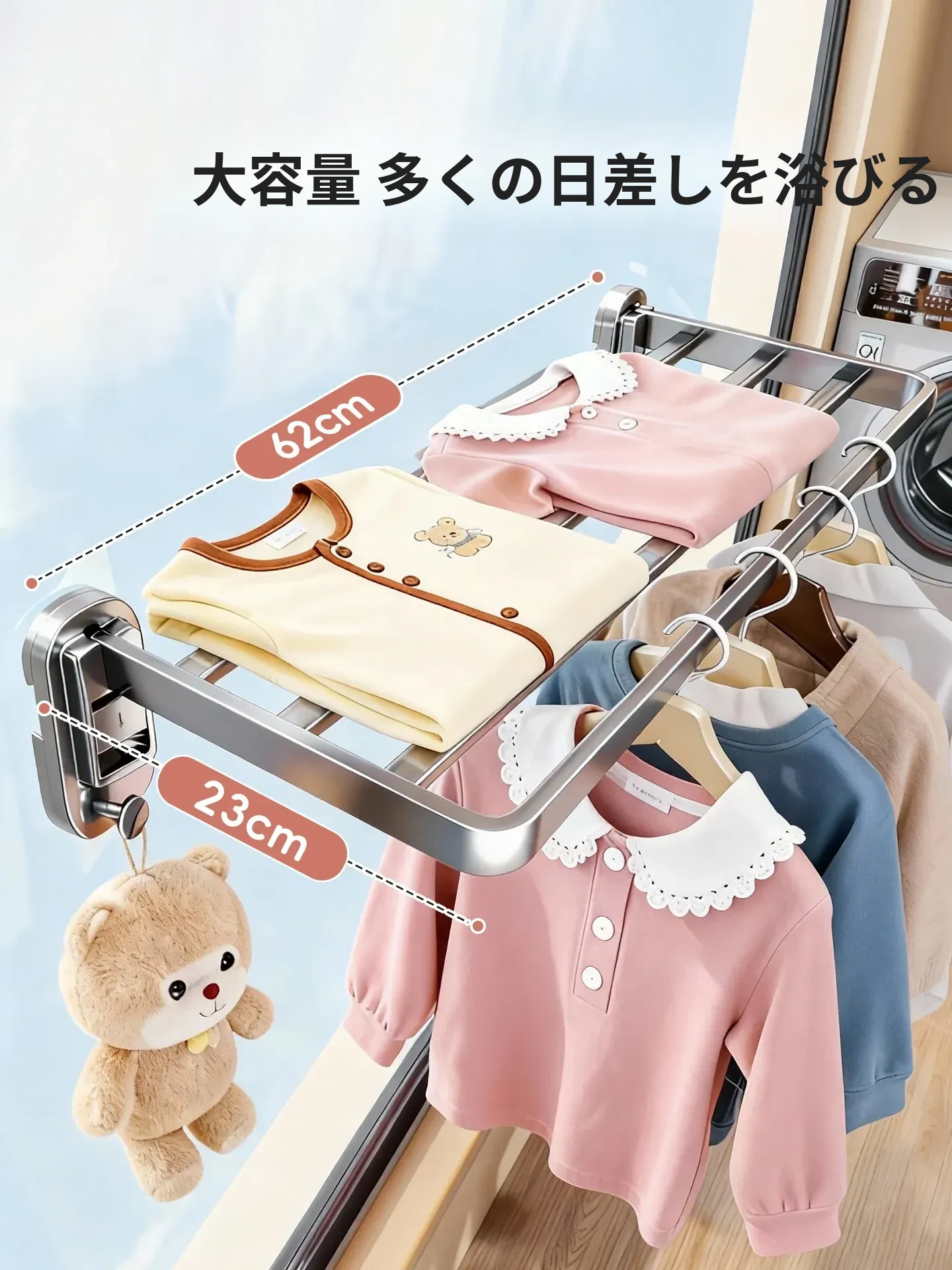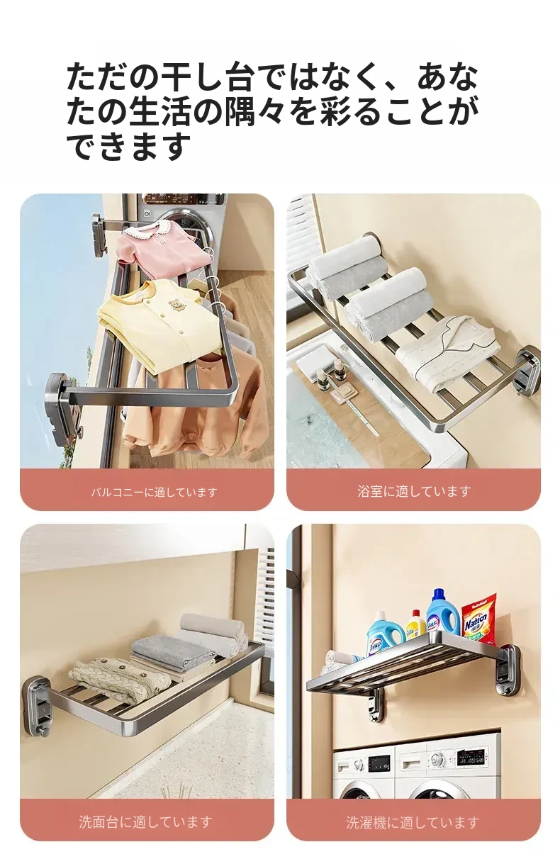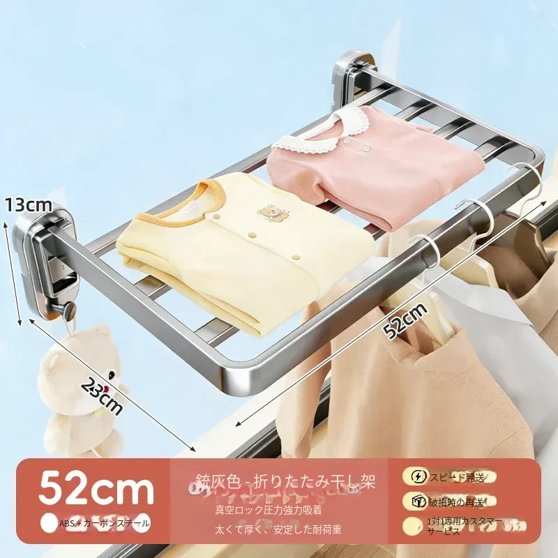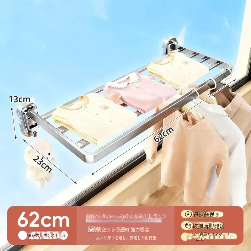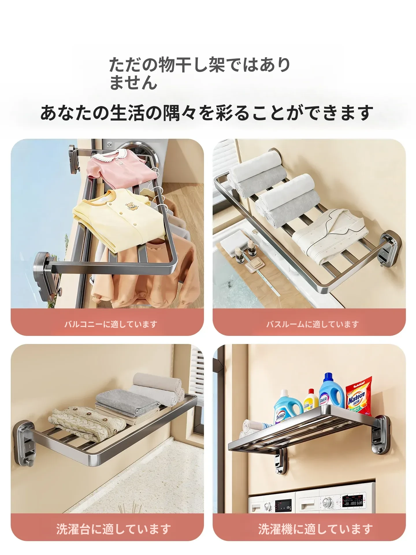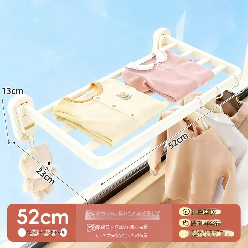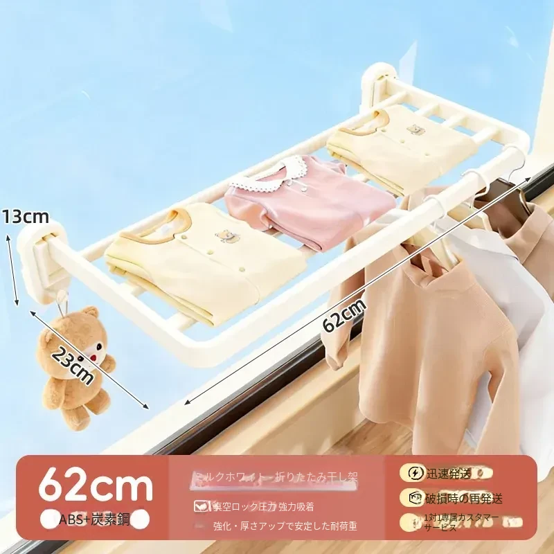 バルコニー専用!穴あけ不要の折りたたみ式衣類乾燥ラック。吸盤式でしっかり固定、便利で省スペースな衣類ハンガー。家庭用に最適な洗濯物干しの必需品!