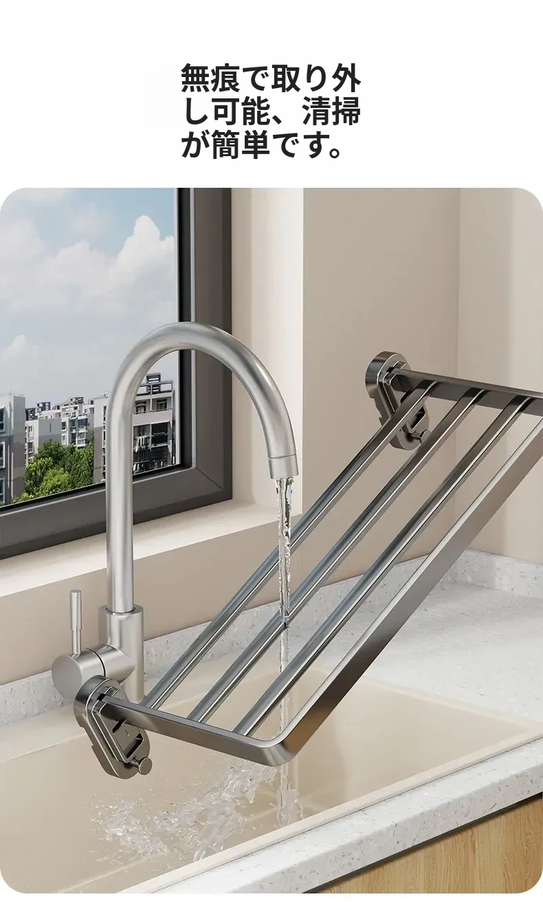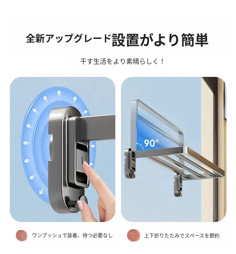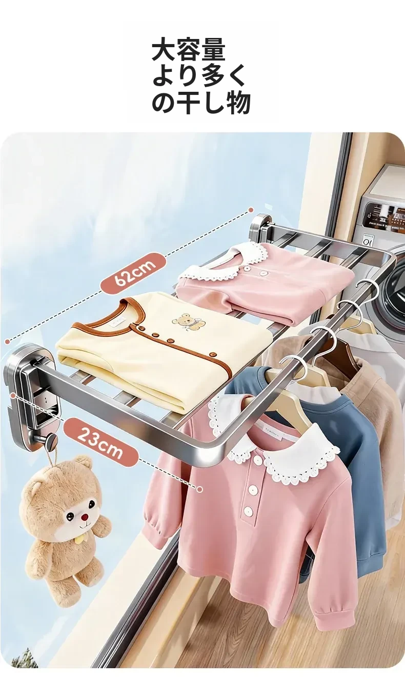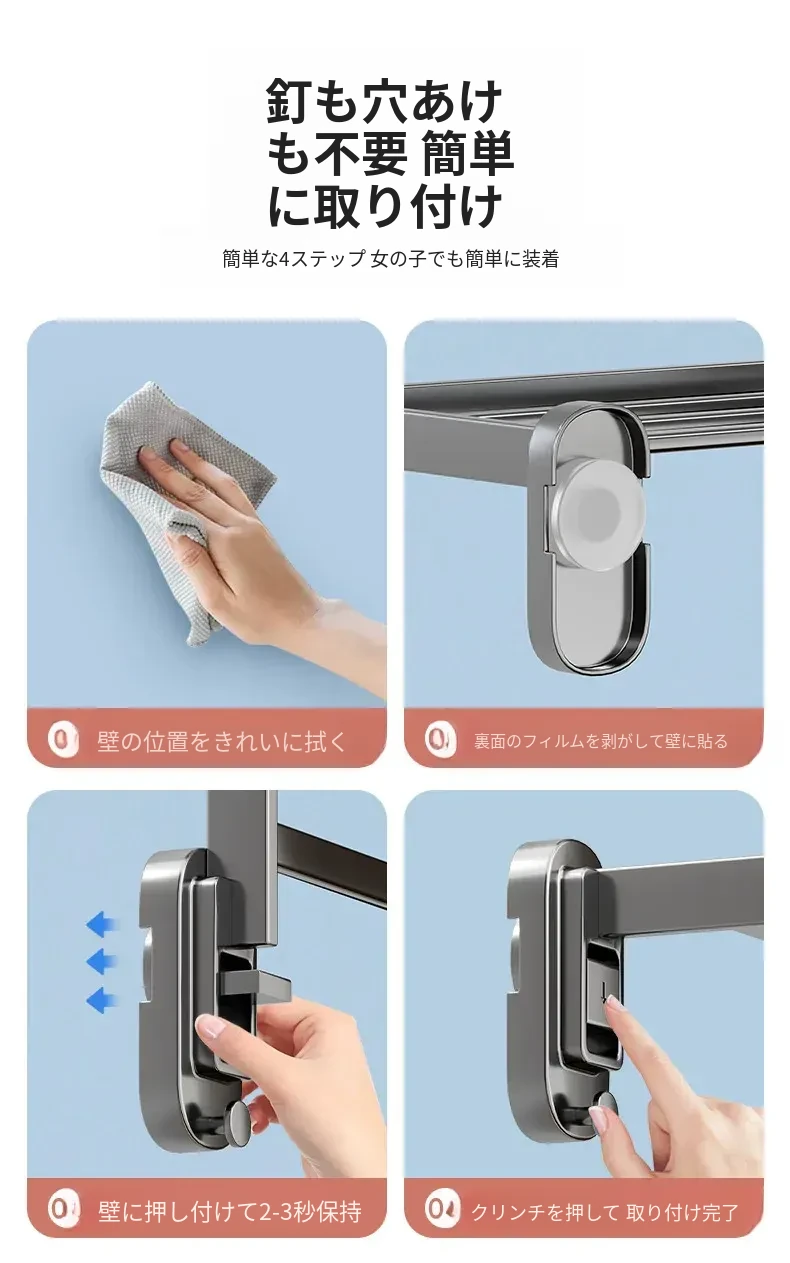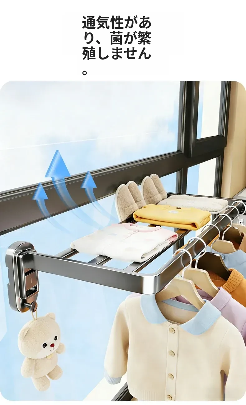 バルコニー専用!穴あけ不要の折りたたみ式衣類乾燥ラック。吸盤式でしっかり固定、便利で省スペースな衣類ハンガー。家庭用に最適な洗濯物干しの必需品!