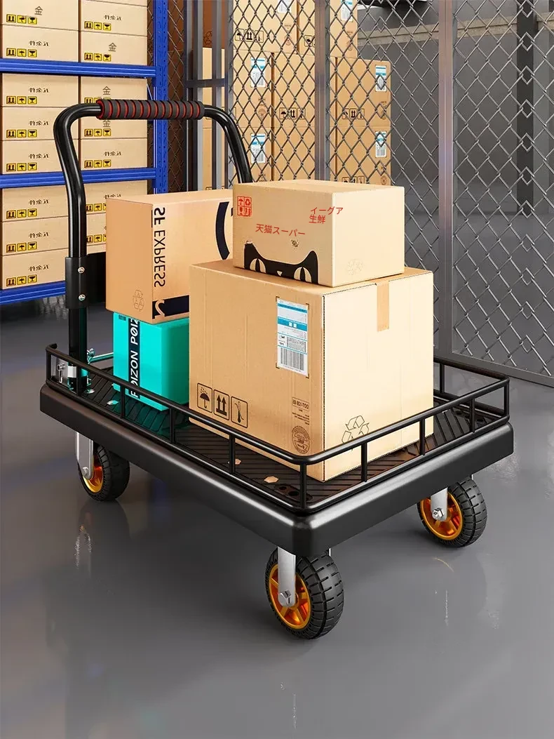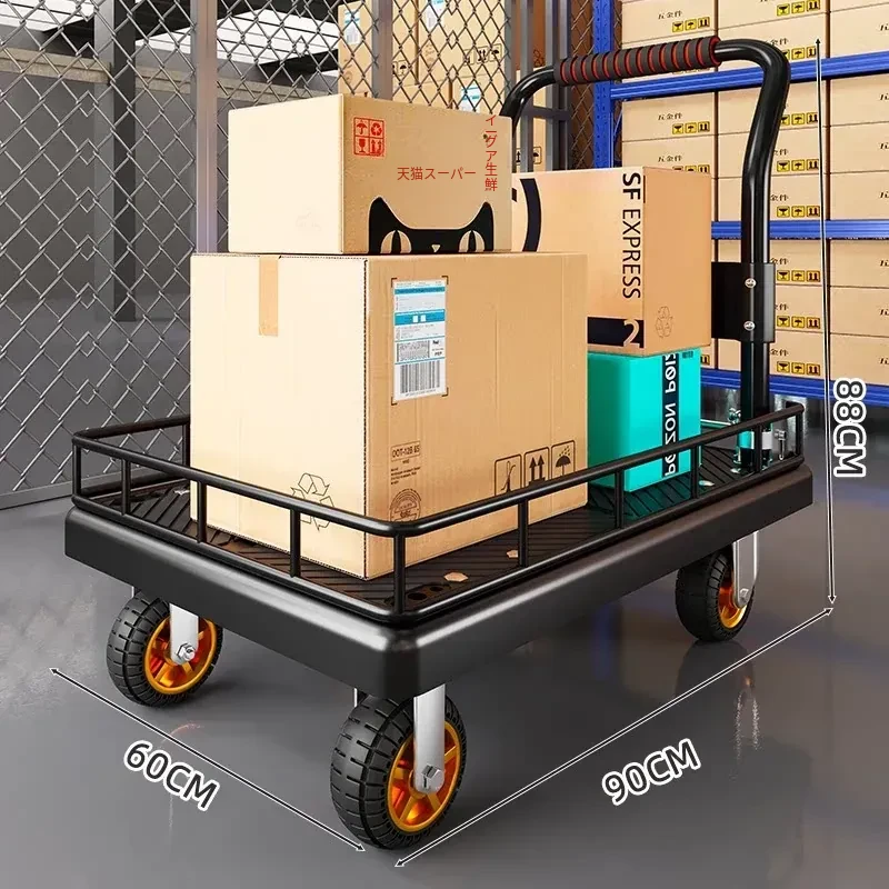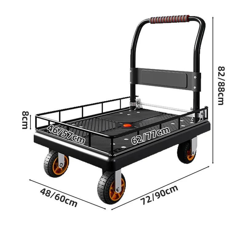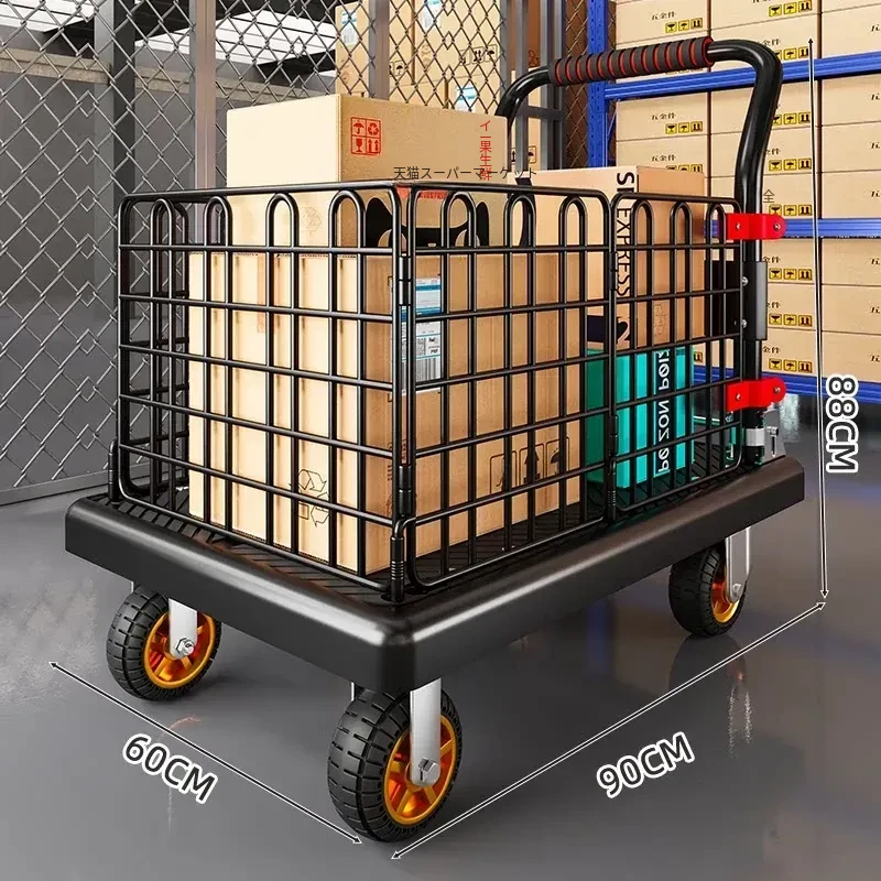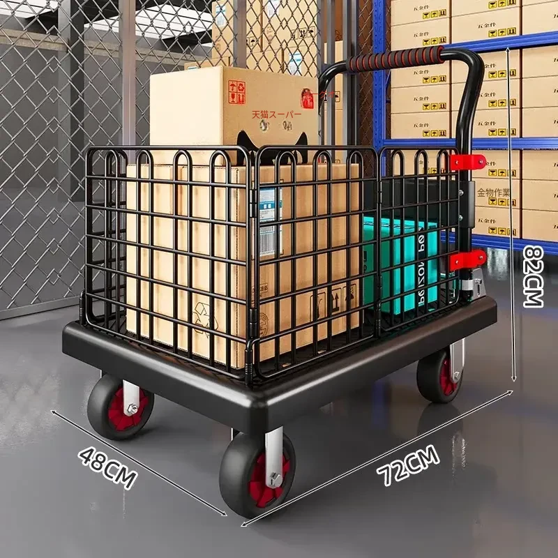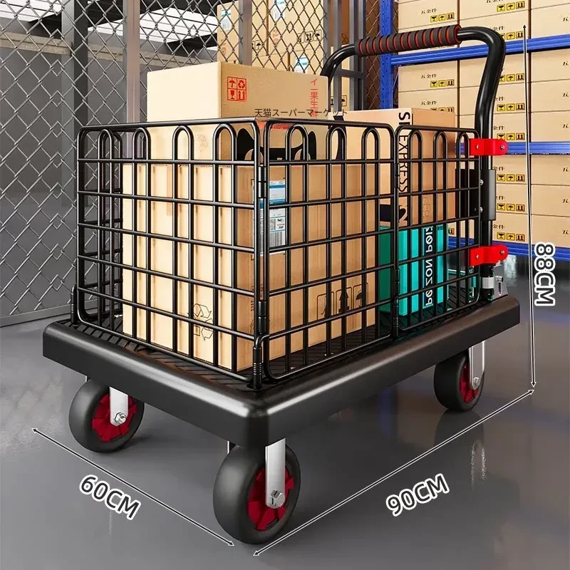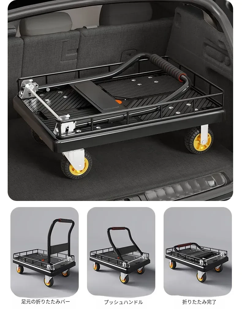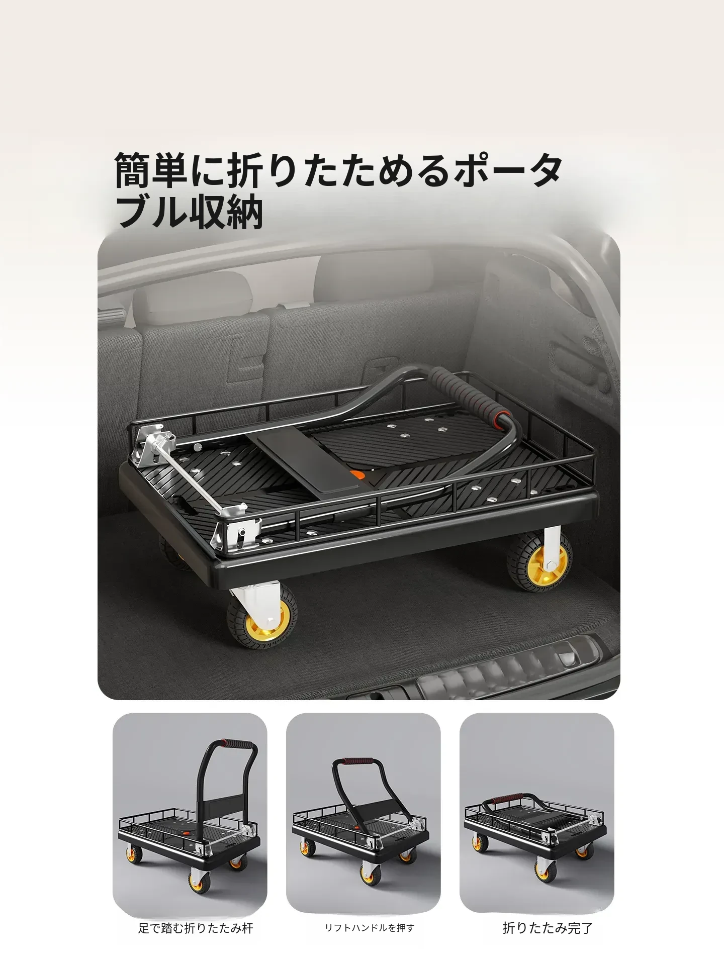 家庭用折りたたみ式手押しカート - 便利な荷物運搬・配送用!囲い付きで安全・安心。コンパクトに収納できるので、持ち運びもラクラク!お買い物や引っ越しに最適です!