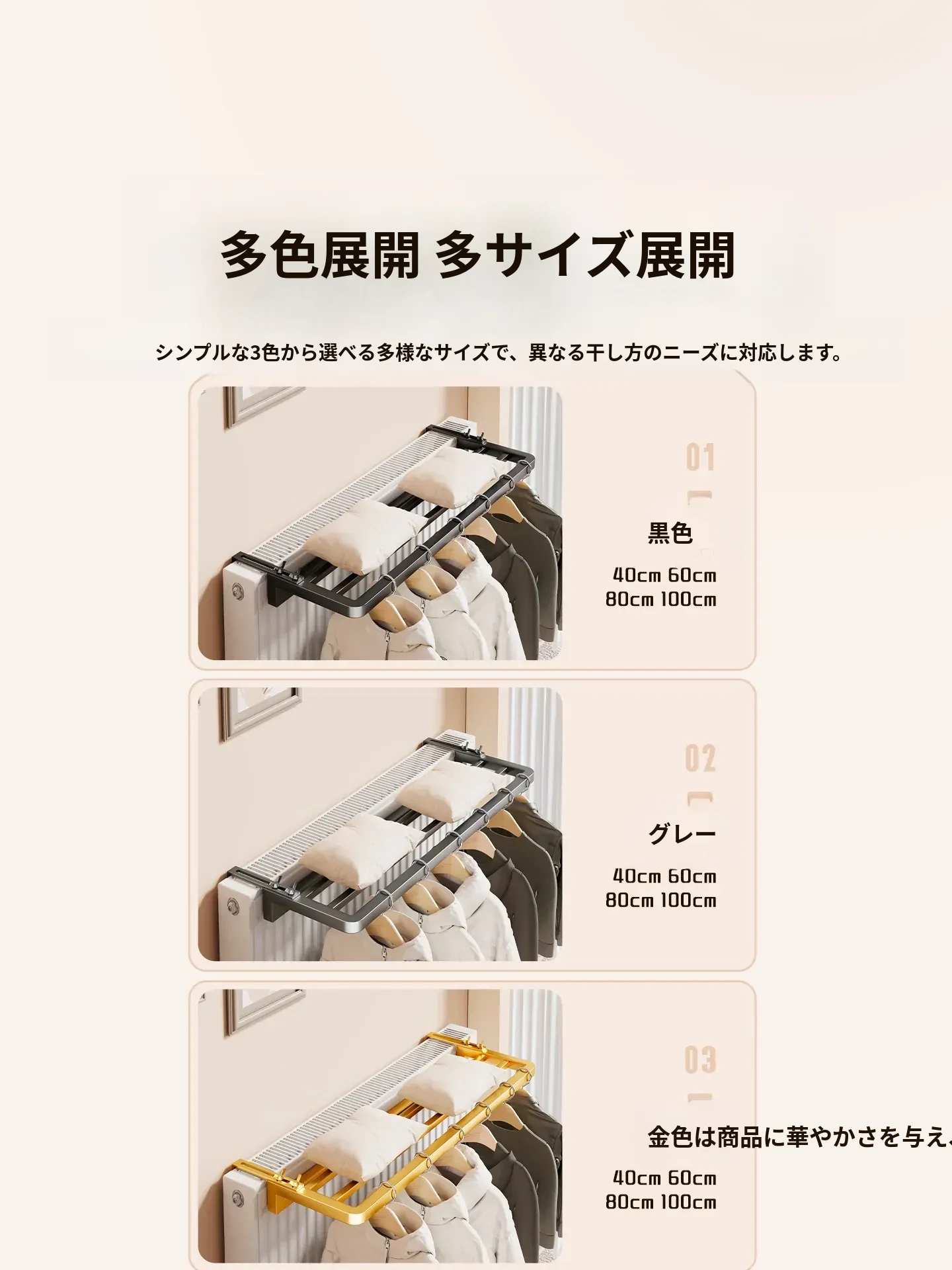 暖房用衣類乾燥ラック - 暖房パイプに取り付けるだけで、衣類を素早く乾燥!省スペースで収納もできる便利なアイテム。お家の暖房を活かして、快適な生活を実現!
