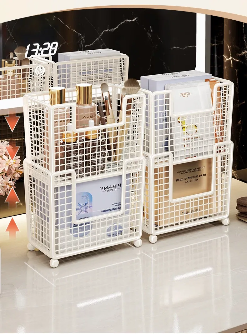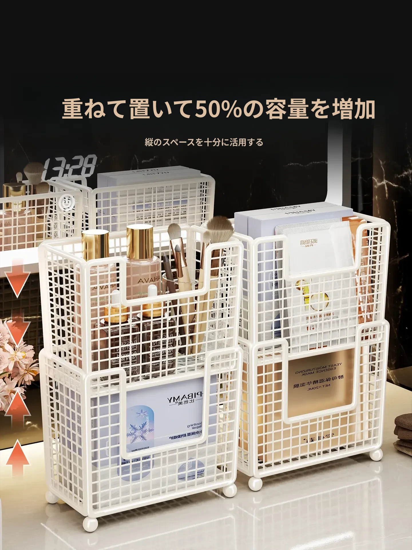 大容量多層メイクアップ収納ボックス!デスクトップミラー付きで、スキンケア製品やリップスティックをすっきり整頓。化粧品の収納に最適なオーガナイザーです!