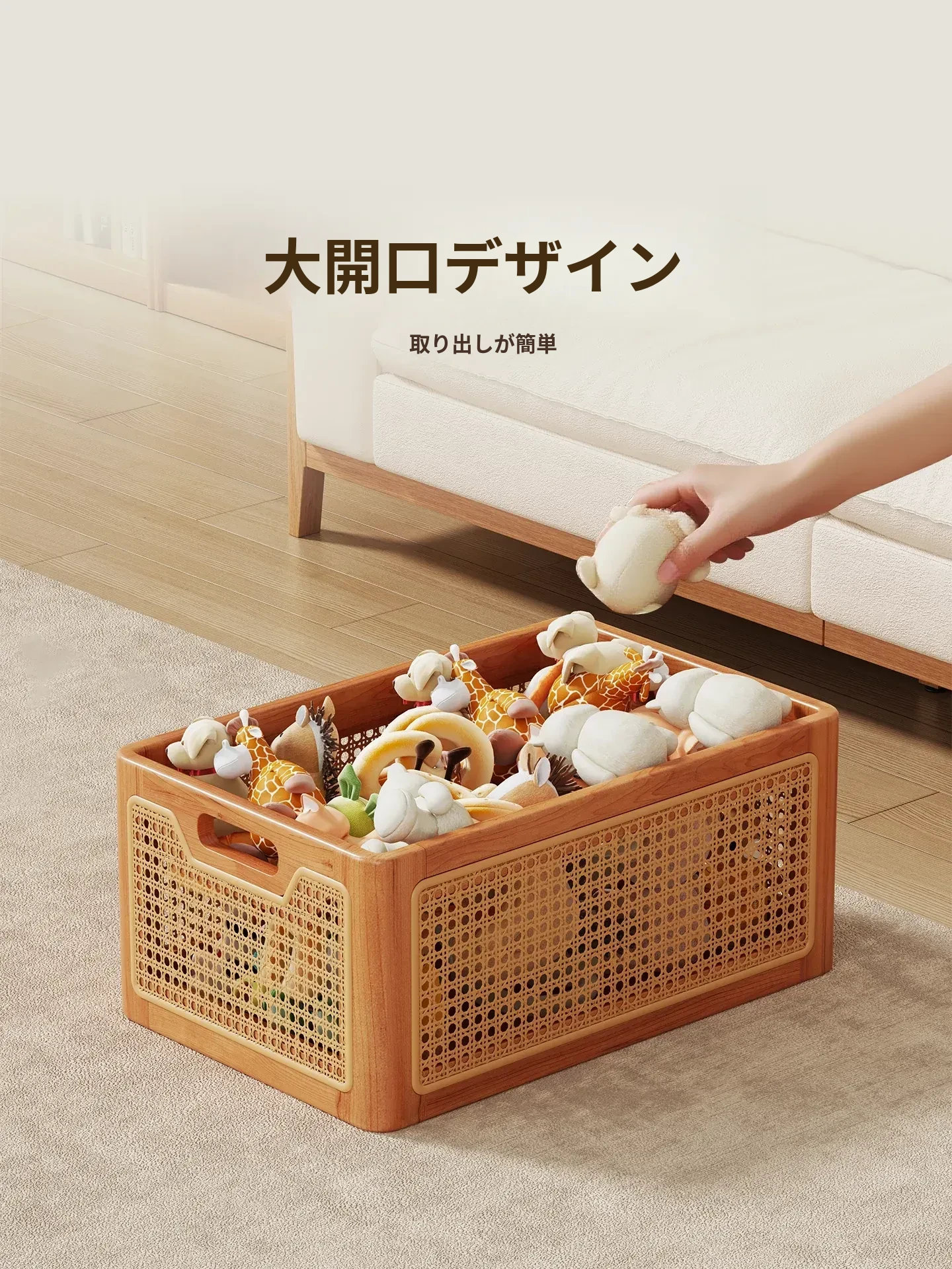 天然木製のおもちゃ収納ボックス|家庭用の衣類整理箱|大容量でお菓子のストックにも最適な収納ラック|シンプルでおしゃれなデザインで、リビングや子供部屋にぴったり!