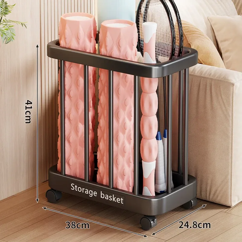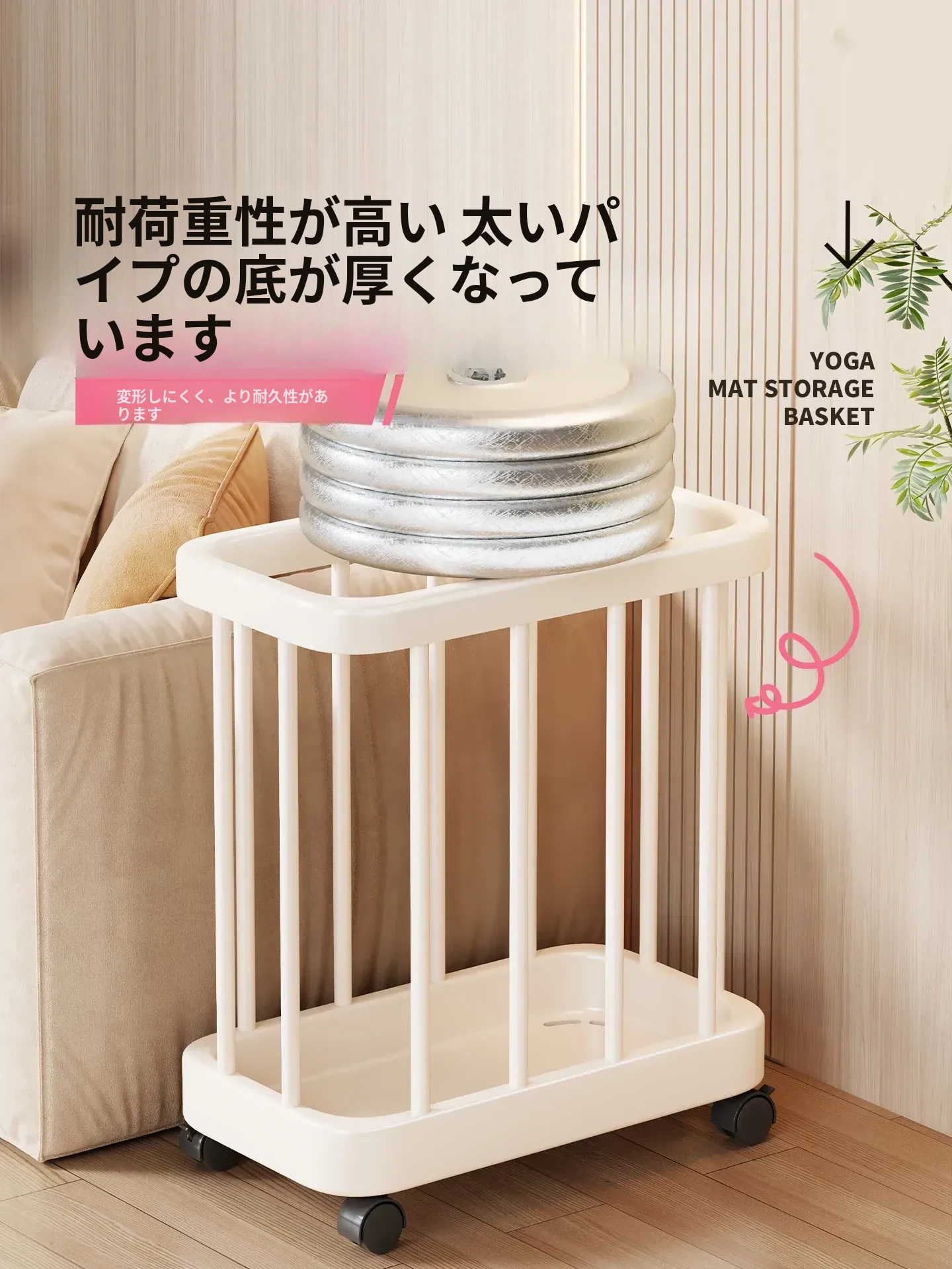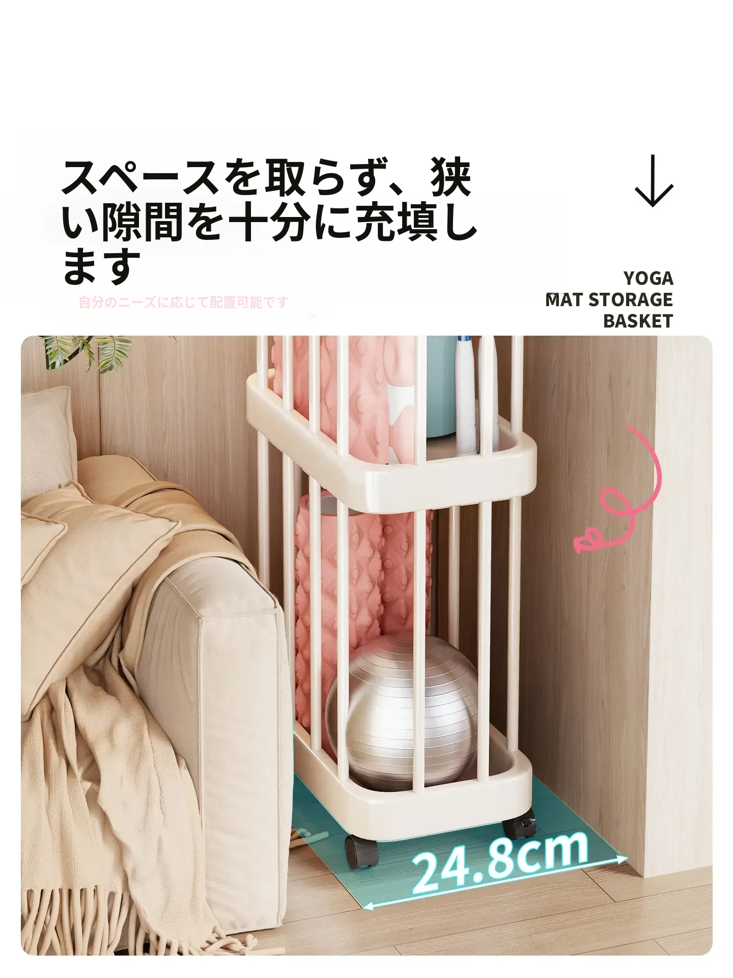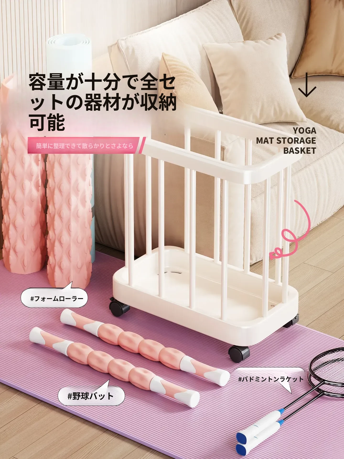 ヨガマット収納バスケット 大容量 キャスター付き 移動可能 多段式 フォームローラー用 スポーツフィットネス器具収納ラック これ一つでお部屋がスッキリ!