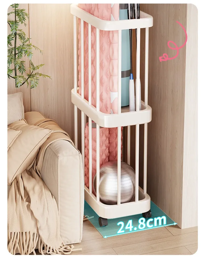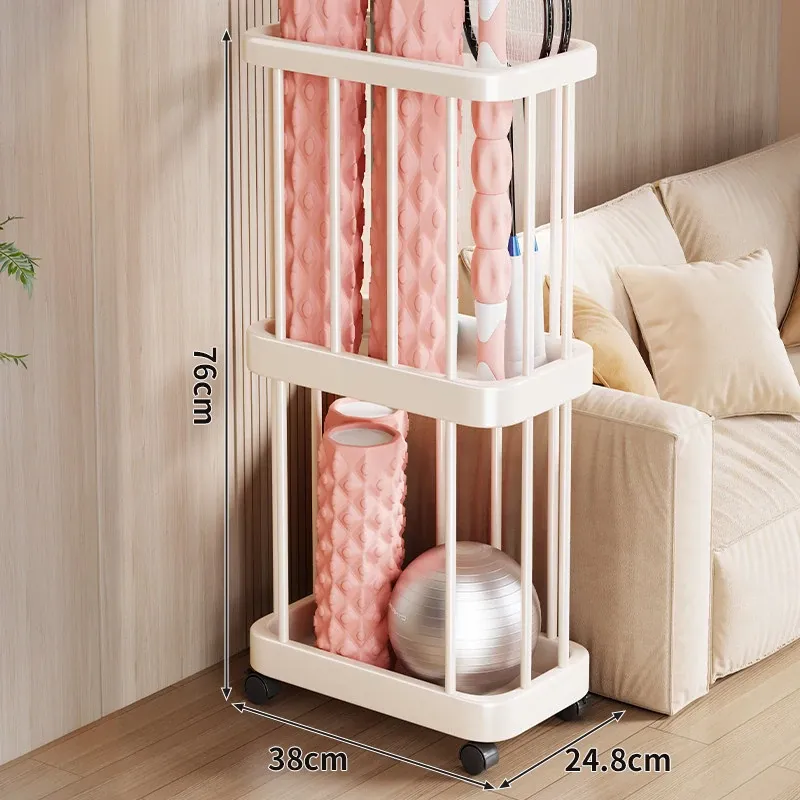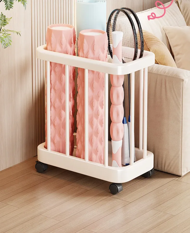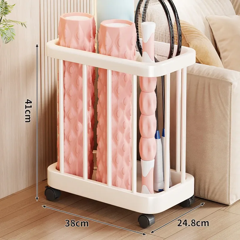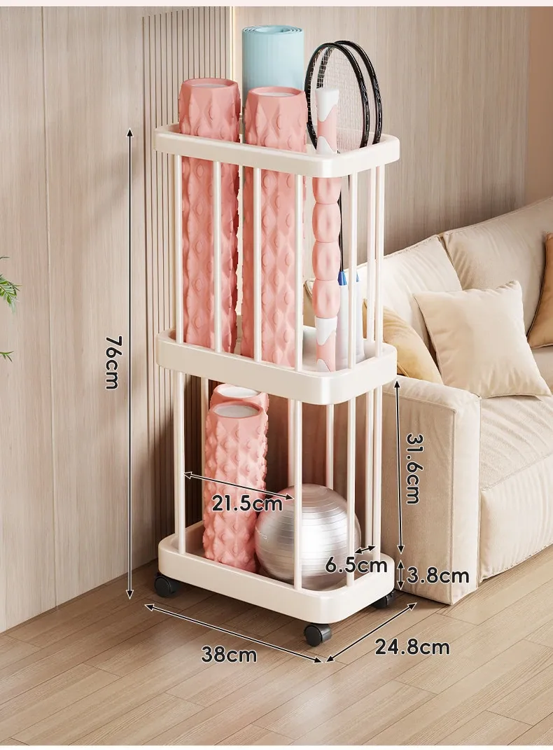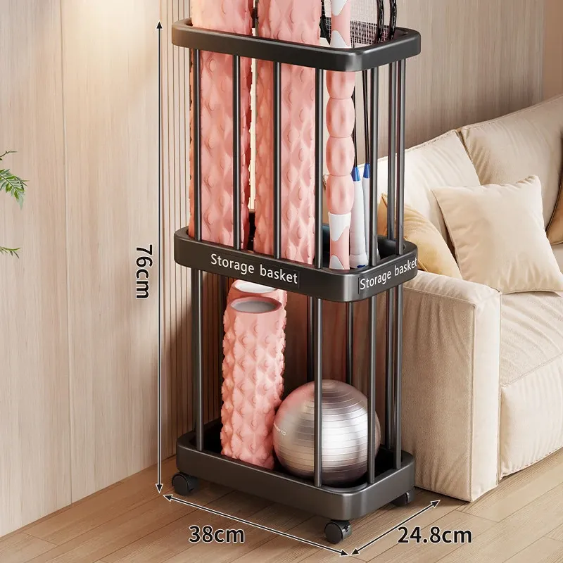 ヨガマット収納バスケット 大容量 キャスター付き 移動可能 多段式 フォームローラー用 スポーツフィットネス器具収納ラック これ一つでお部屋がスッキリ!