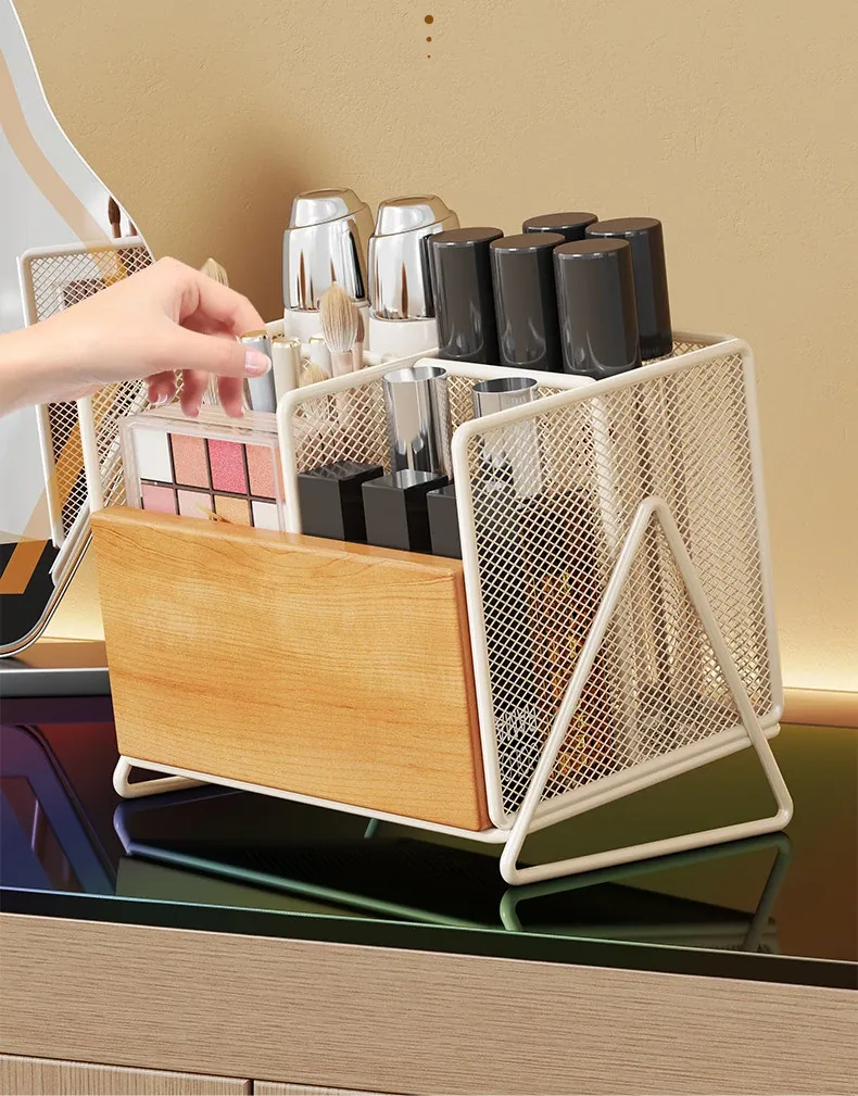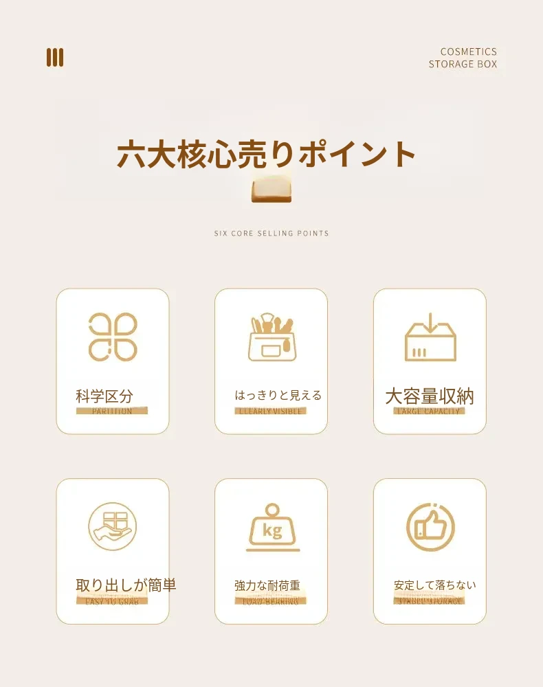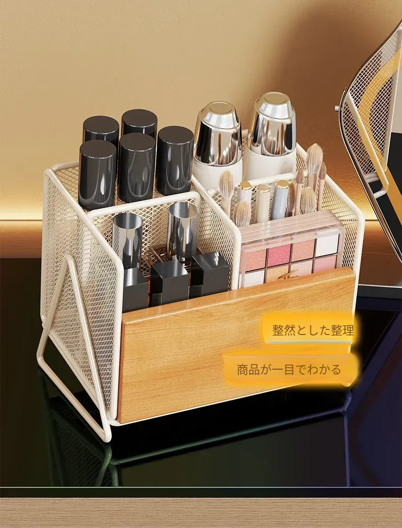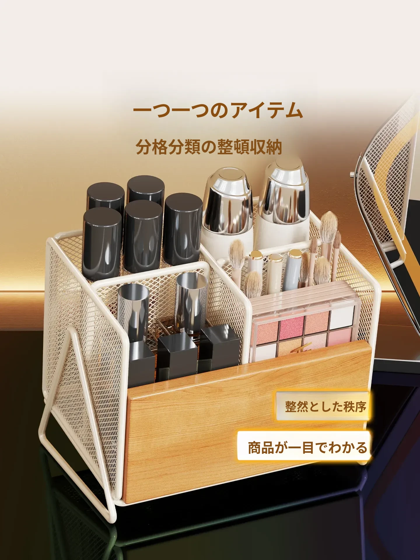 高級感漂う化粧品収納ボックス!洗面台を美しく整える必需品。スキンケアや口紅、メイクブラシをすっきり整理できる収納アイテムで、毎日のビューティータイムをもっと楽しく!