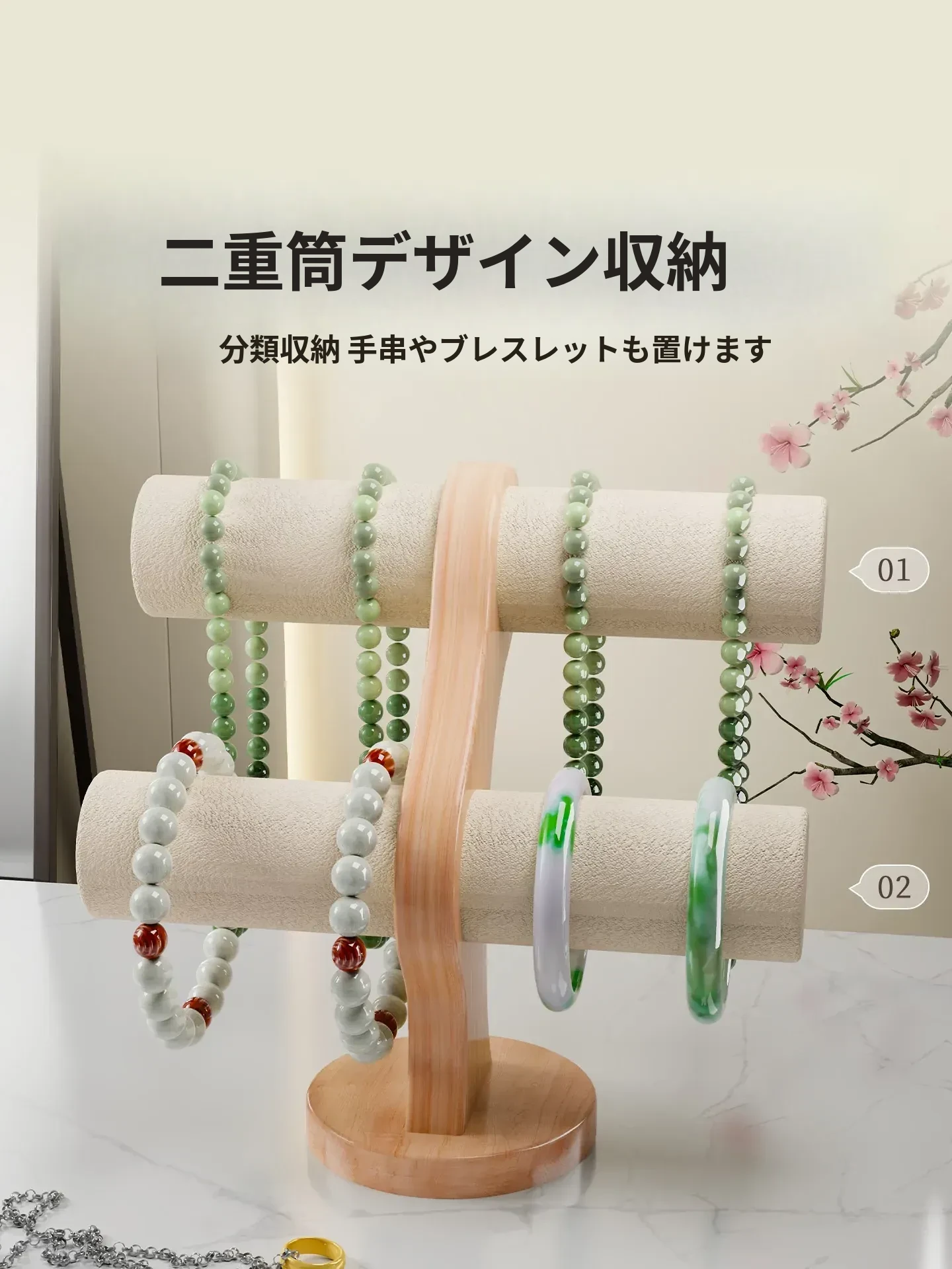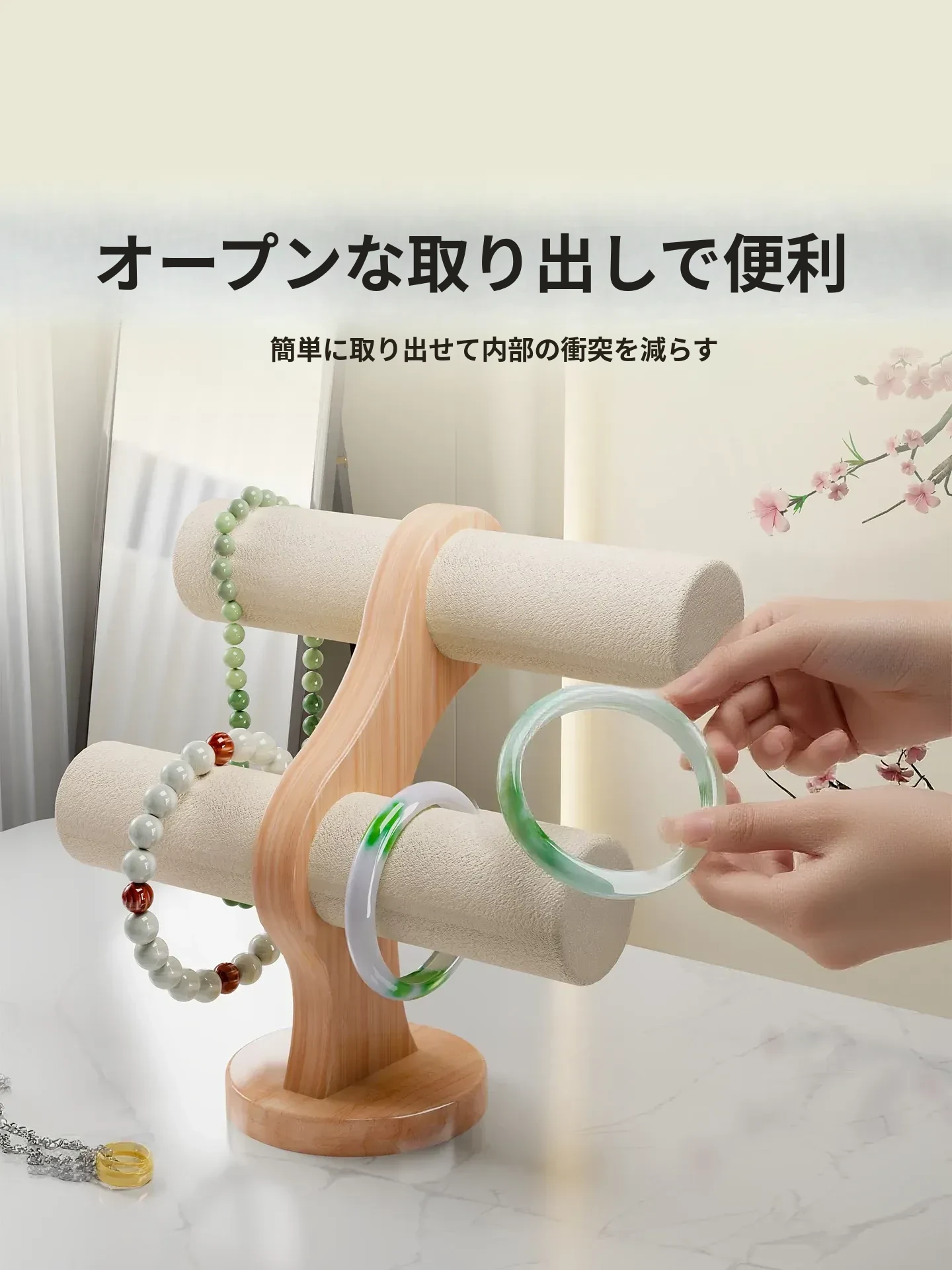 子供のためのデスクオーガナイザー!おしゃれなヘアアクセサリー展示スタンド、ゴムバンドやヘアクリップをすっきり収納できる実木製ラック。お部屋を可愛く彩る必需品!