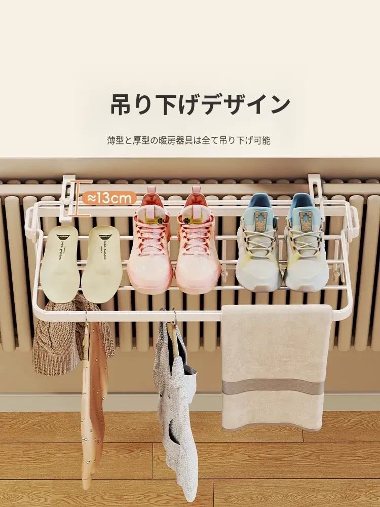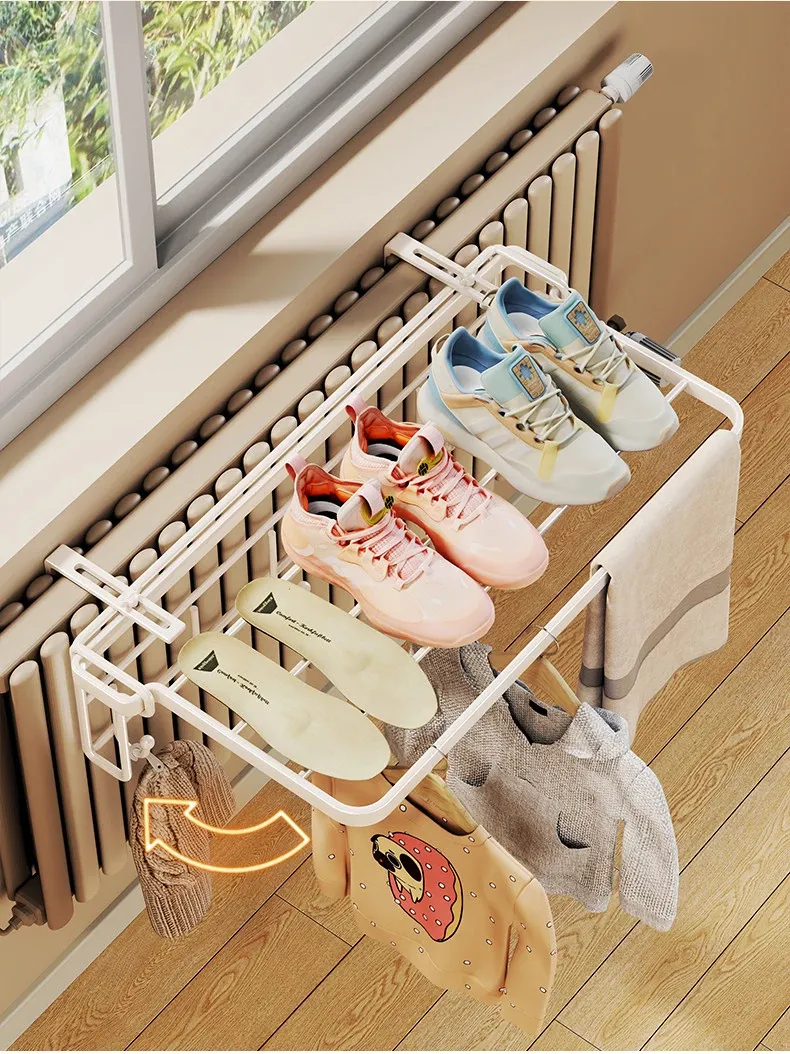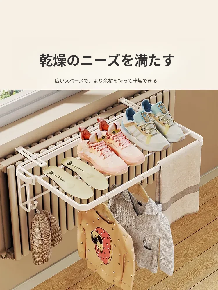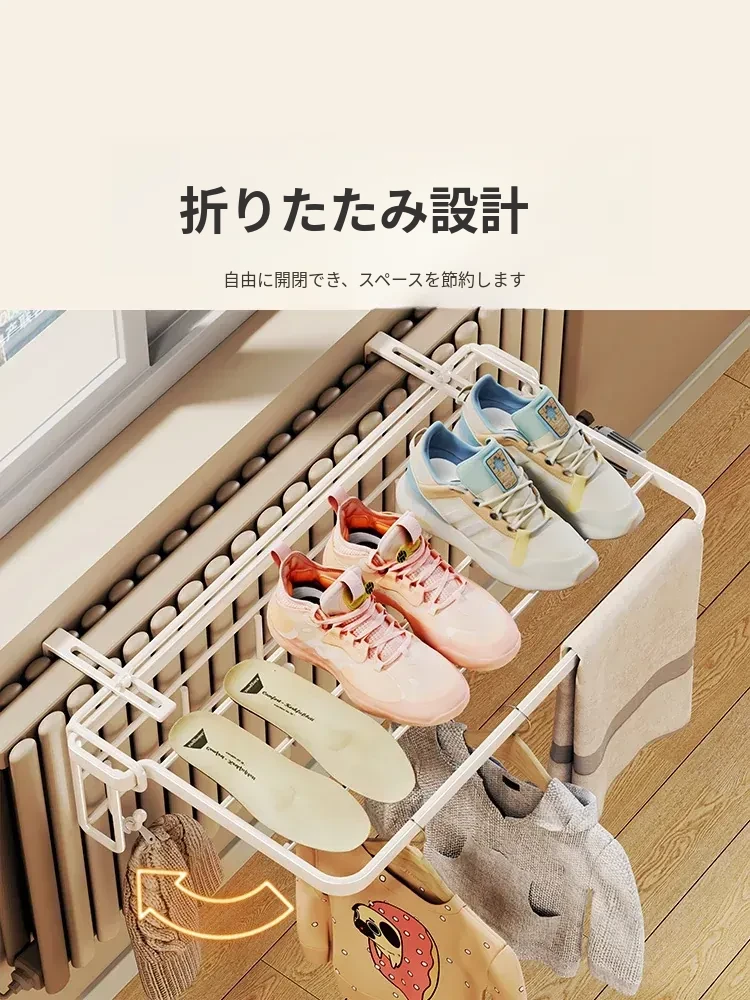 暖房での衣類乾燥に最適!コンパクトな折りたたみ式衣類ラック - 家庭用収納フックと整理台付き!衣類をスッキリ整理して、暖かい空間でおしゃれに乾かしましょう!
