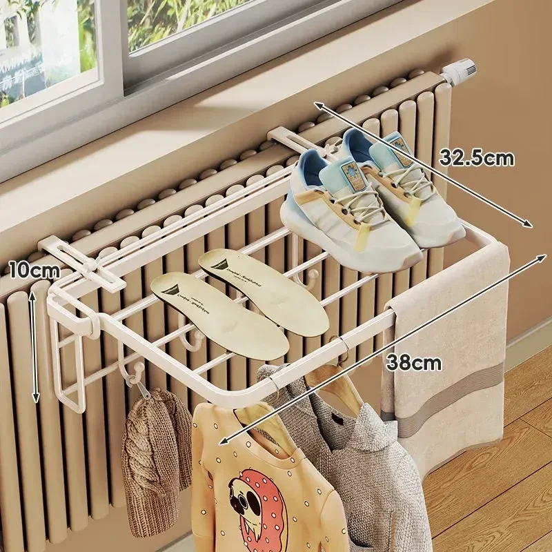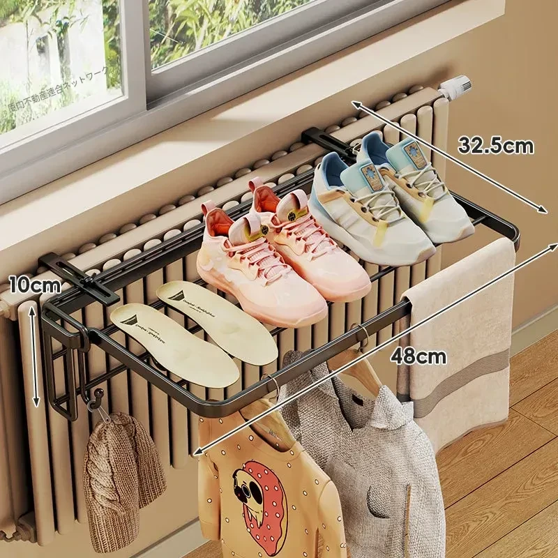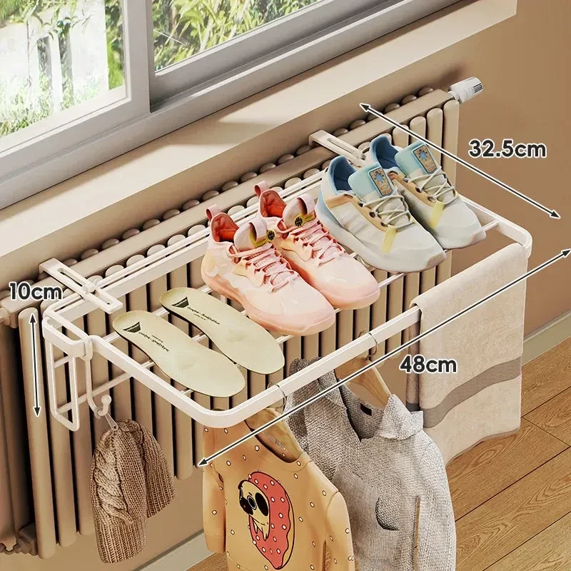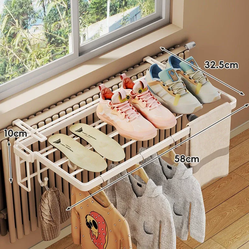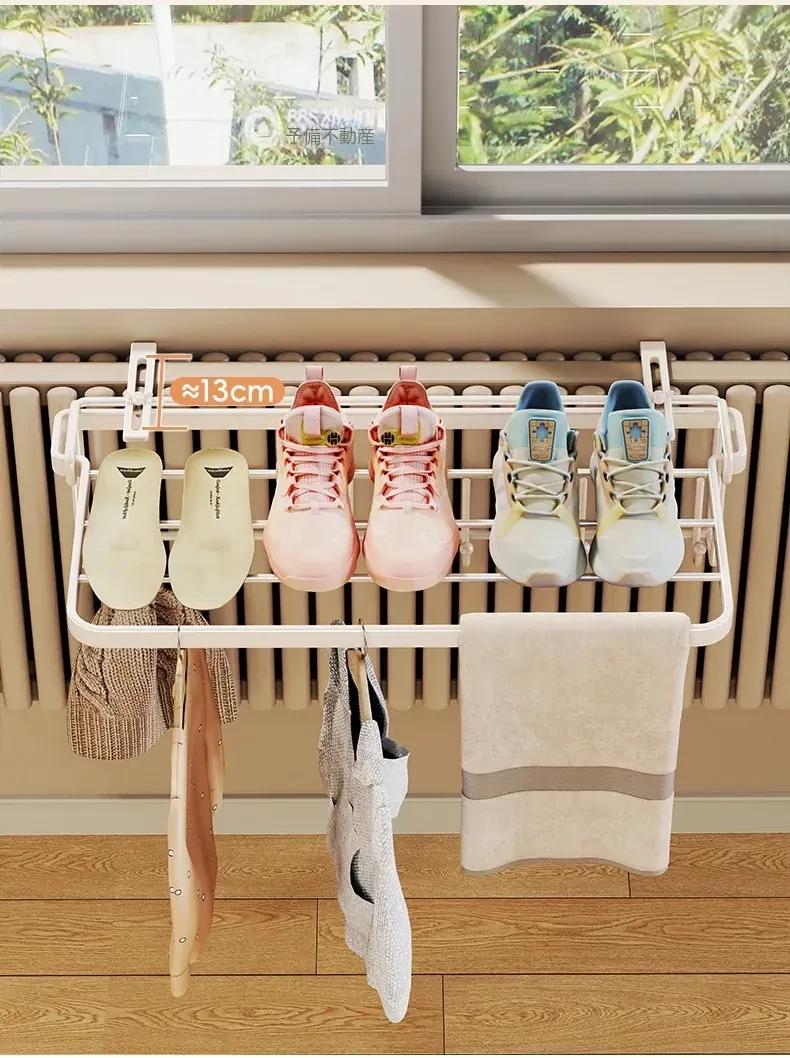 暖房での衣類乾燥に最適!コンパクトな折りたたみ式衣類ラック - 家庭用収納フックと整理台付き!衣類をスッキリ整理して、暖かい空間でおしゃれに乾かしましょう!
