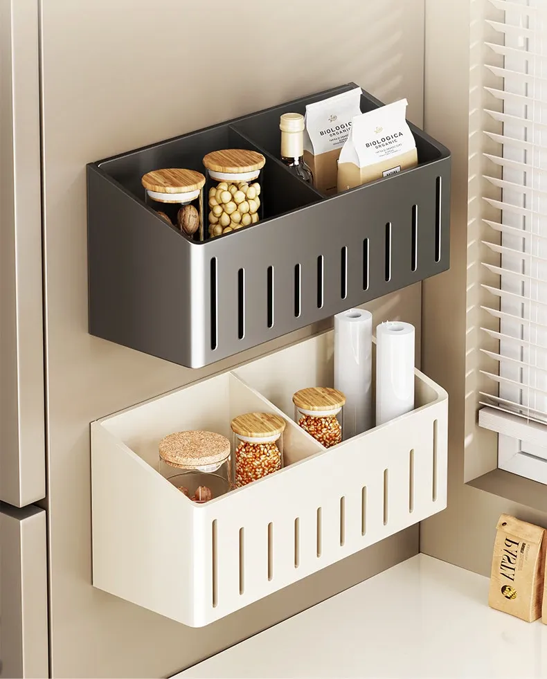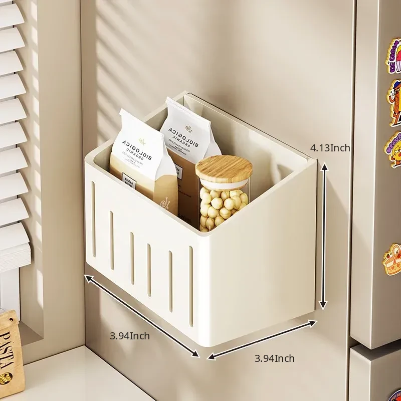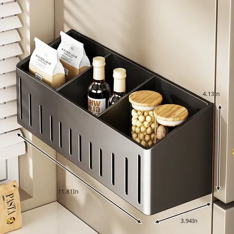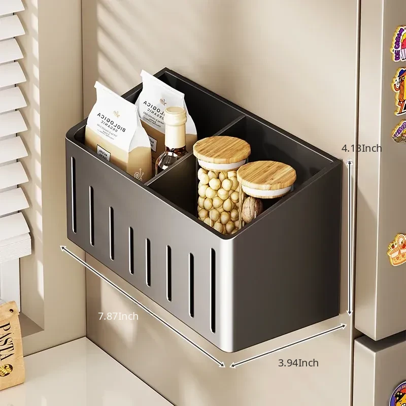 Magnetic Hanging Spice Rack with Storage Box for Green Onion, Ginger, and Garlic - Multi-functional Kitchen Organizer for Refrigerator Side and Cling Film Holder