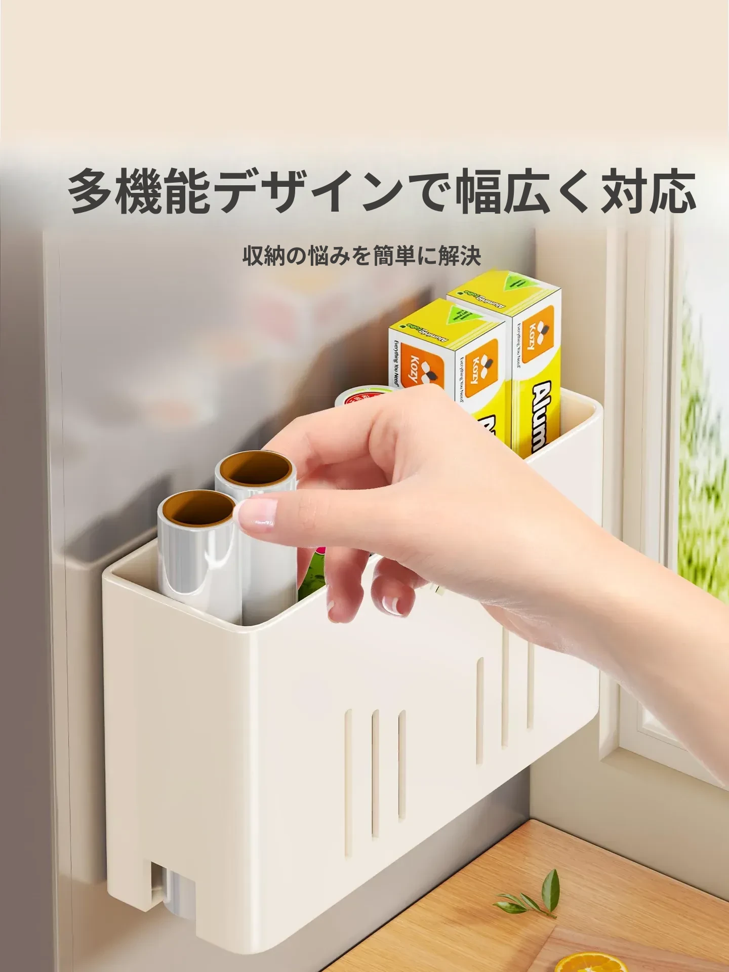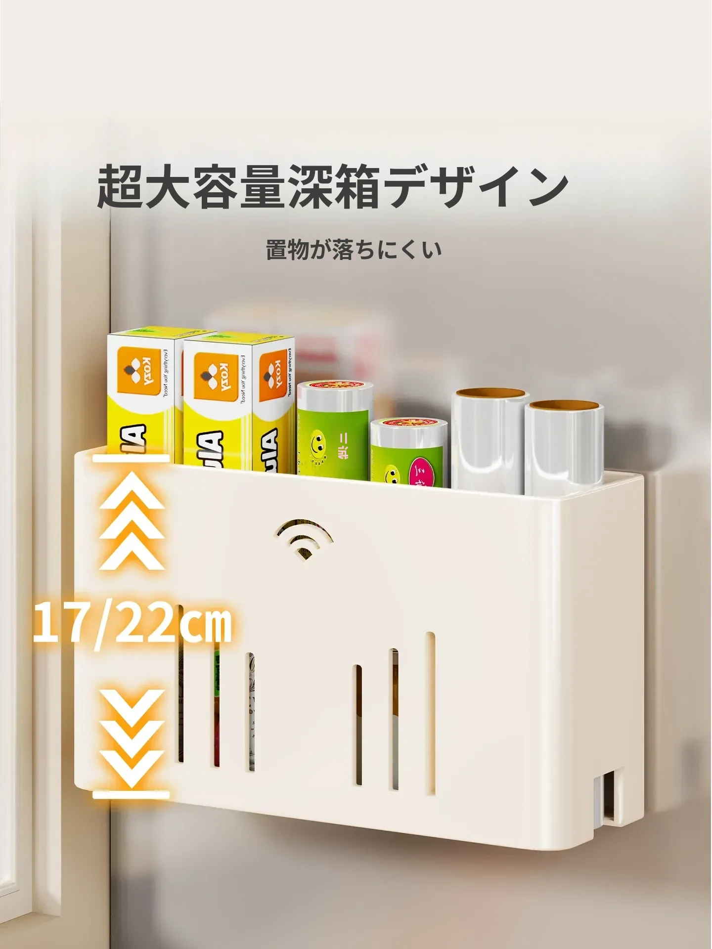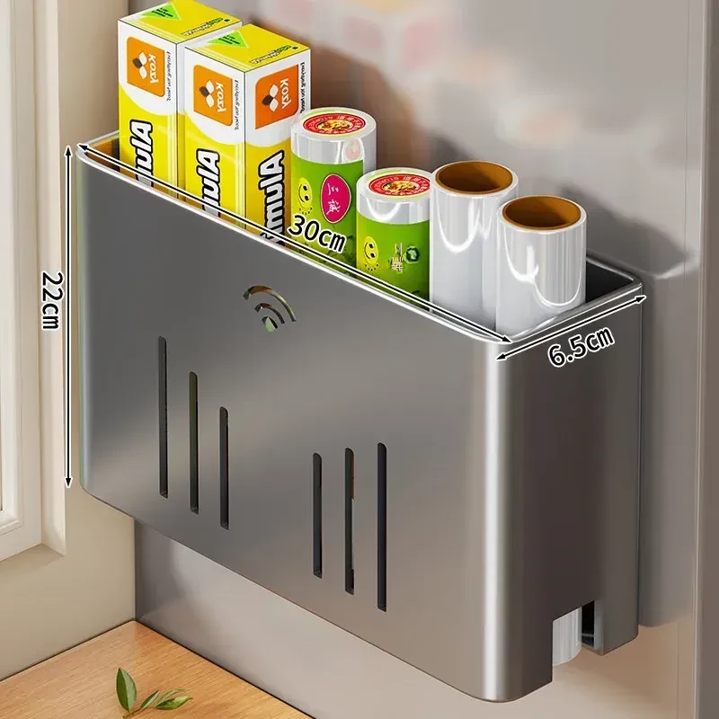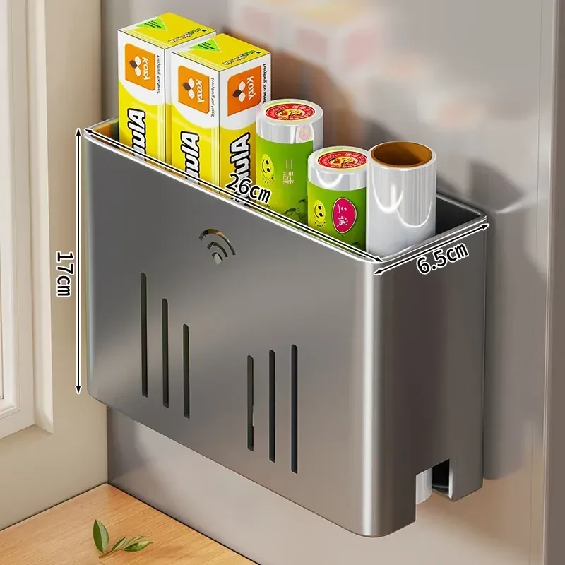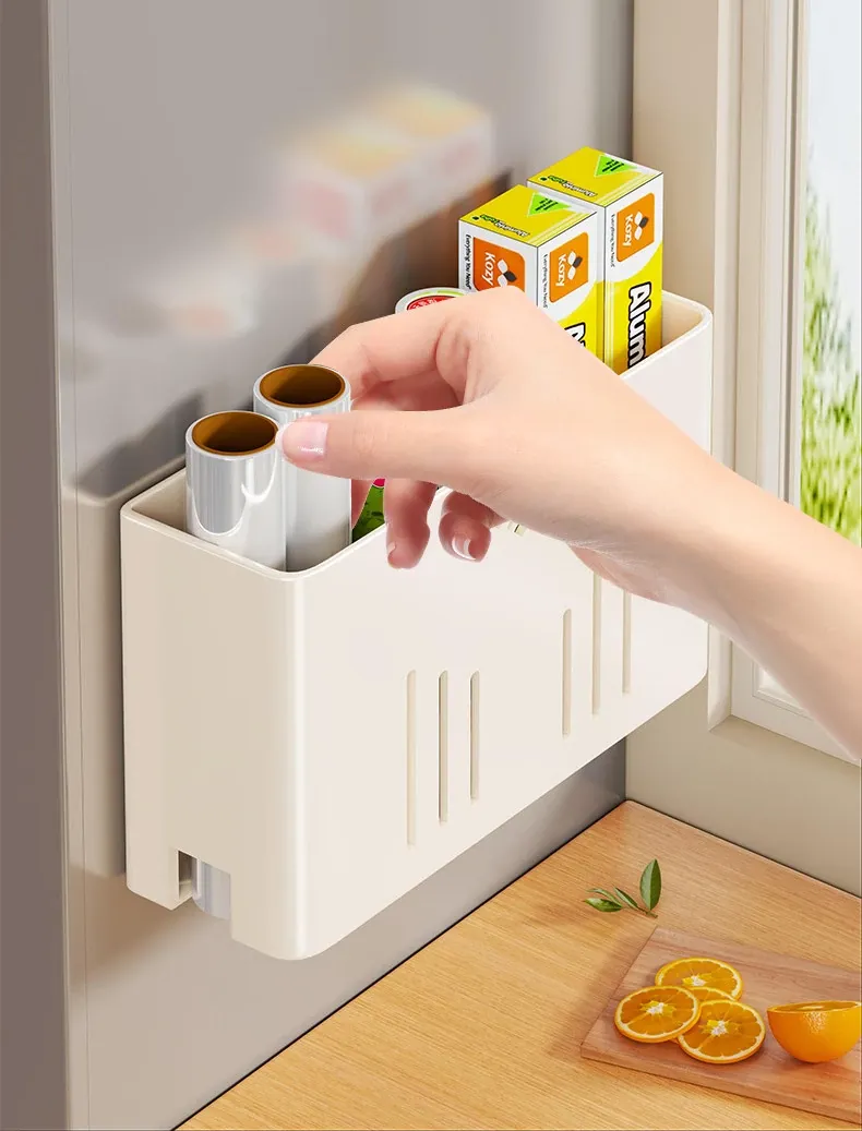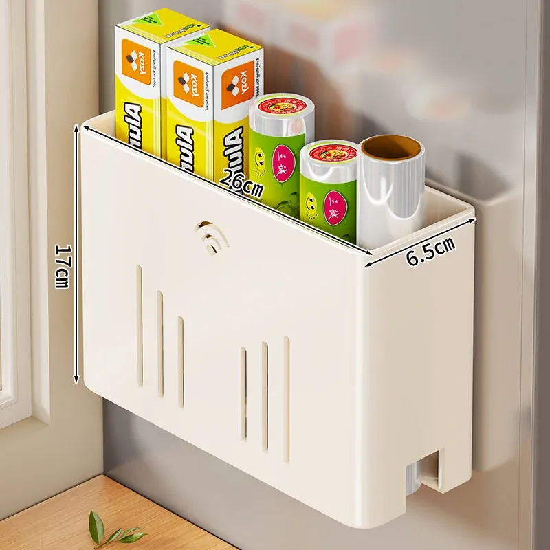 マグネット式収納ラック|サイドに保鮮フィルム&ティッシュを収納できる便利アイテム|冷蔵庫のサイドにぴったりのスペース節約収納!