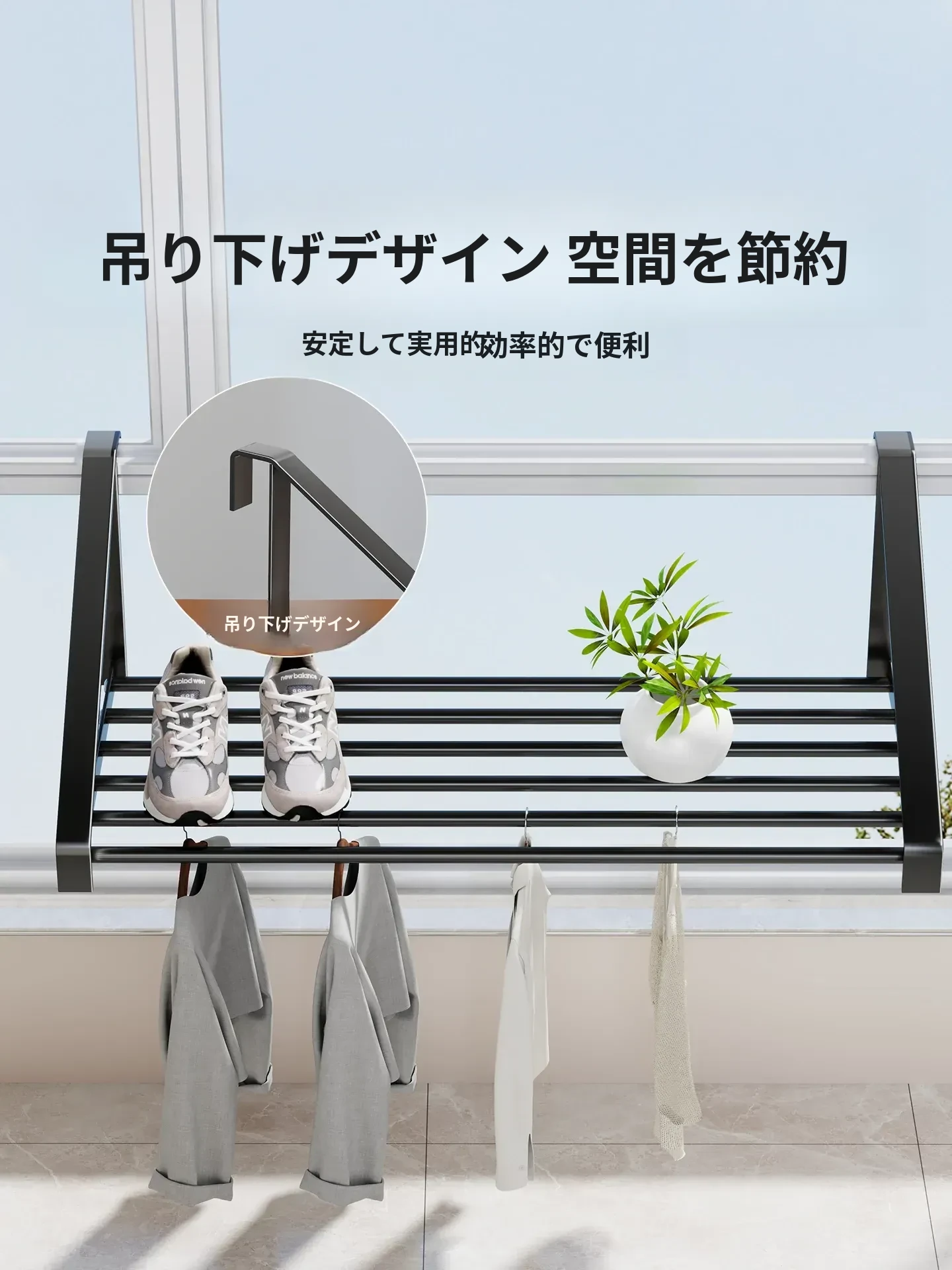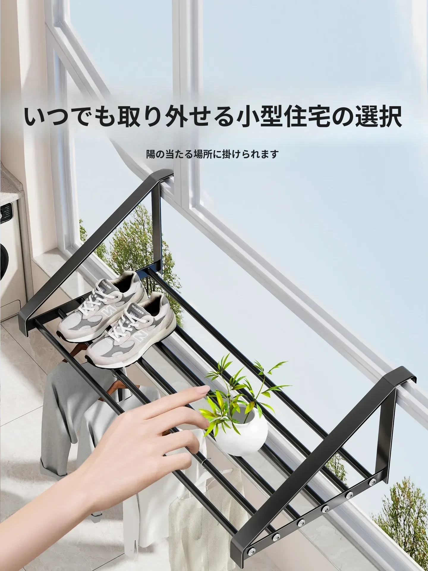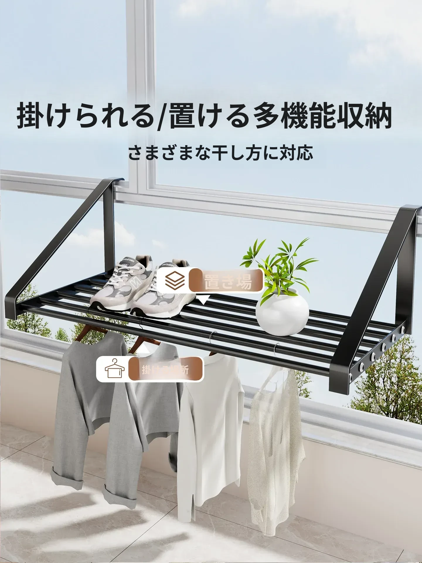バルコニー用多機能衣類干しラック!収納できるガードレール付きで、室外での使用に最適。靴や小物もすっきり整理できる便利なハンガー。これでおしゃれに干す楽しみを!