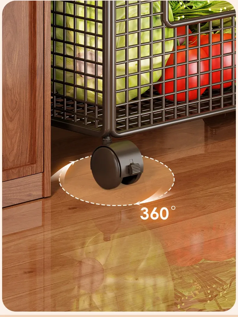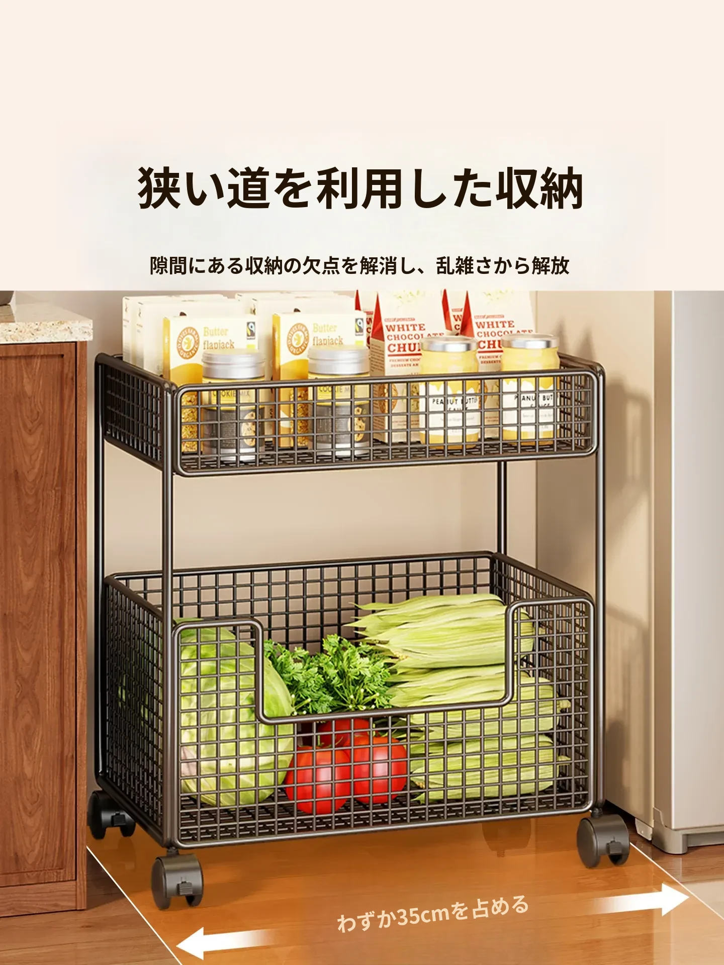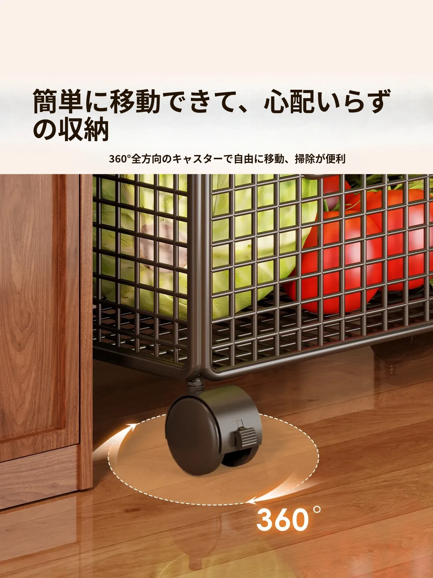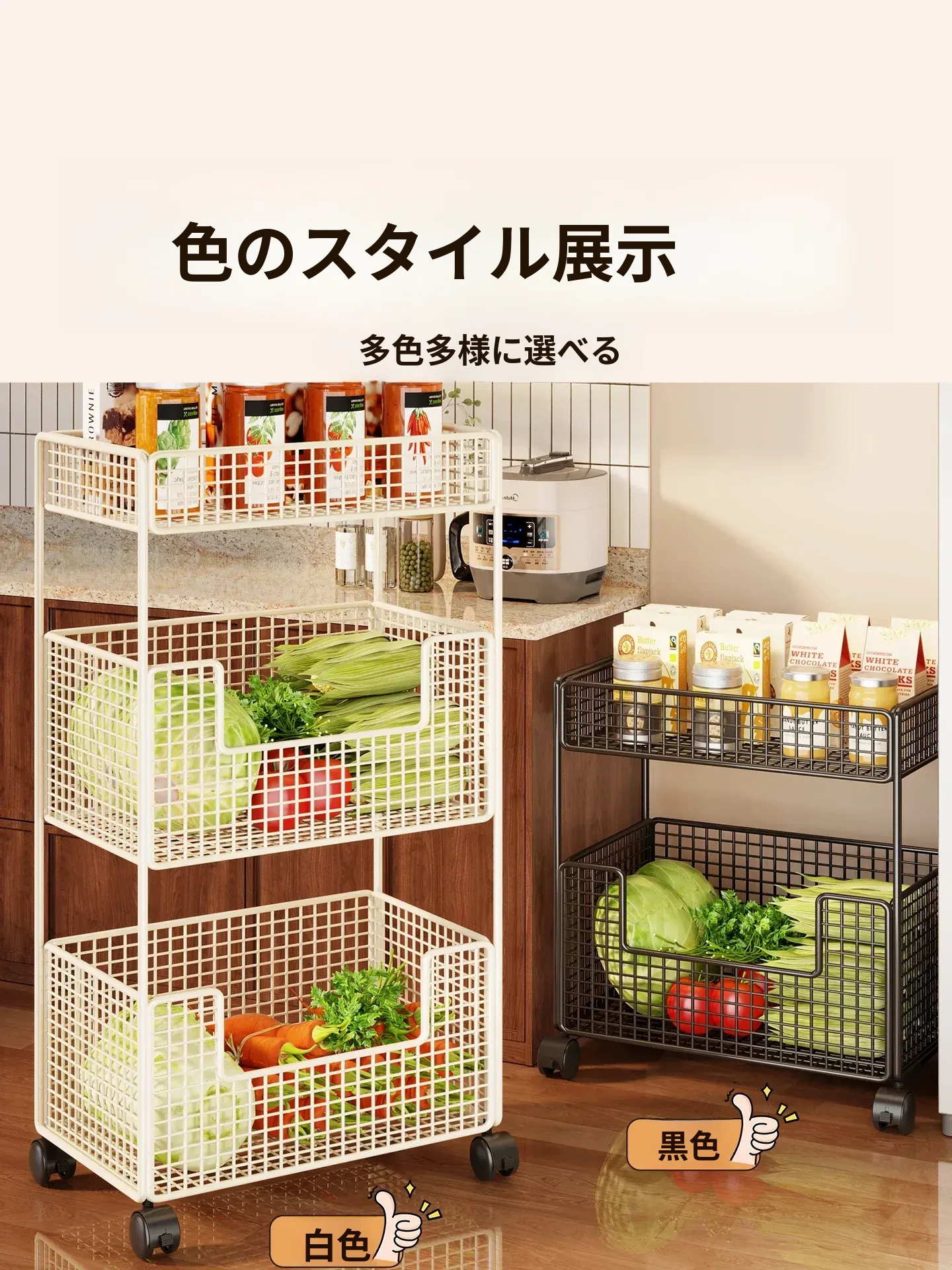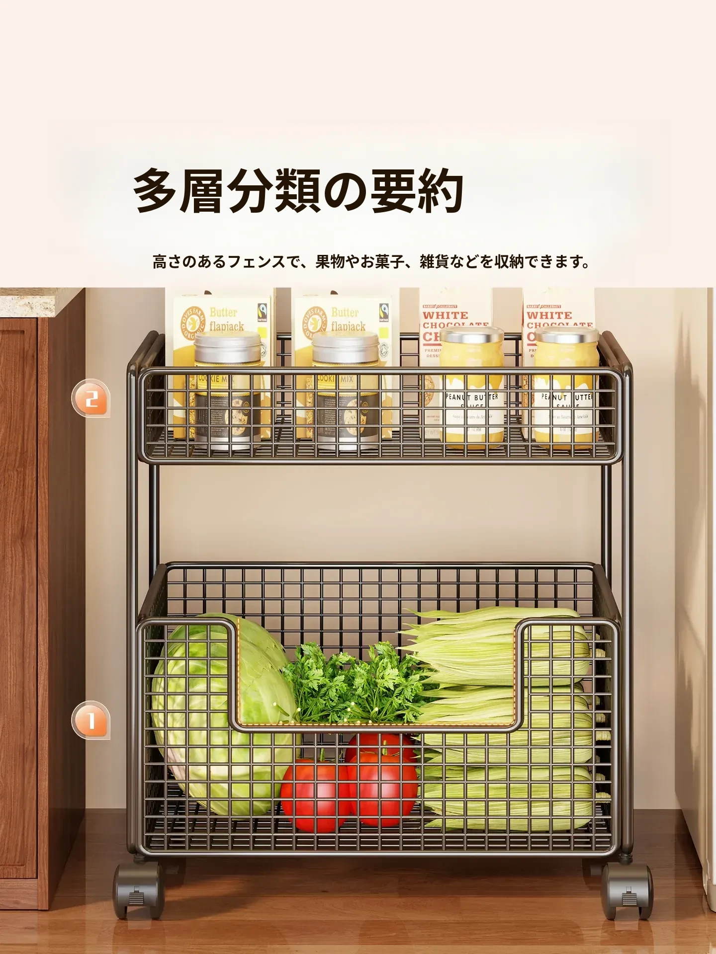 多機能キッチン収納ラック!野菜やスナックも収納できる移動式カート。キャスター付きで便利な多段ラック、果物や野菜の整理整頓に最適です!