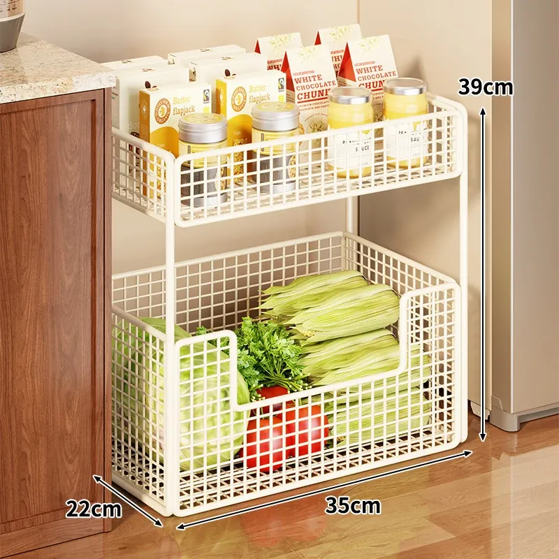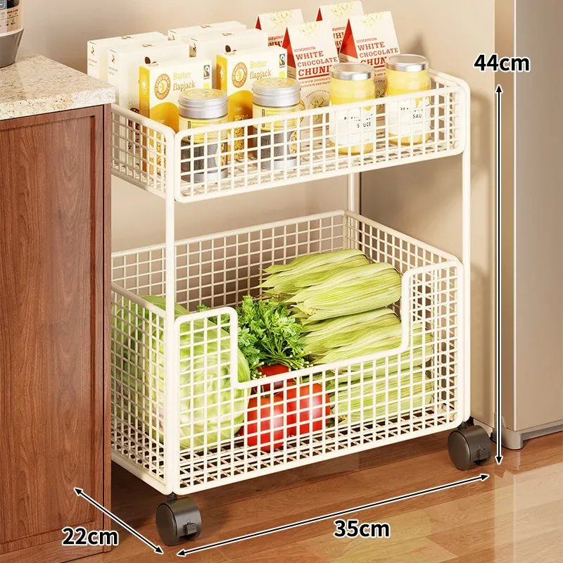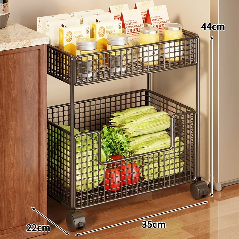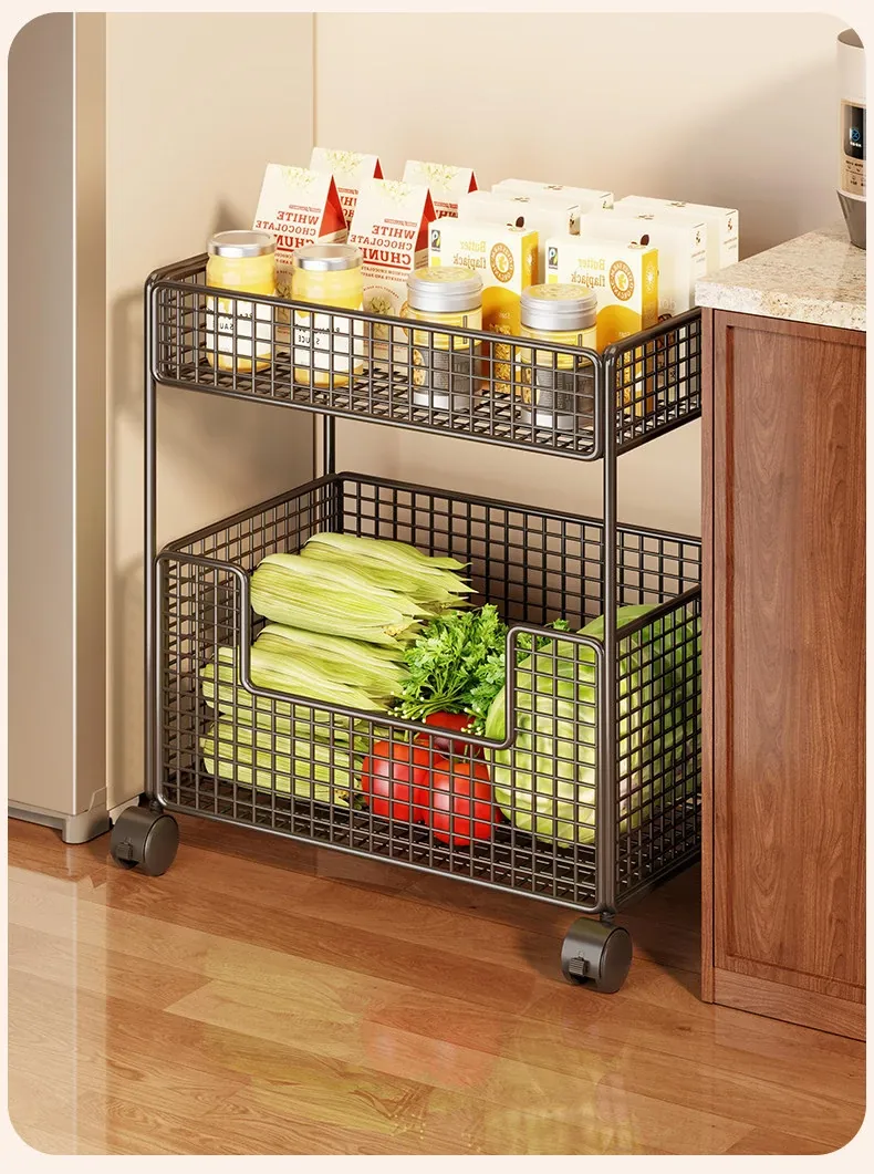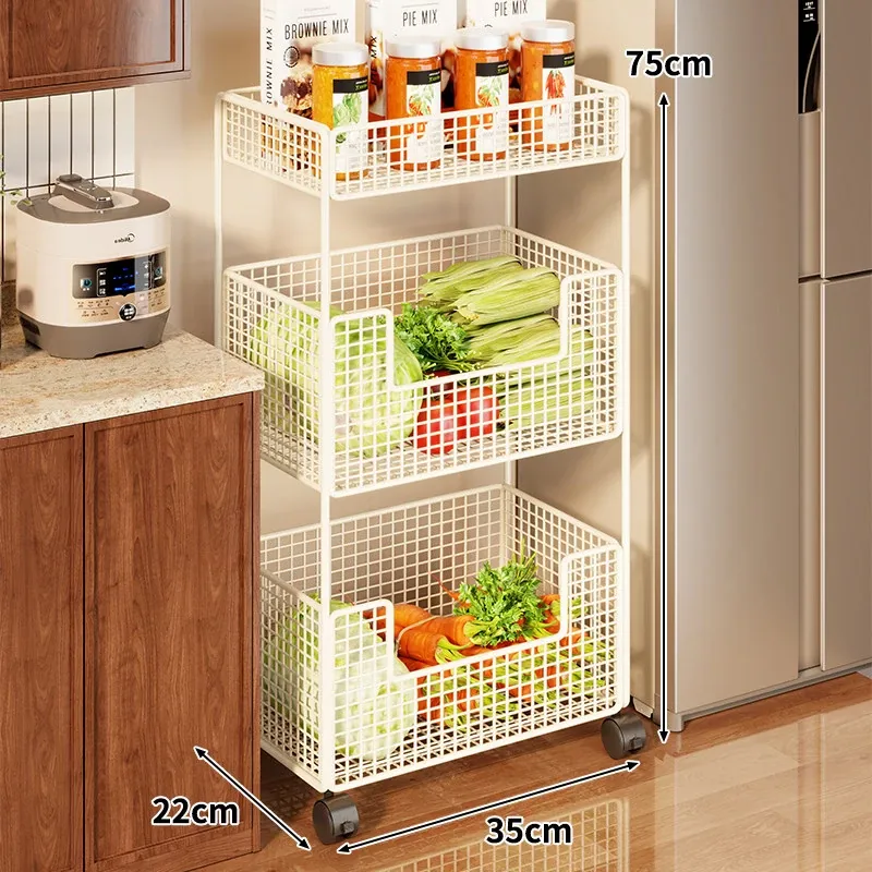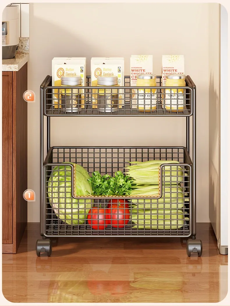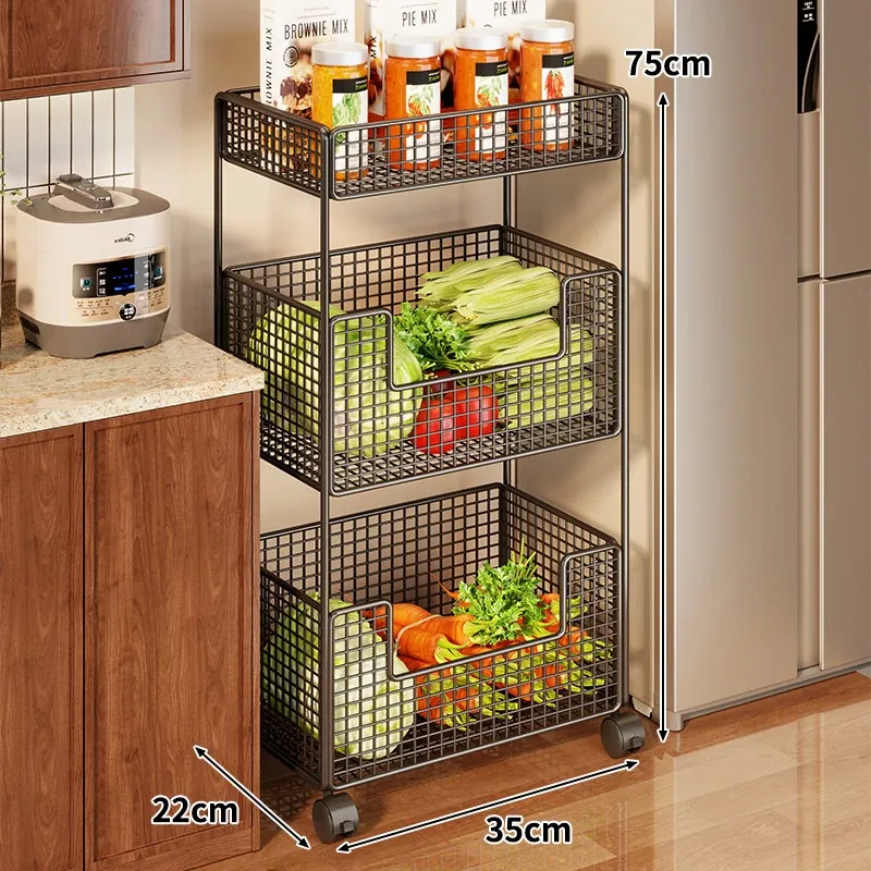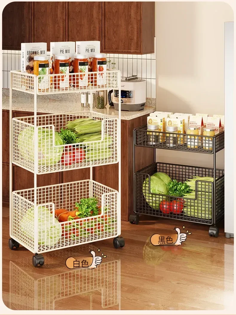 多機能キッチン収納ラック!野菜やスナックも収納できる移動式カート。キャスター付きで便利な多段ラック、果物や野菜の整理整頓に最適です!