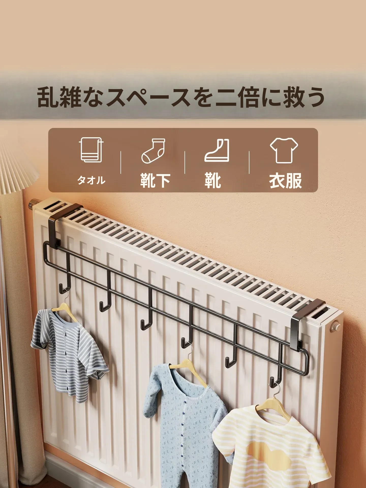多機能暖房用衣類干しラック - シンプルで頑丈、温度に強い固定式収納ラック。タオルや小物もスッキリ整理!家でのデザイン性と実用性を両立。