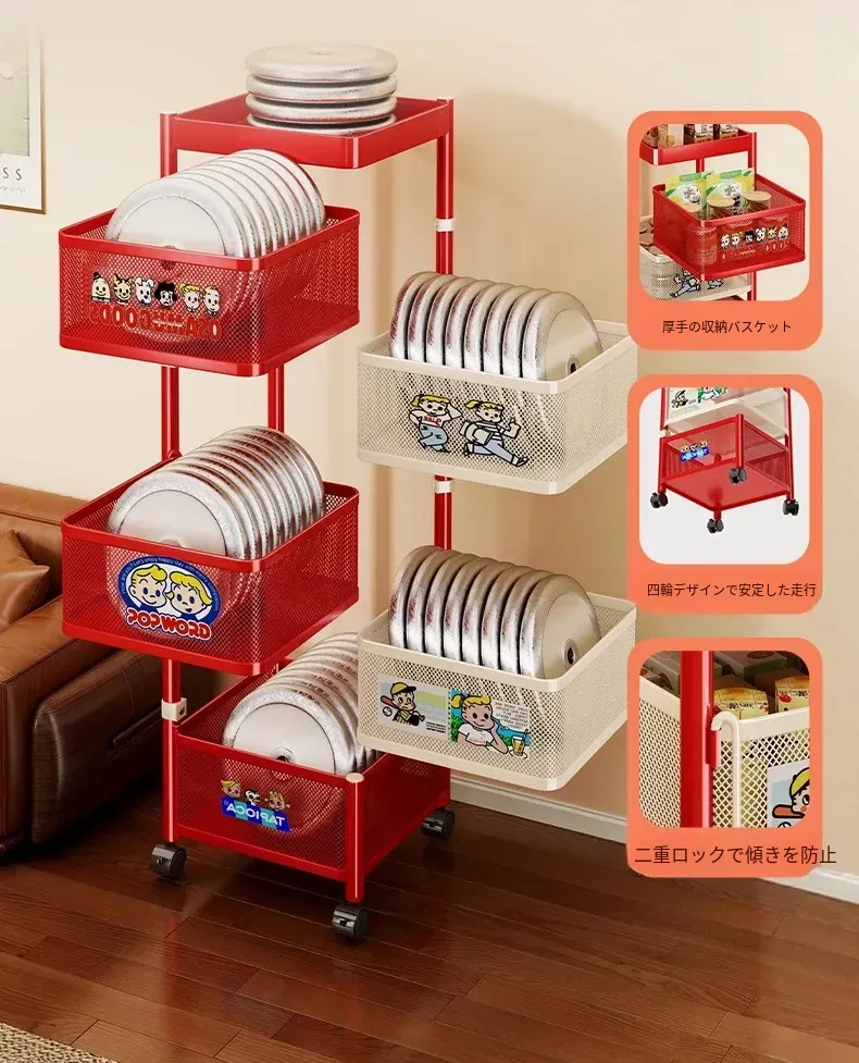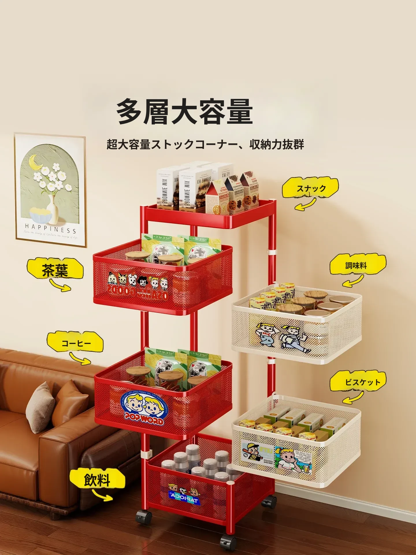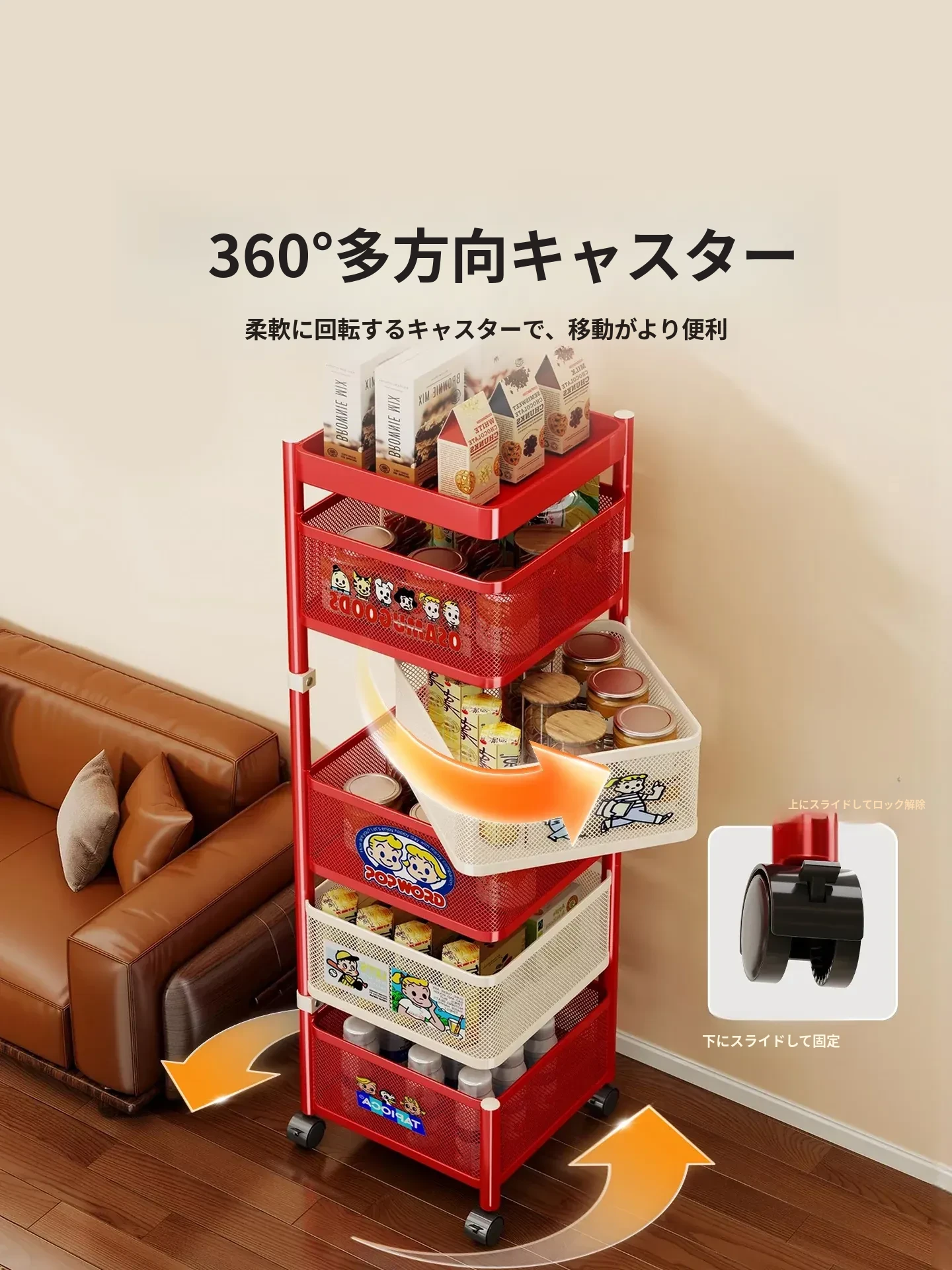回転式収納ラック - リビングにぴったりな多機能キャリーラック!狭い隙間にもフィットし、ダイナミックに収納を実現!あなたの生活空間をより便利に、スタイリッシュに変身させましょう。