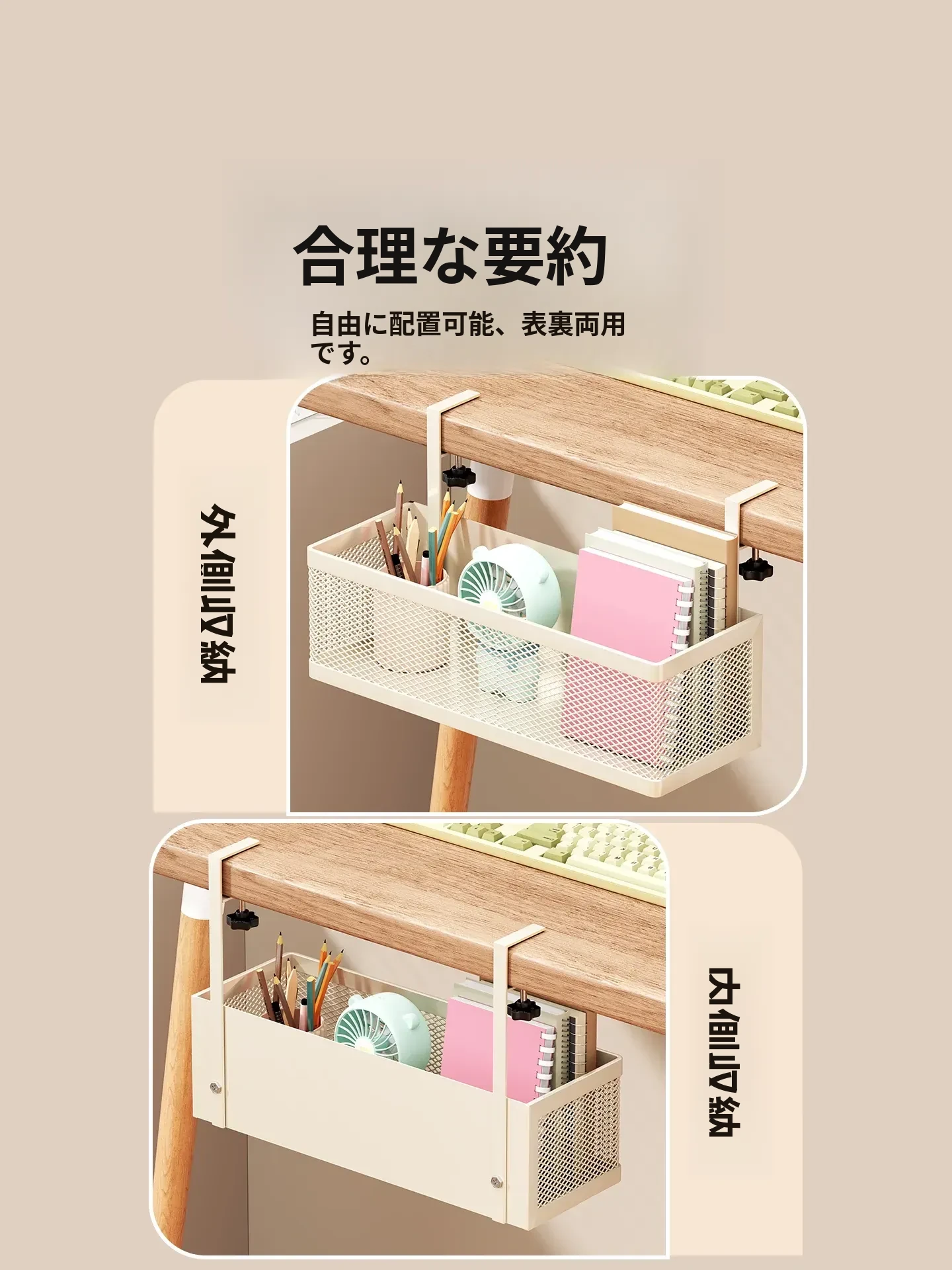 デスク下収納ラック 多機能学習用品収納棚 宿舎用充電ケーブル・ヘッドフォンボックス整理整頓ラックで、限られたスペースを有効活用!快適な勉強環境を実現!