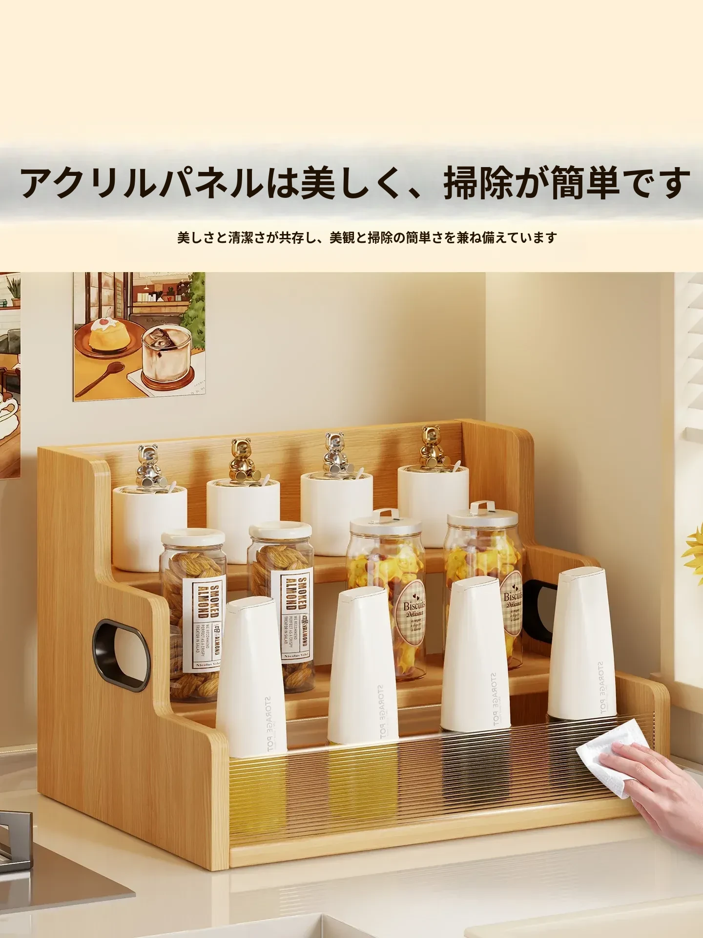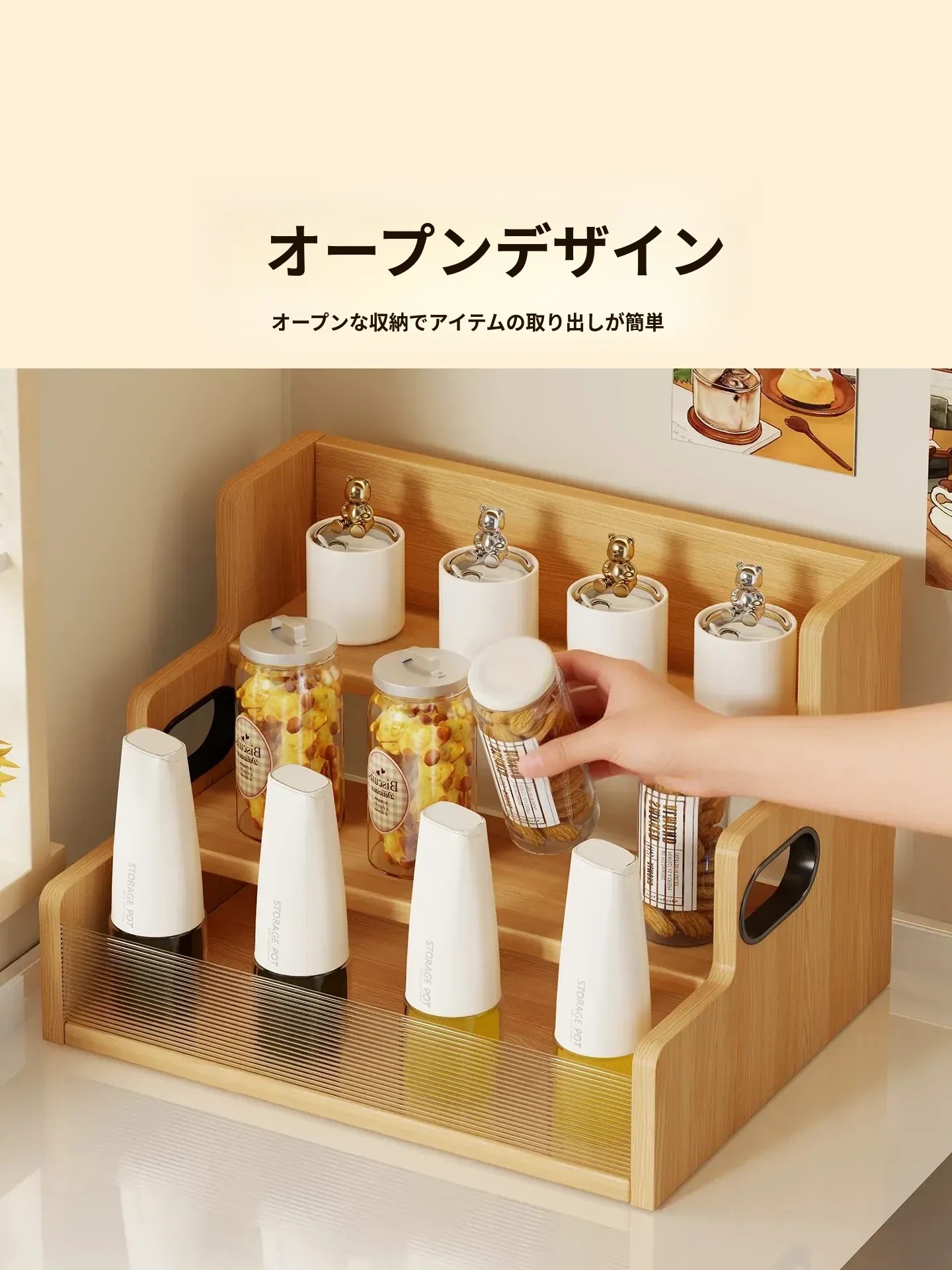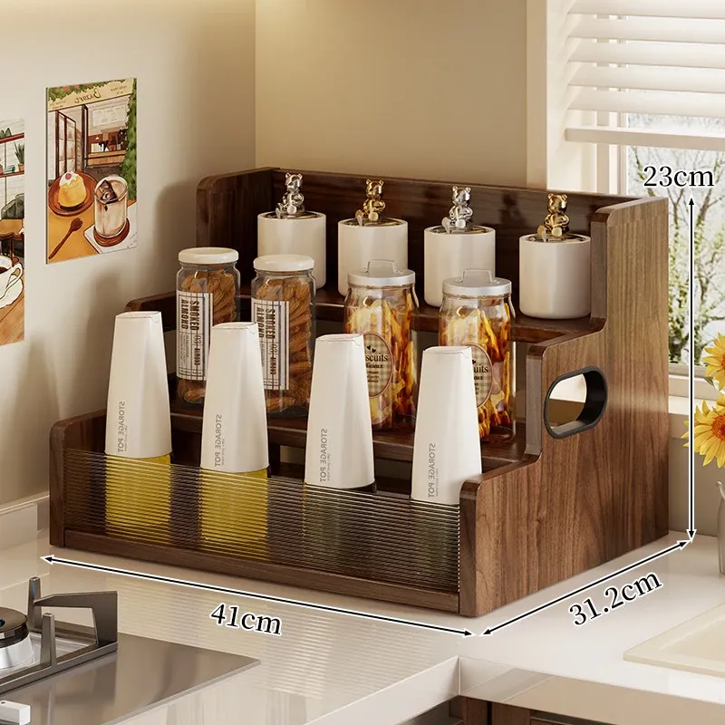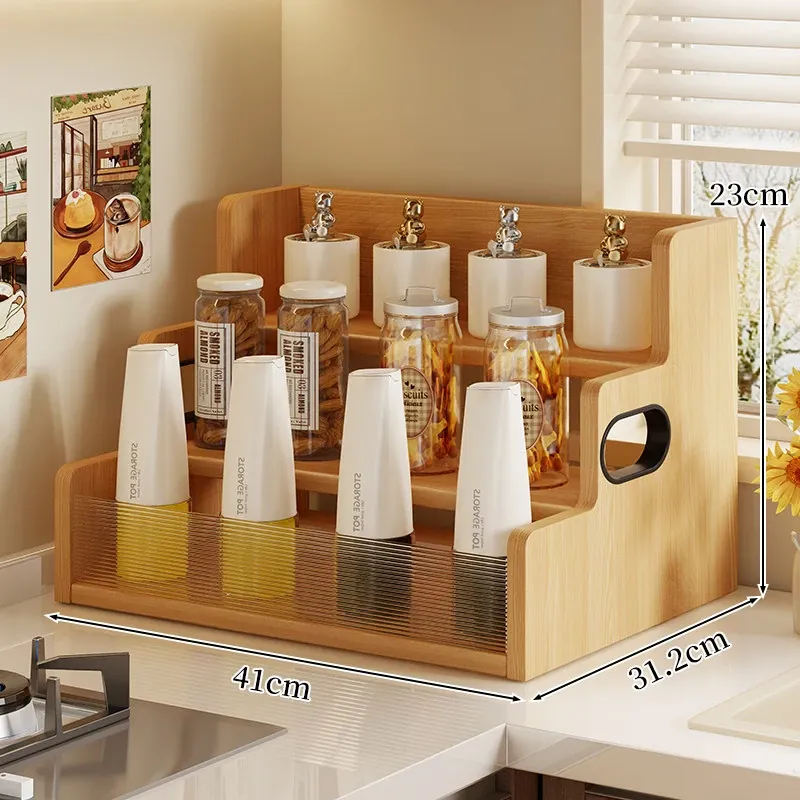 デスク上収納ラック - キッチンやダイニングテーブルにぴったり!多段階整理で調味料やスナックをすっきり収納。省スペースでおしゃれなデザイン、生活をもっと便利に!