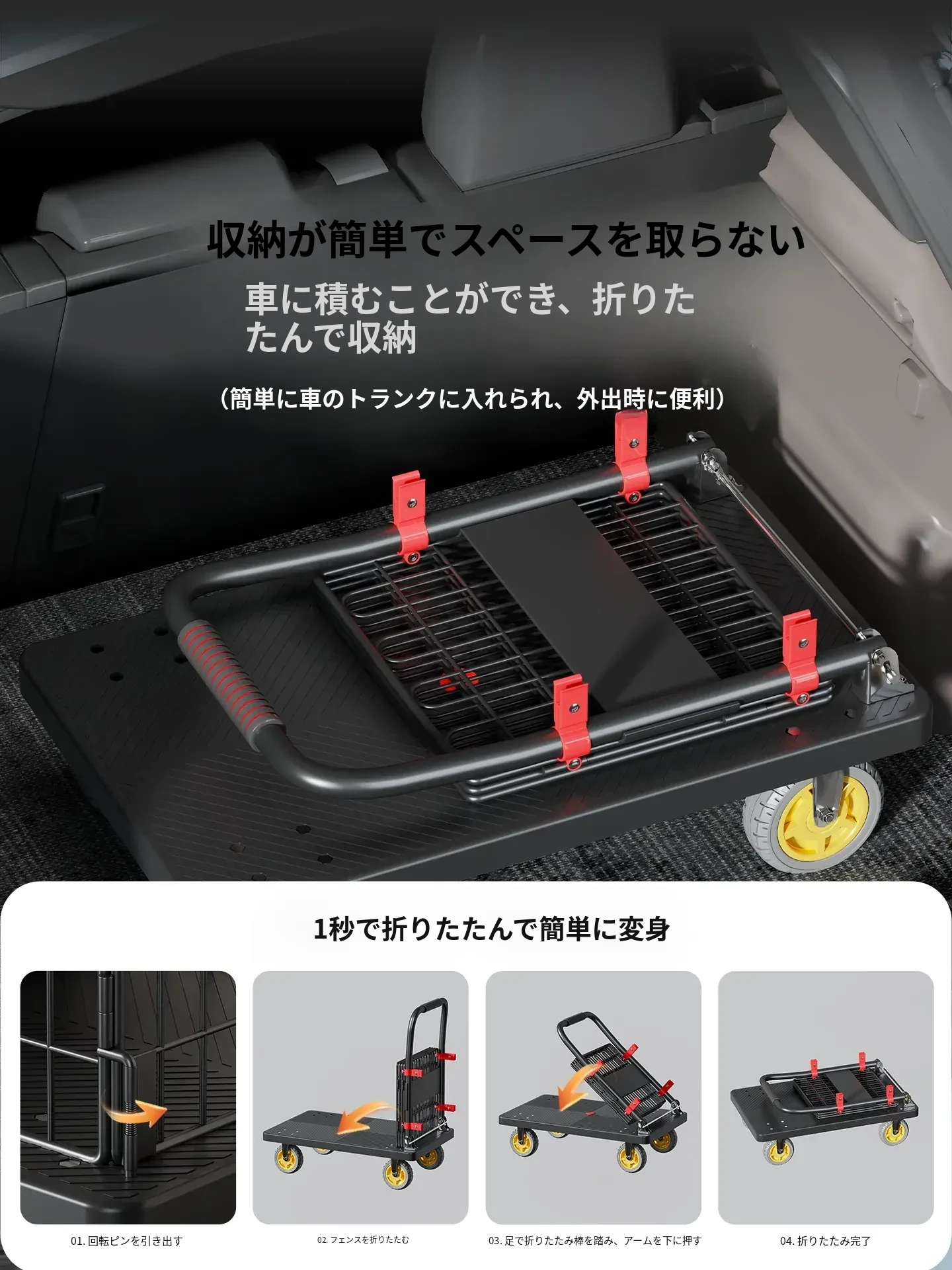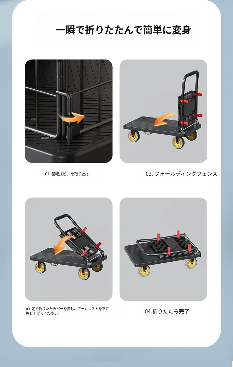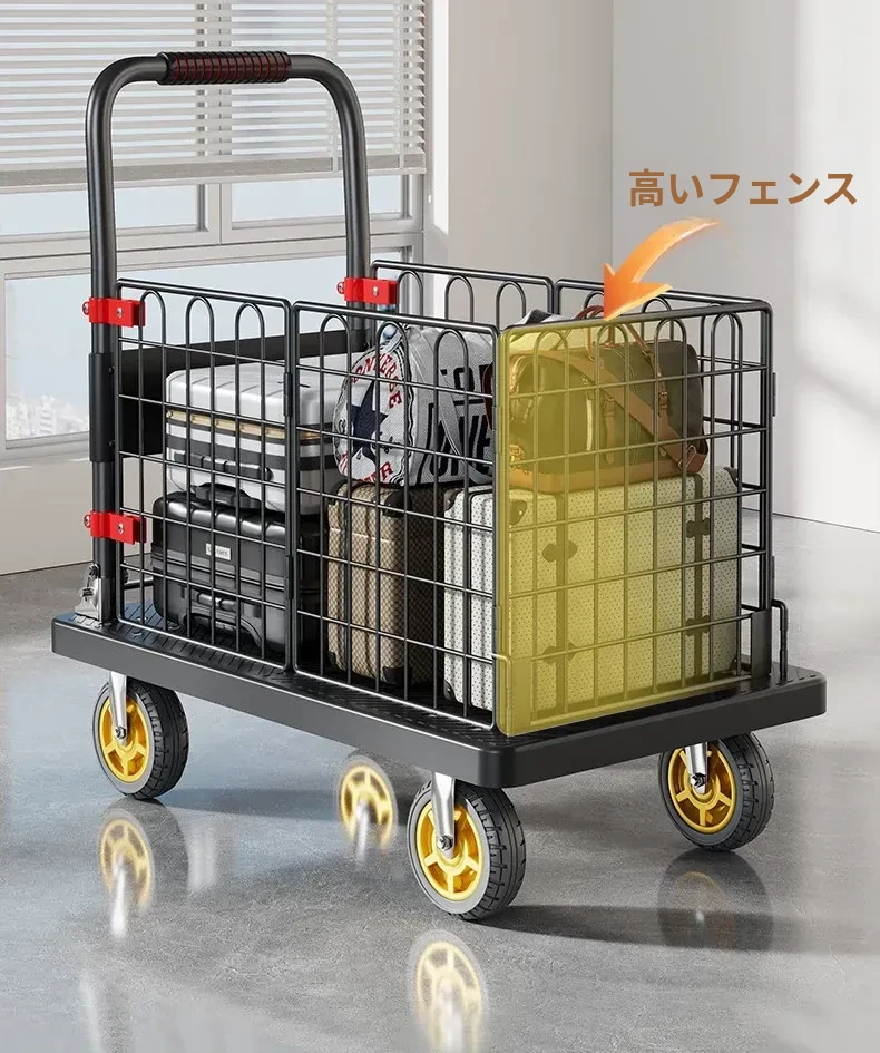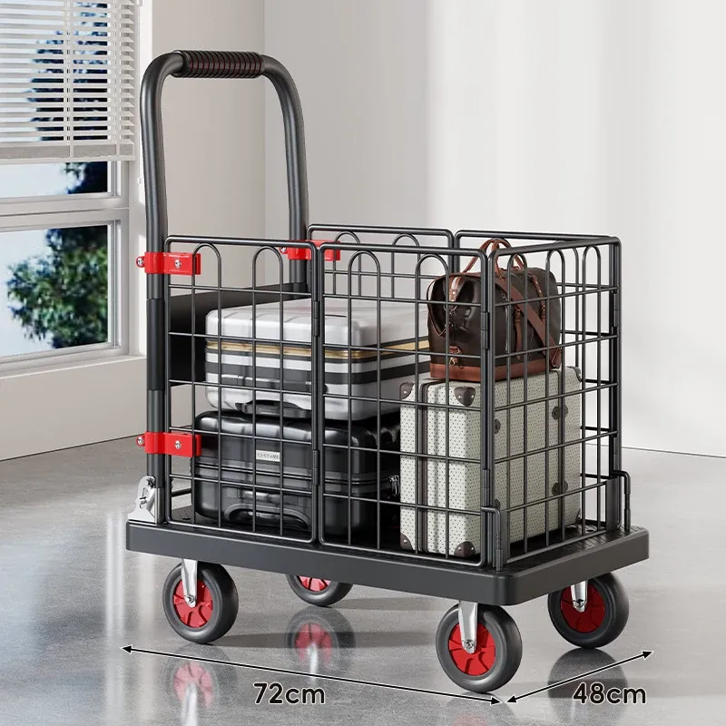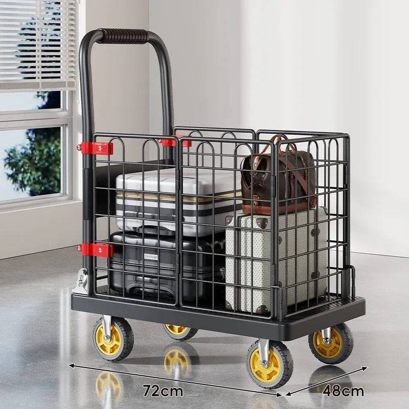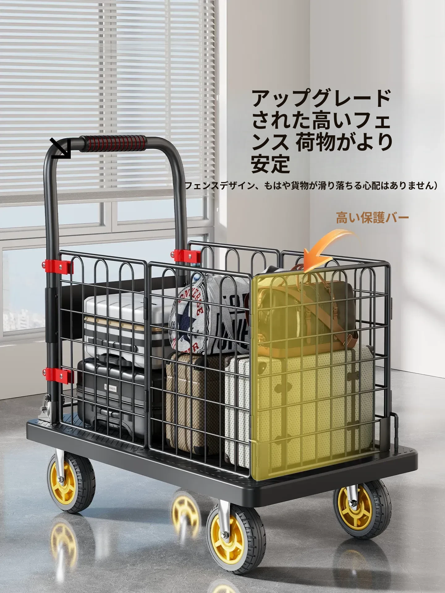 折り畳み可能な静音キャリーカート - 家庭用・便利な小型フェンスワゴン、宅配や倉庫での運搬に最適!手引きタイプで軽快に移動できます。
