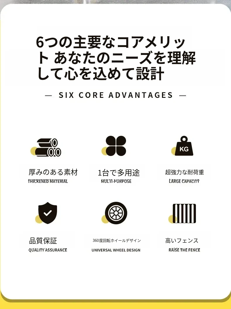 高いフェンス❤72*48に4インチ静音TRPホイール(500斤)