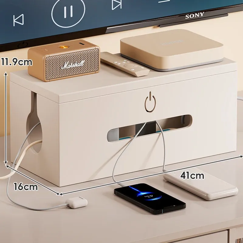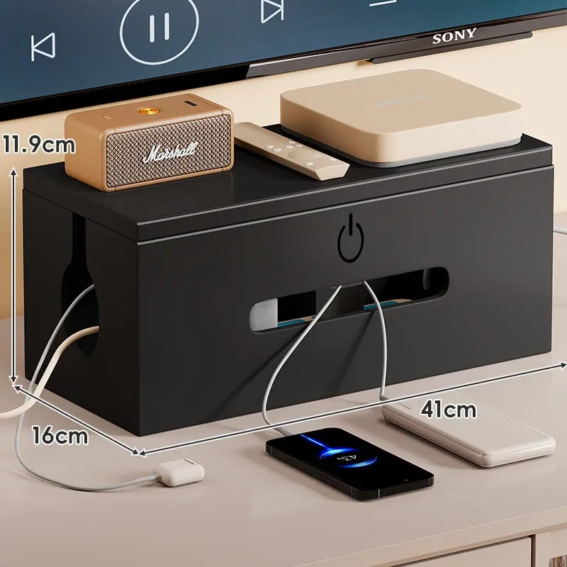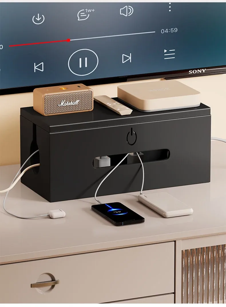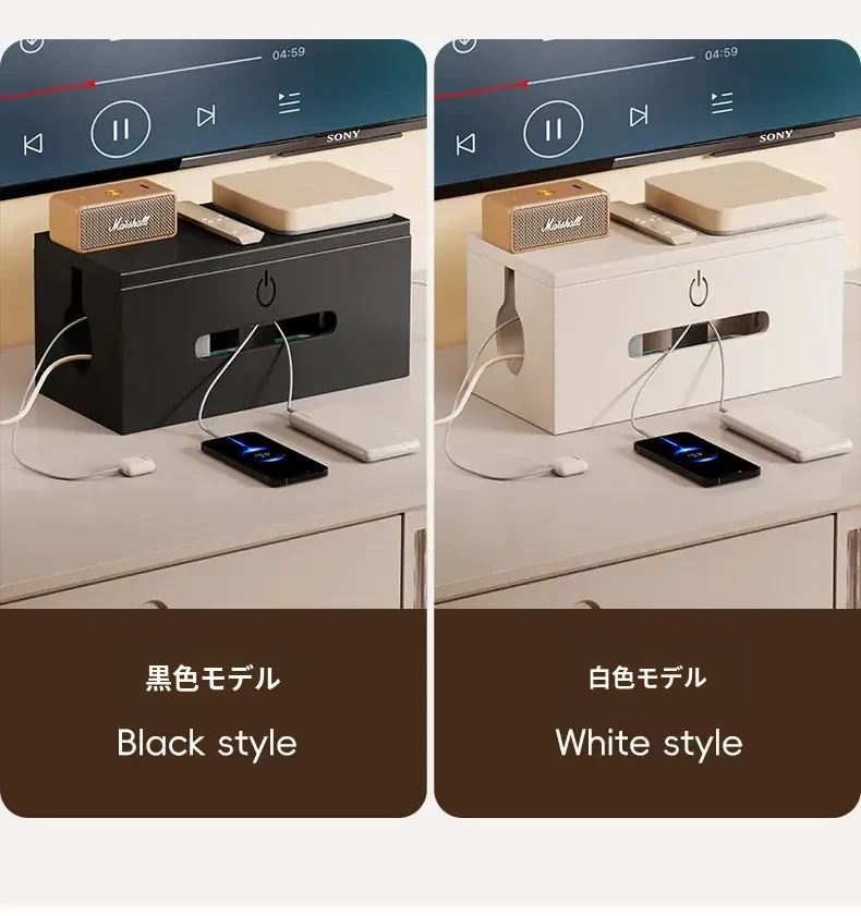 電源タップ収納ボックス|ケーブル整理の必需品!デスク周りをスッキリさせる便利なタップ&データケーブル収納ケース!おしゃれで機能的な配線整理を実現!