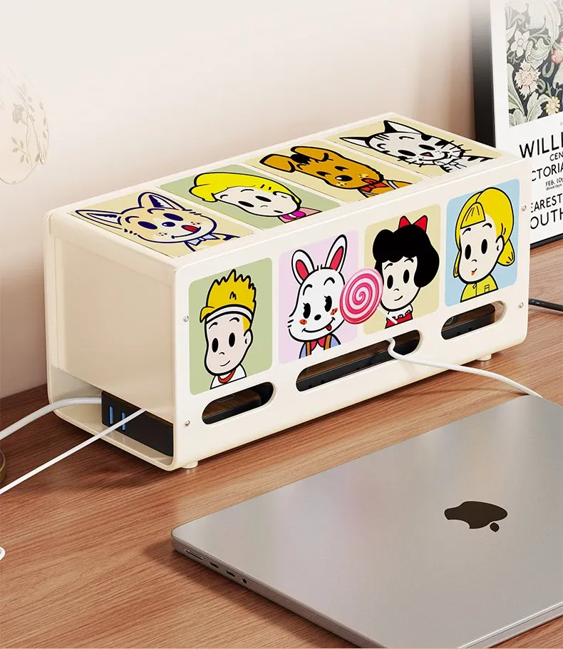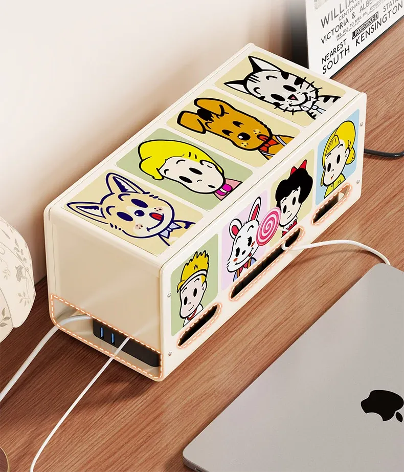 電源タップ&ケーブル収納ボックス - スタイリッシュなデザインでデスク周りをスッキリ整理!電源コードの見た目を隠し、作業スペースを美しく保つ必需品!