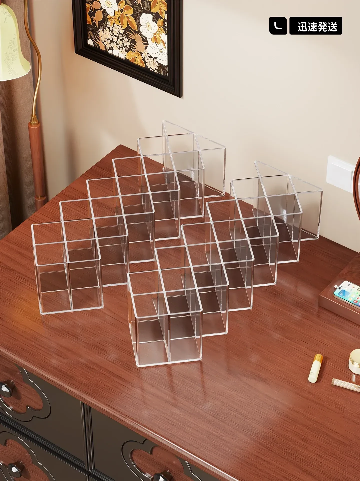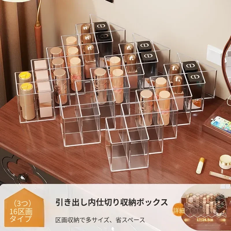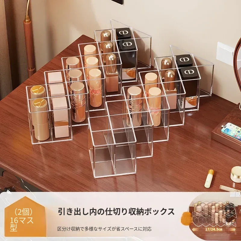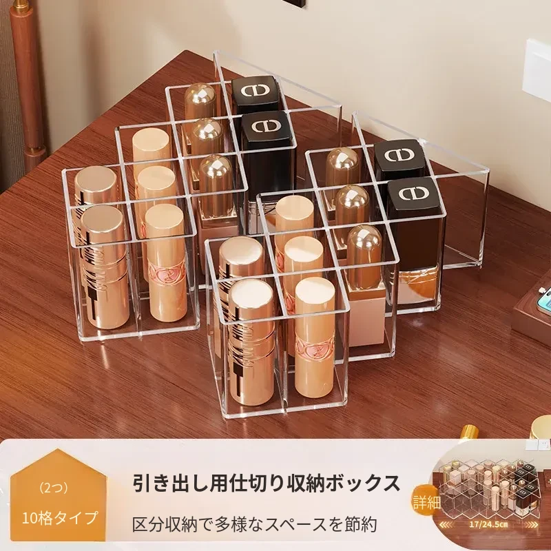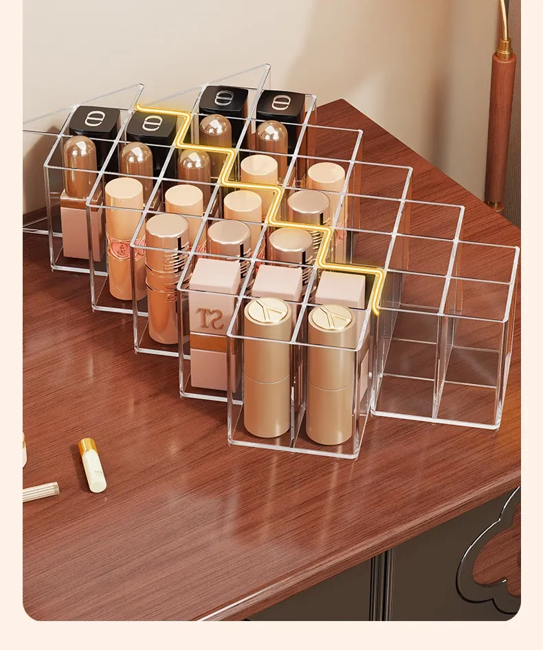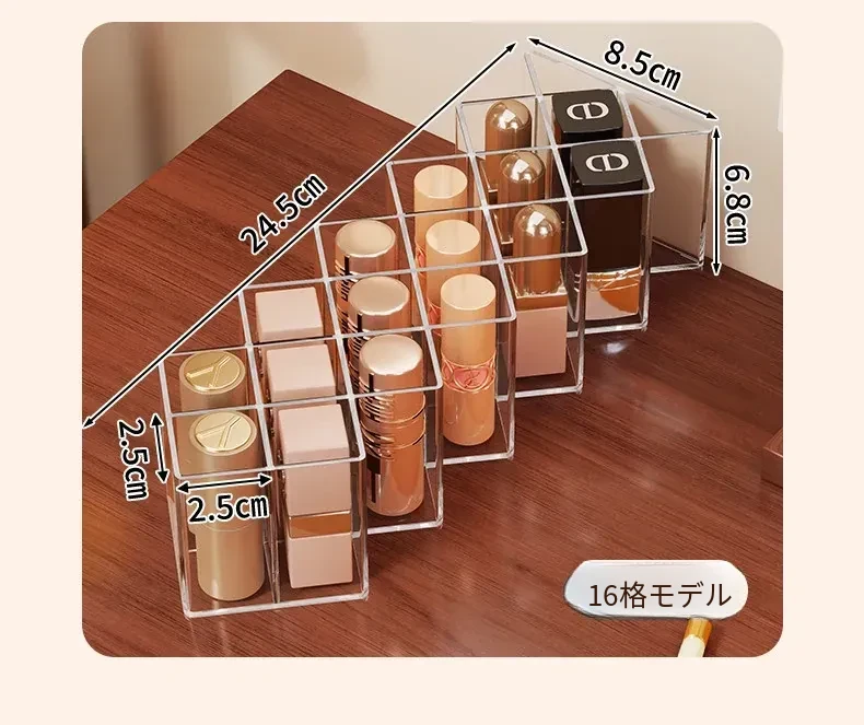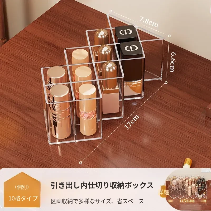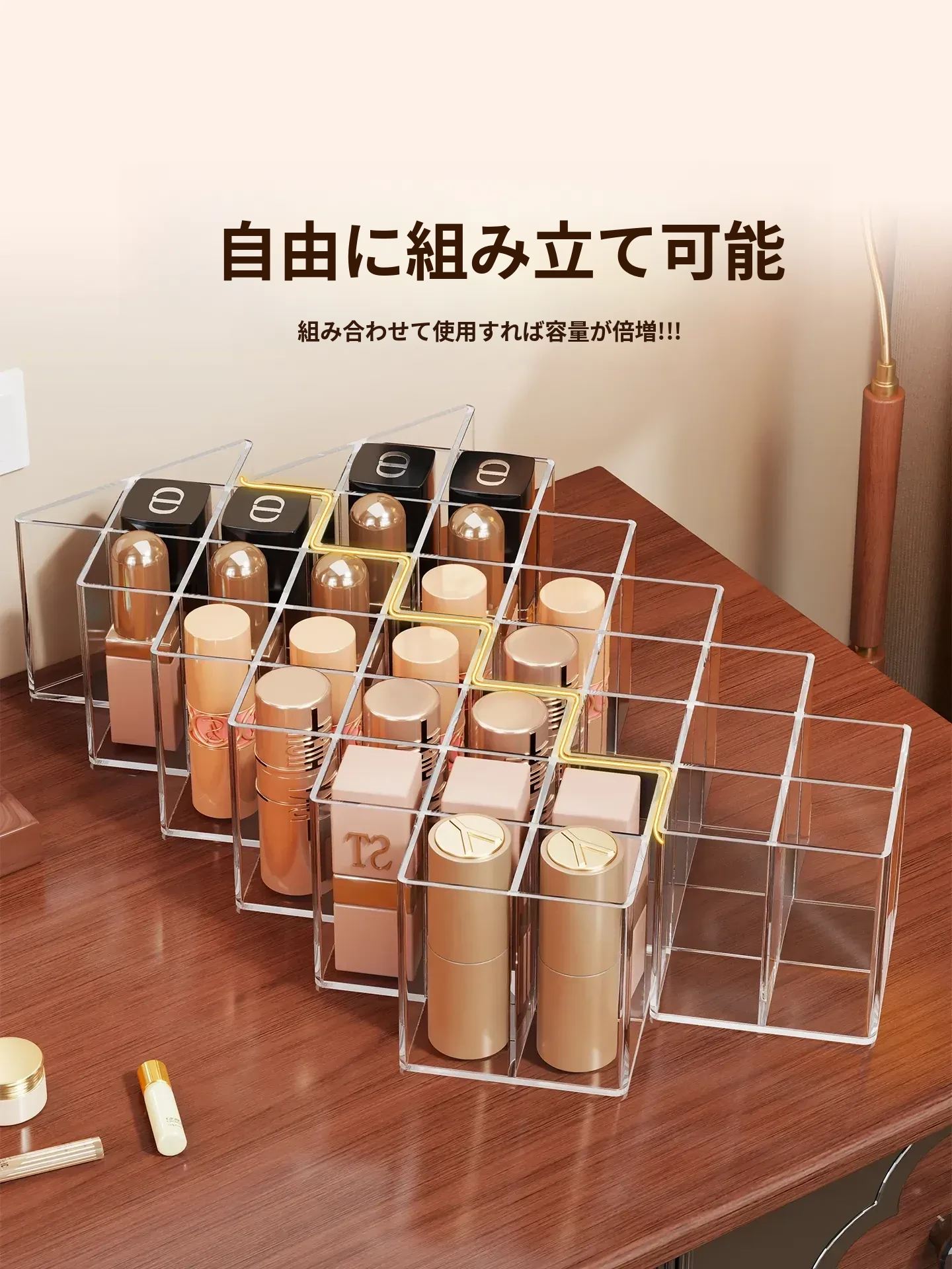 高級感溢れるデスク用リップ収納ボックス!多段式唇彩スタンドで、香水やエッセンスのサンプルもスッキリ整理。透明デザインで一目で分かる、おしゃれで便利な整理整頓アイテムです!