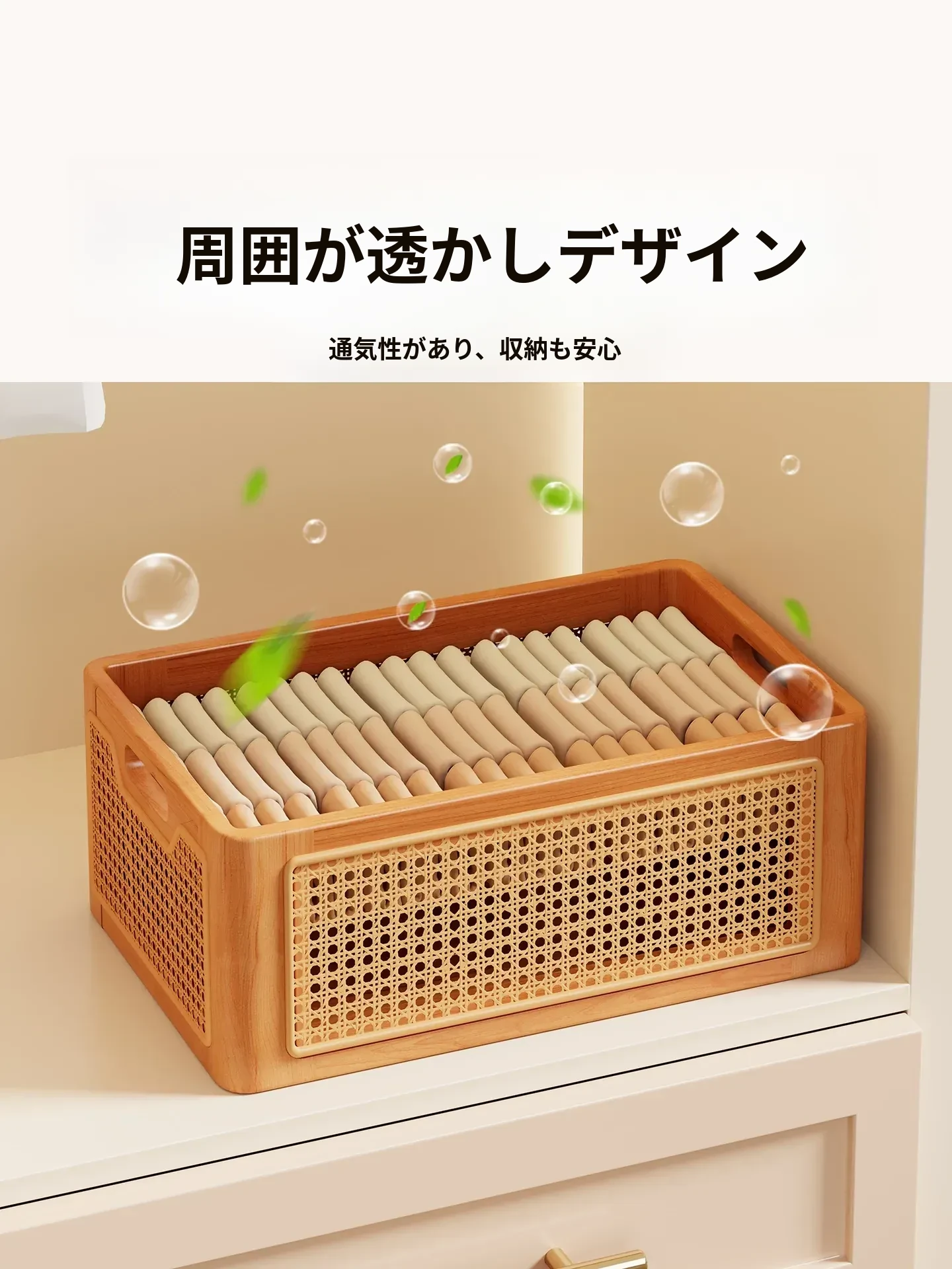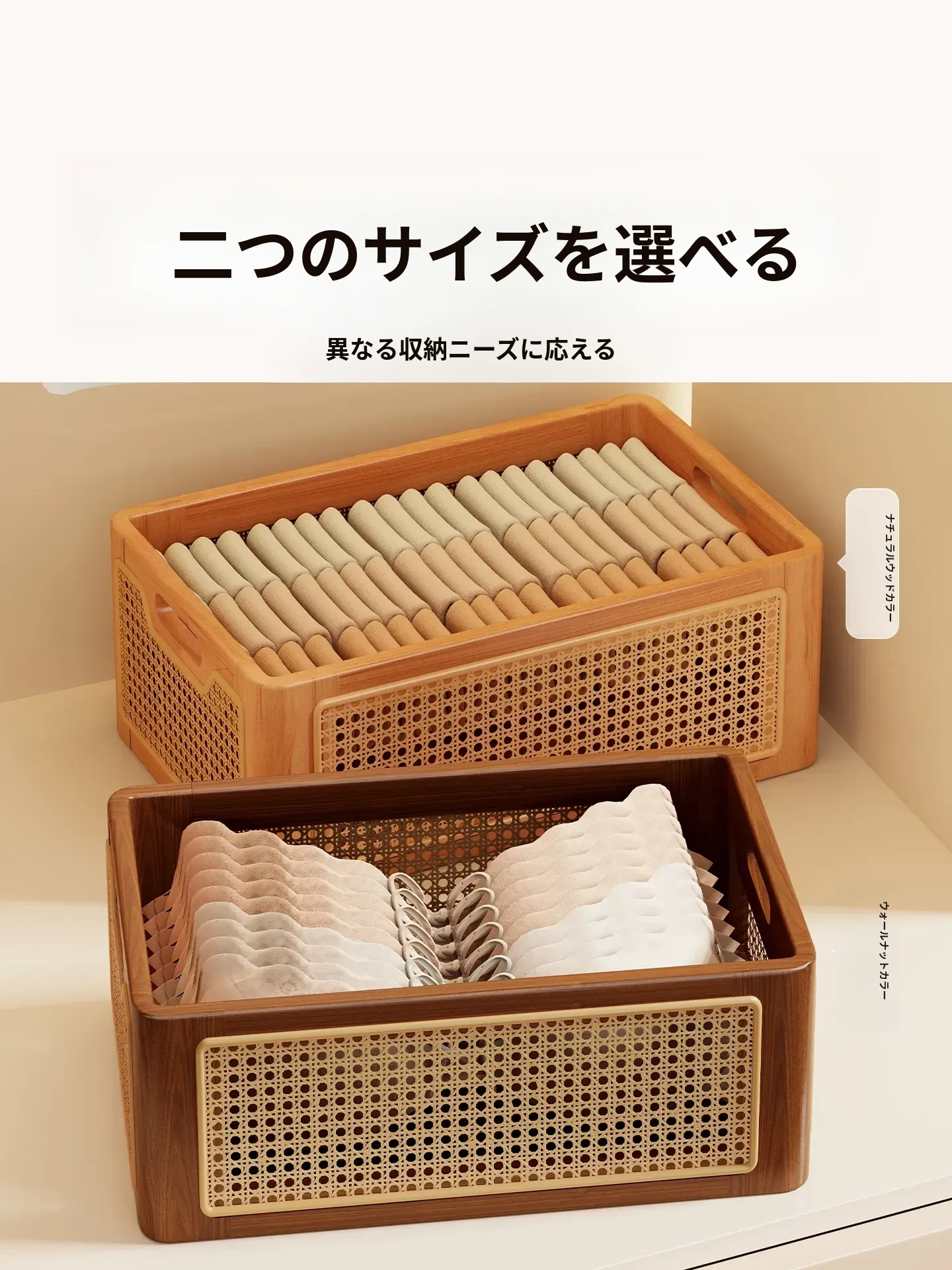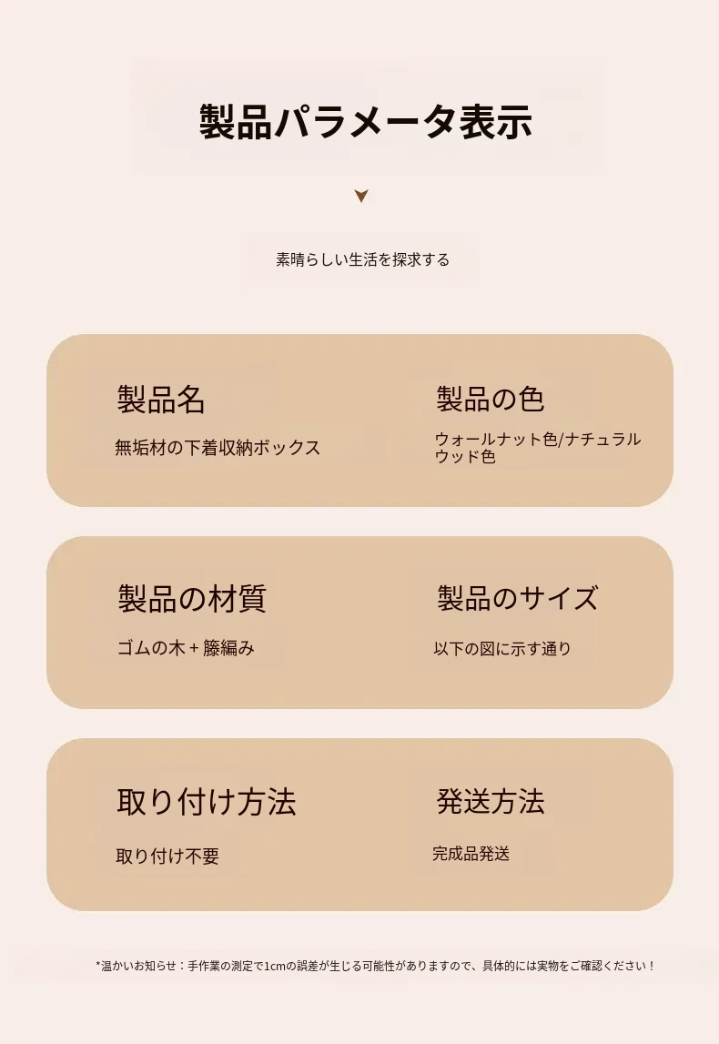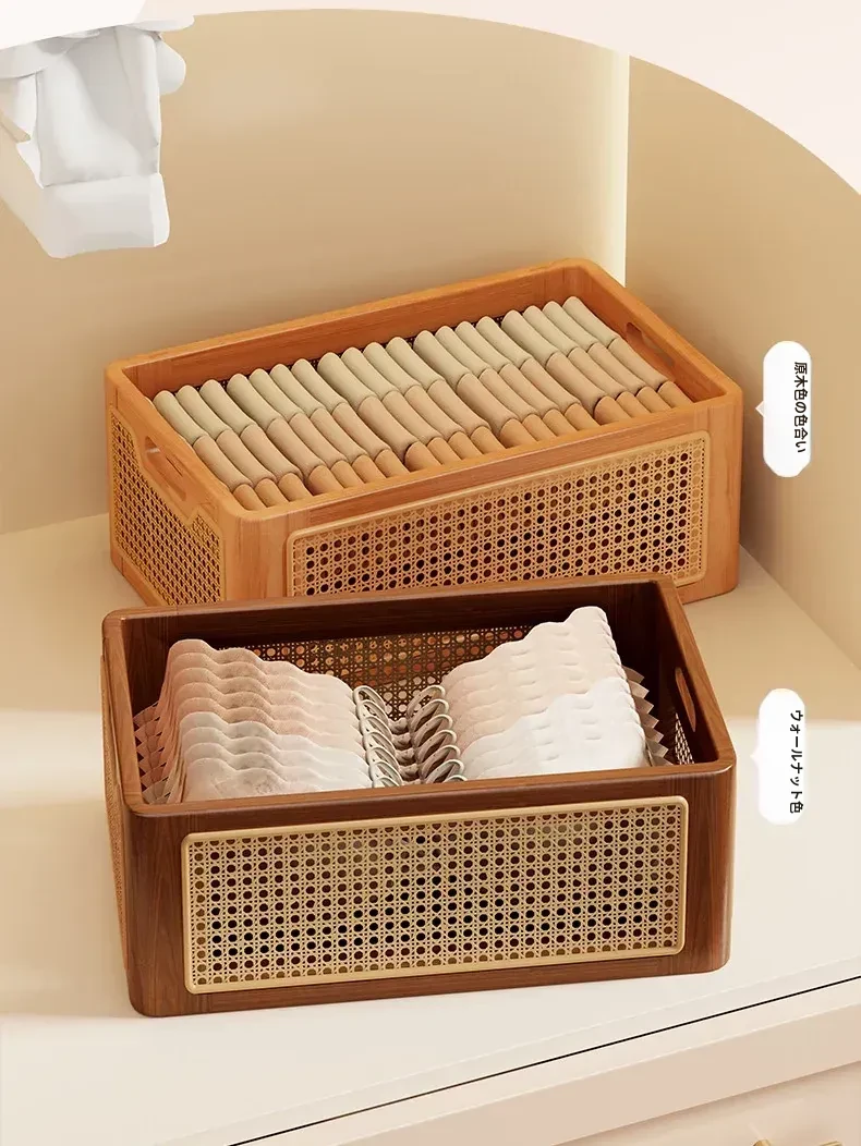天然木製の下着収納ボックス - パンツ・靴下・下着が一緒に整理できる便利な3in1!重ねて使えるので、スペースを有効活用。おしゃれで機能的な収納アイテムで、毎日の生活をより快適に。